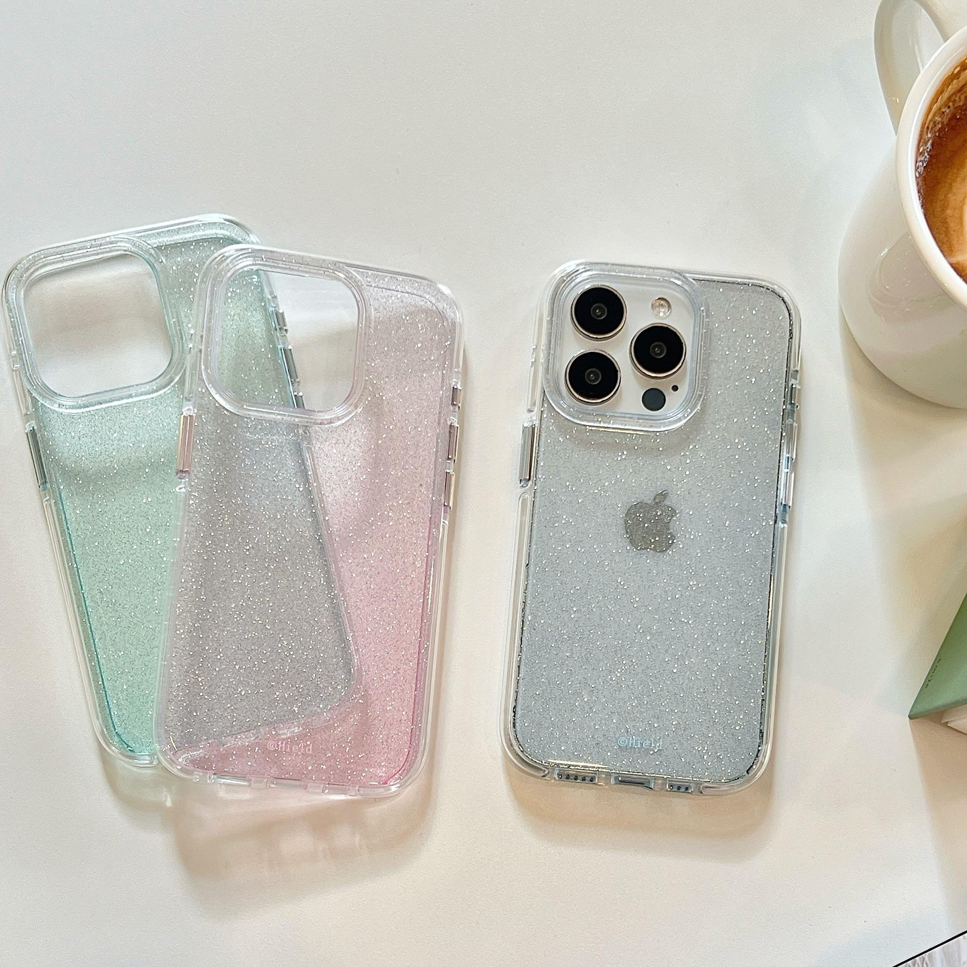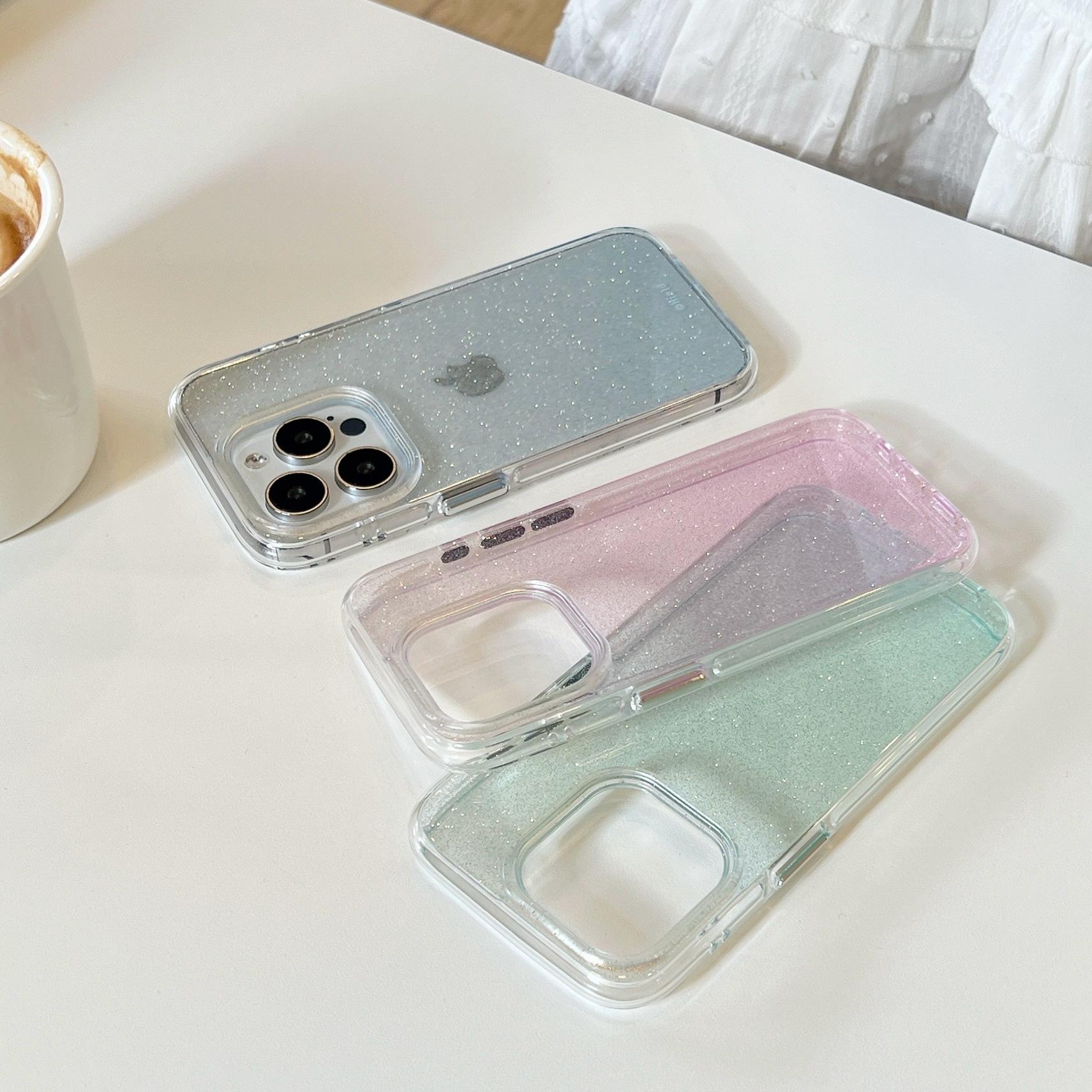 Pink glitter transparent shell, Blue glitter transparent shell, Green glitter transparent shell