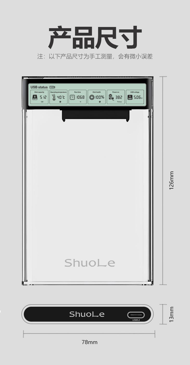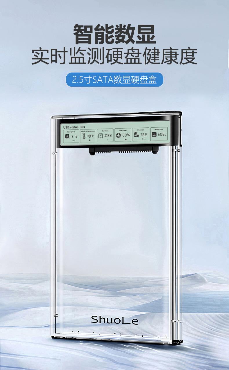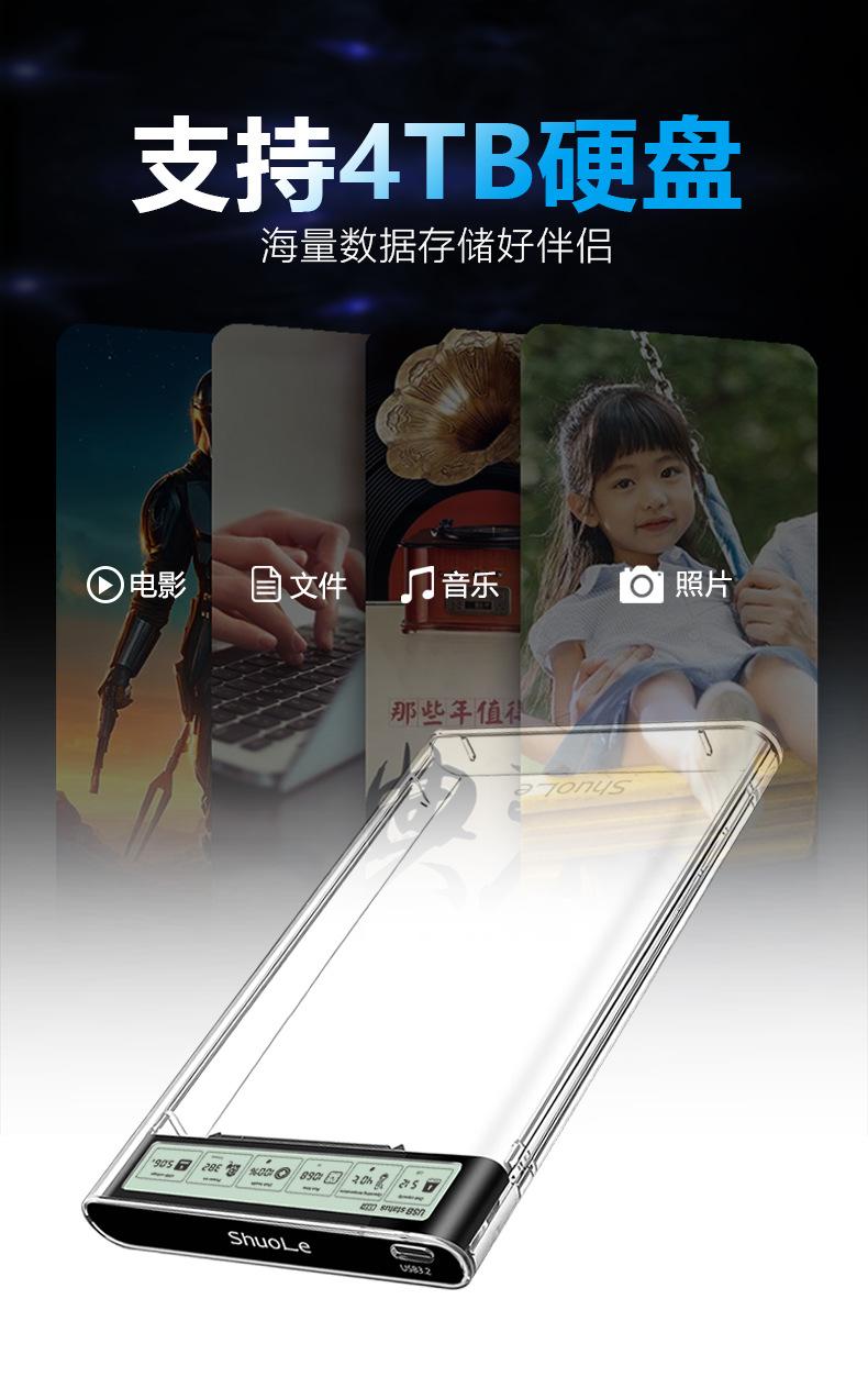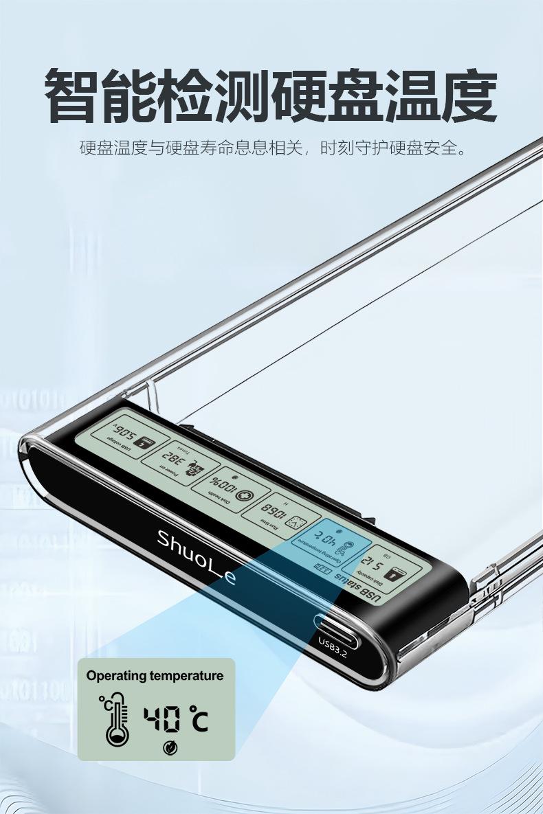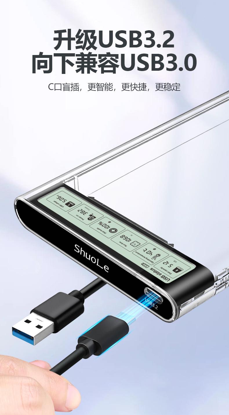 Shuole caja de disco duro con pantalla inteligente personalizada USB3.2 para notebook mecánico sólido de 2.5 pulgadas interfaz TYPE-C