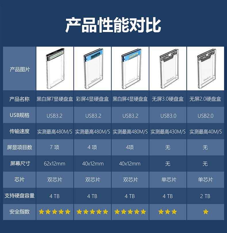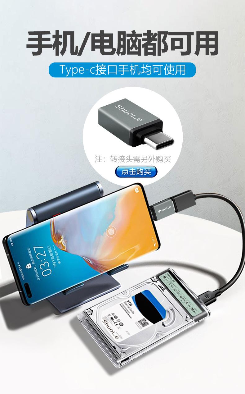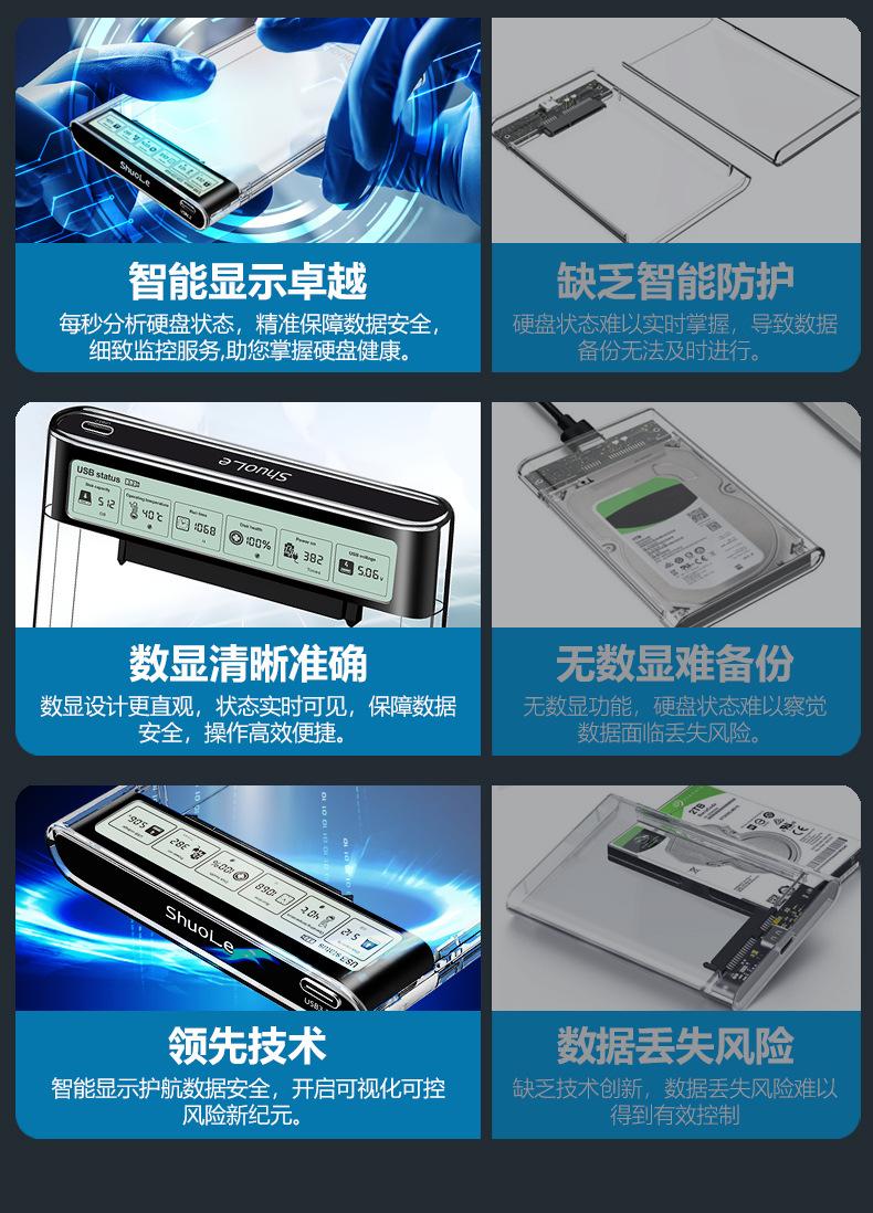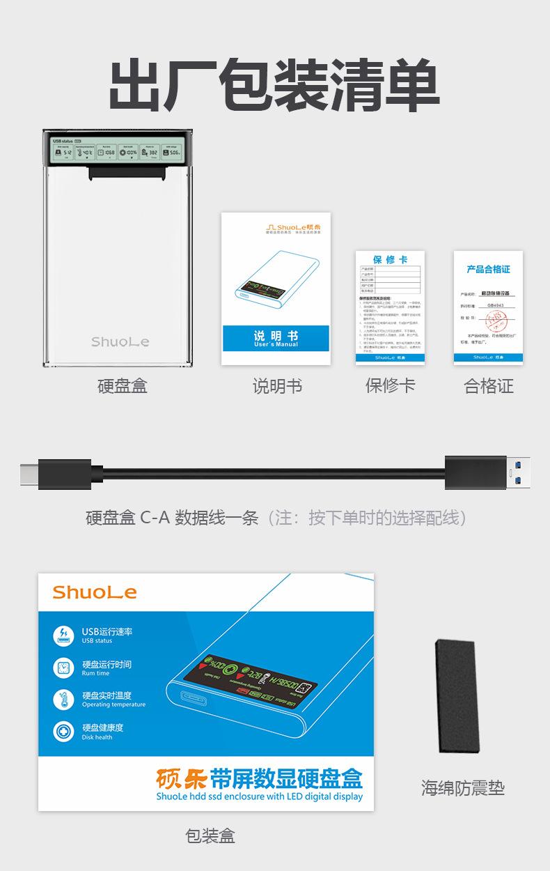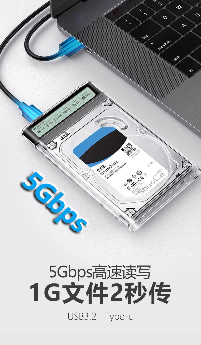 Shuole caja de disco duro con pantalla inteligente personalizada USB3.2 para notebook mecánico sólido de 2.5 pulgadas interfaz TYPE-C