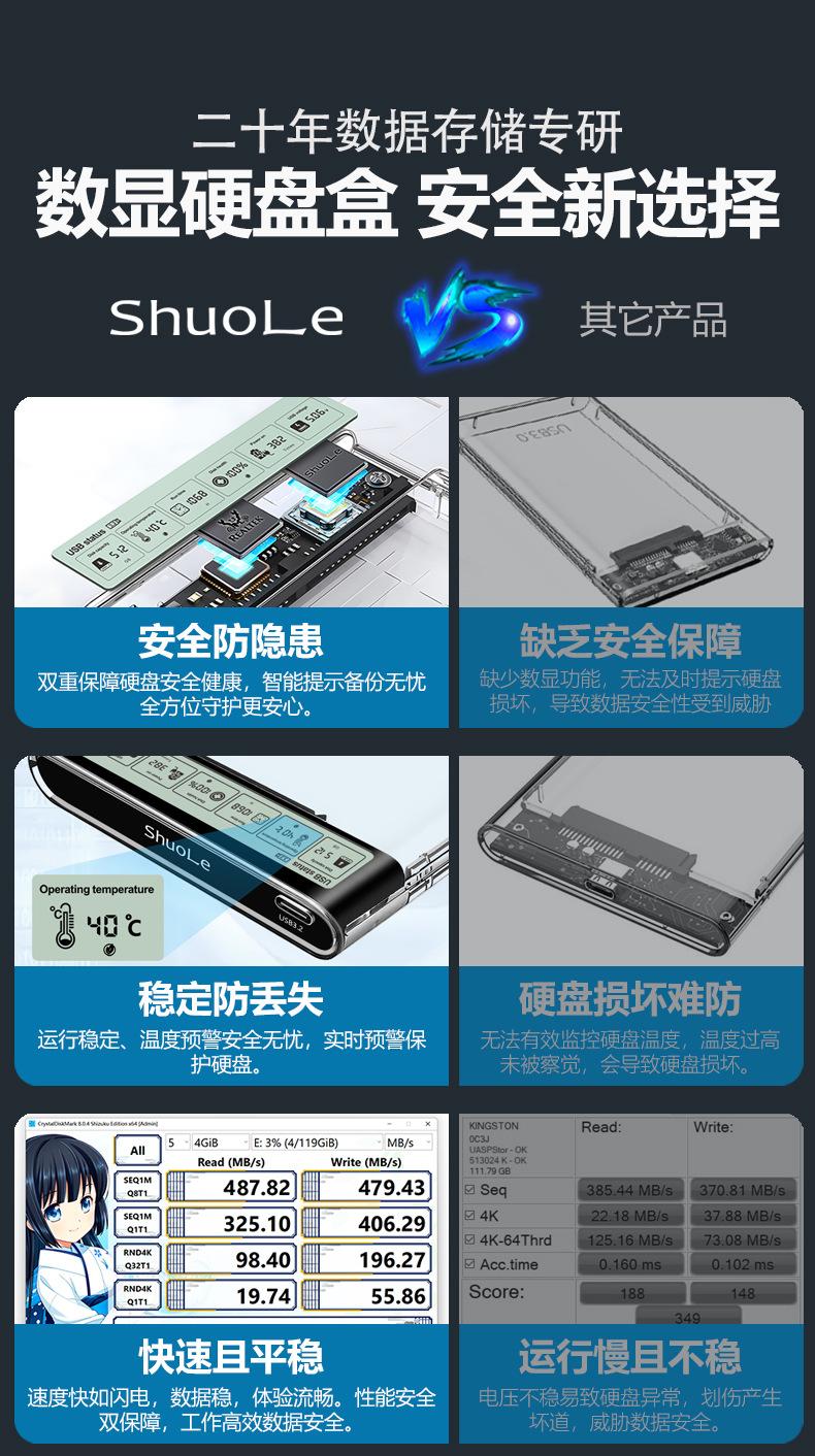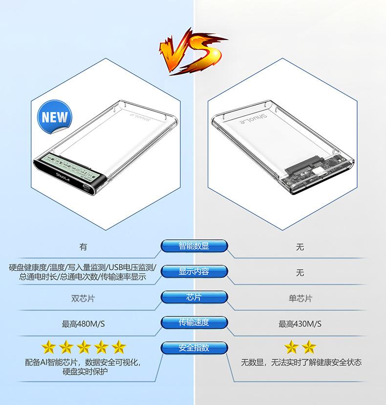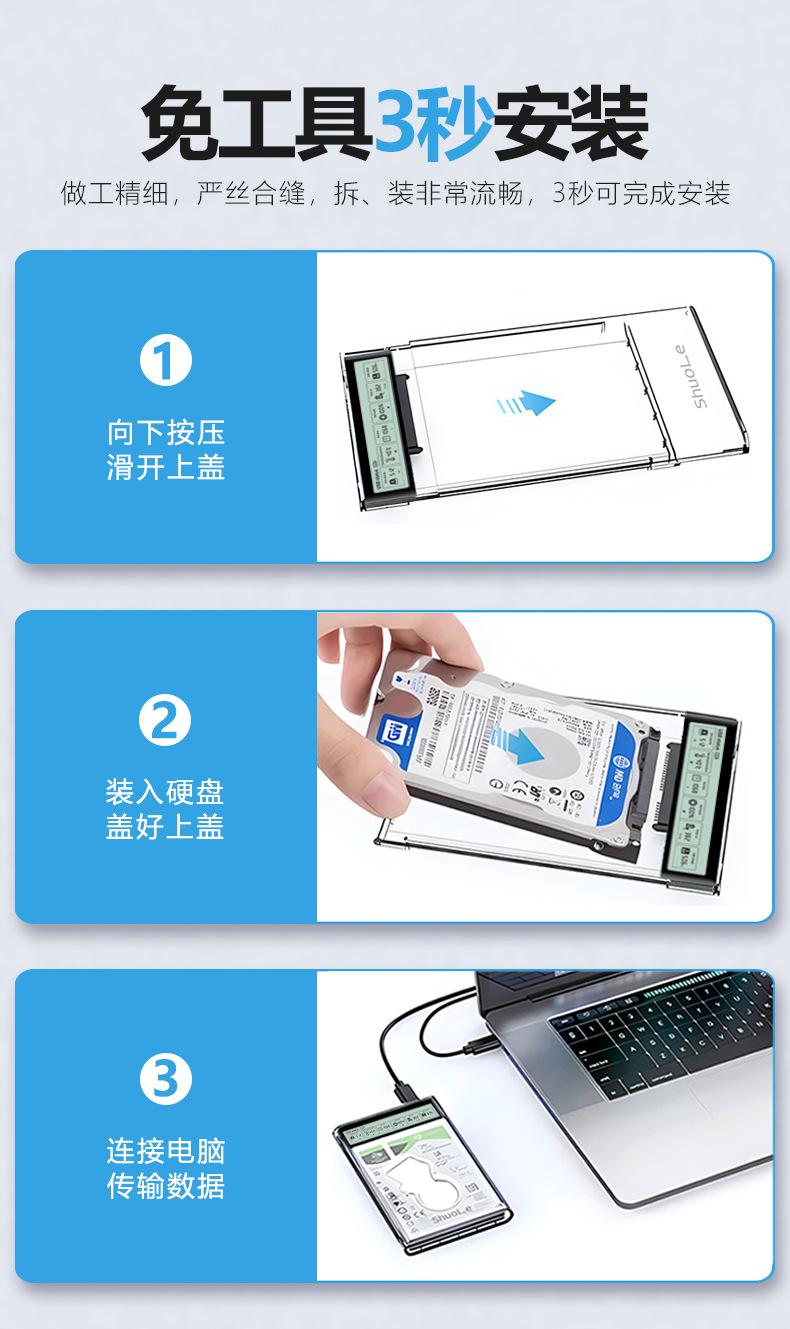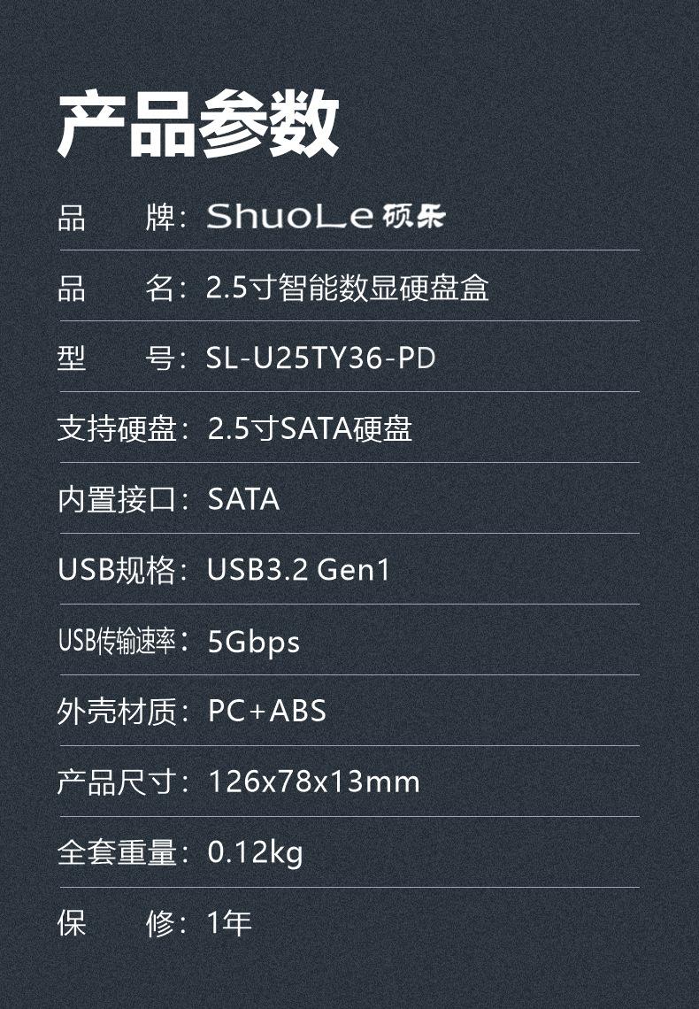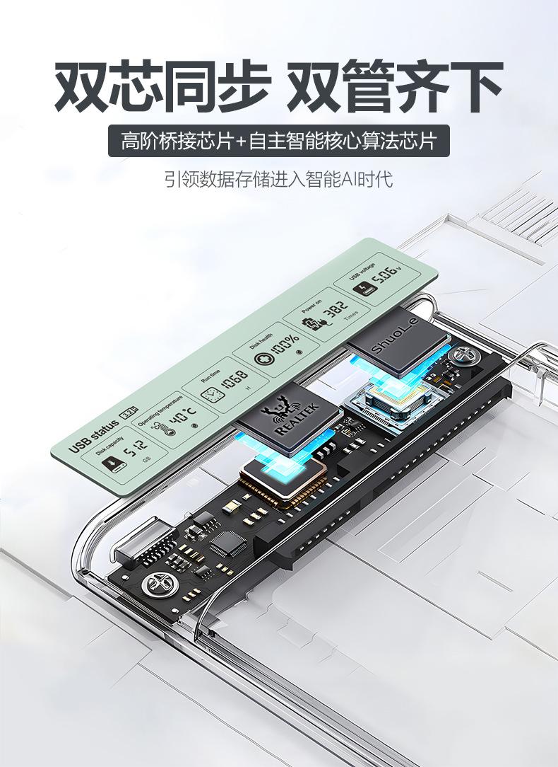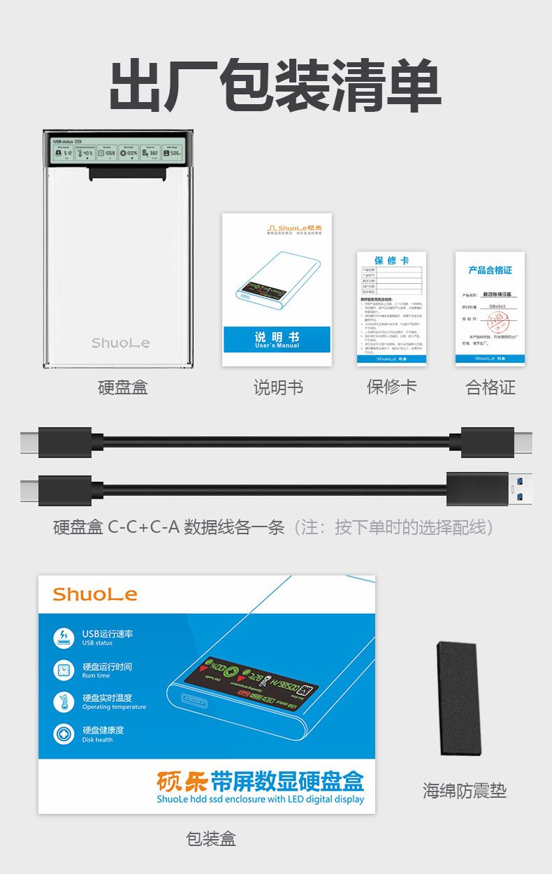 Shuole caja de disco duro con pantalla inteligente personalizada USB3.2 para notebook mecánico sólido de 2.5 pulgadas interfaz TYPE-C