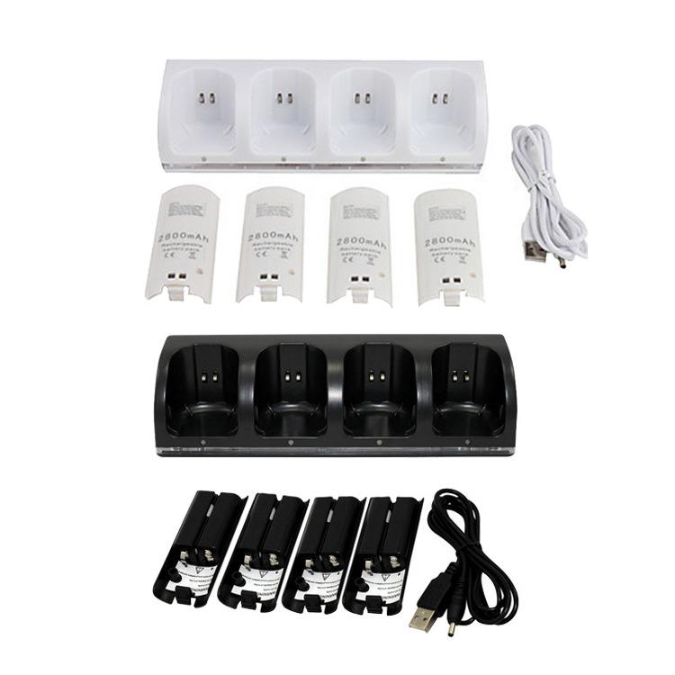 Cargador de controlador Wii, cargador 4 en 1, cargador*1, batería de 2800 mAh*4, cable de carga*1, puede cargar cuatro controladores al mismo tiempo (¡se envía con el metal desnudo! ¡1 yuan más por la caja blanca!)