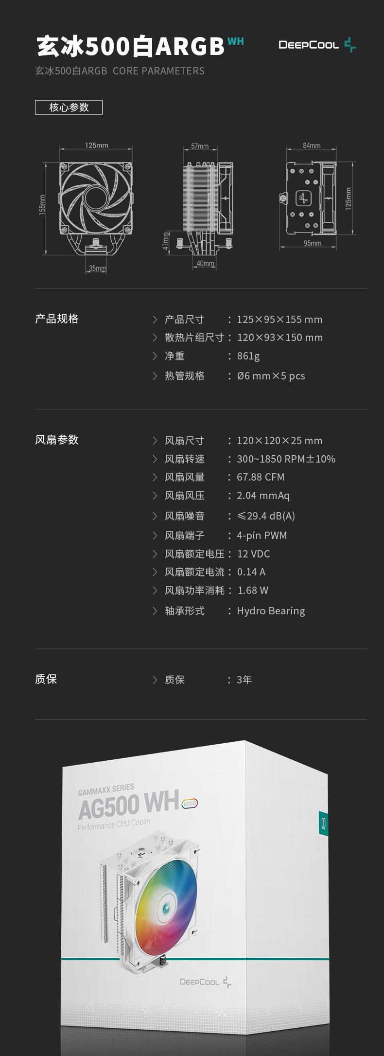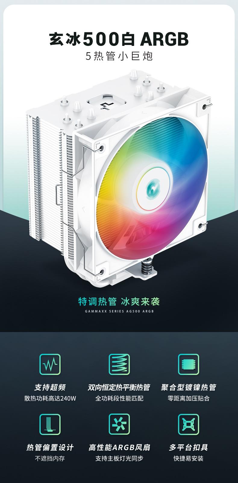 Kyushu Fengshen Xuan Bing 500 V5 cpu radiador ordenador de escritorio AM5 ventilador ARGB silencioso