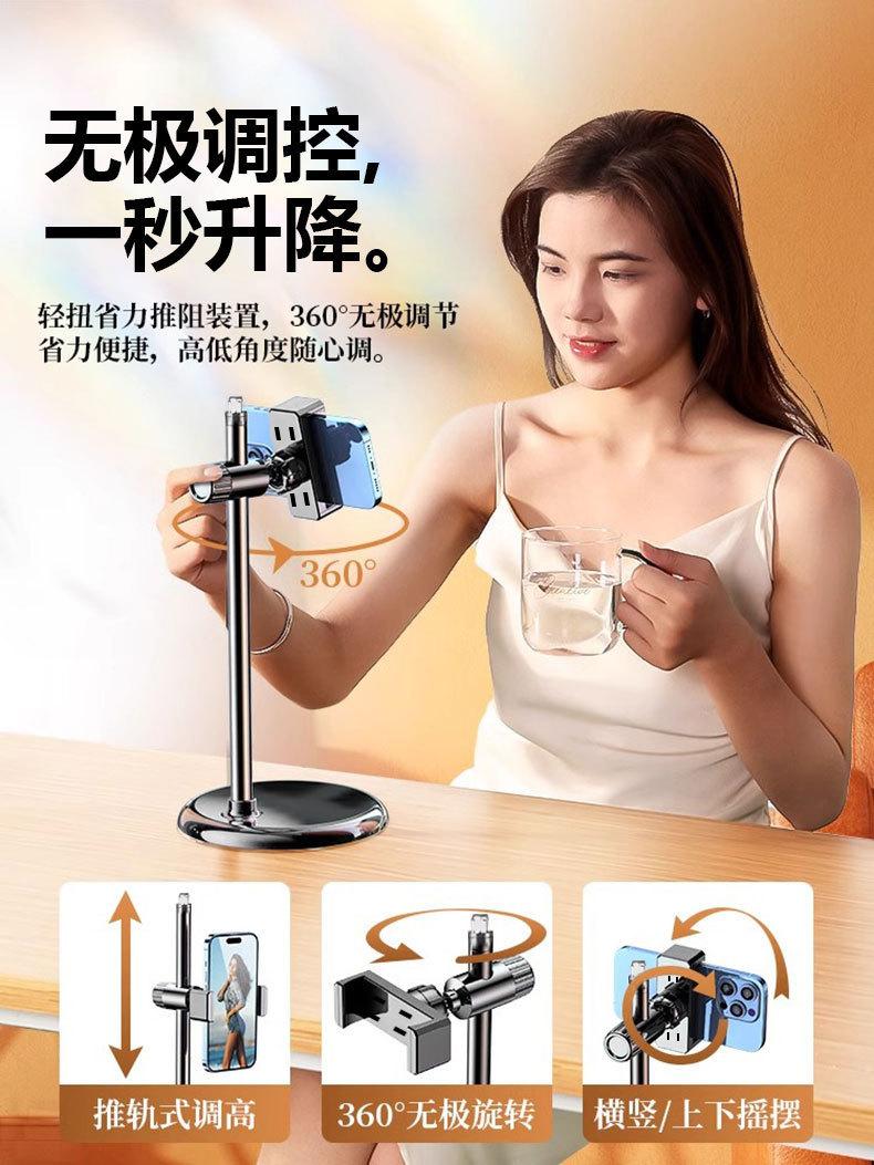 Soporte de Escritorio para Transmisión en Vivo para Teléfono Móvil Soporte para Teléfono Móvil Tableta Soporte para Disparo Aéreo Inteligente Bluetooth Metal Ajustable