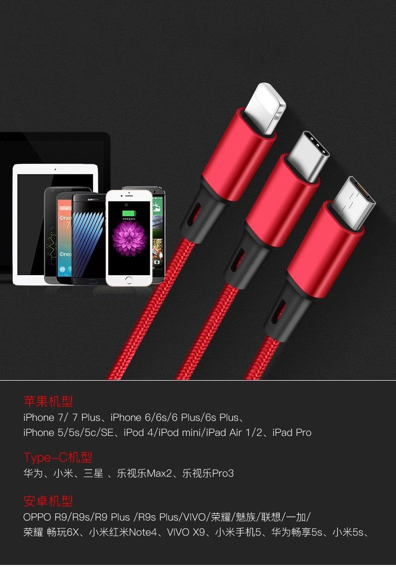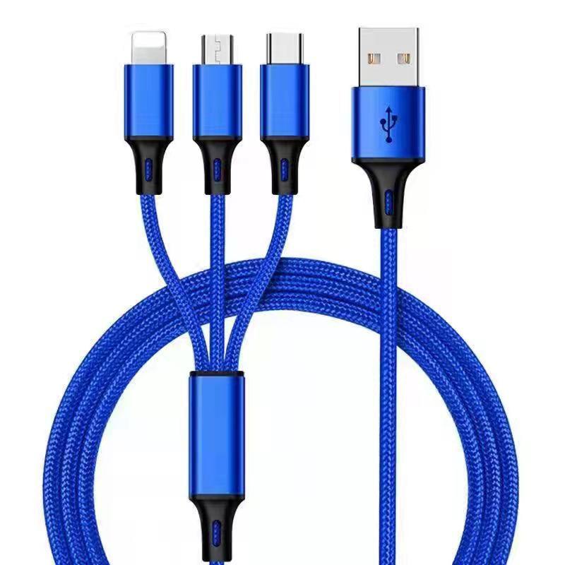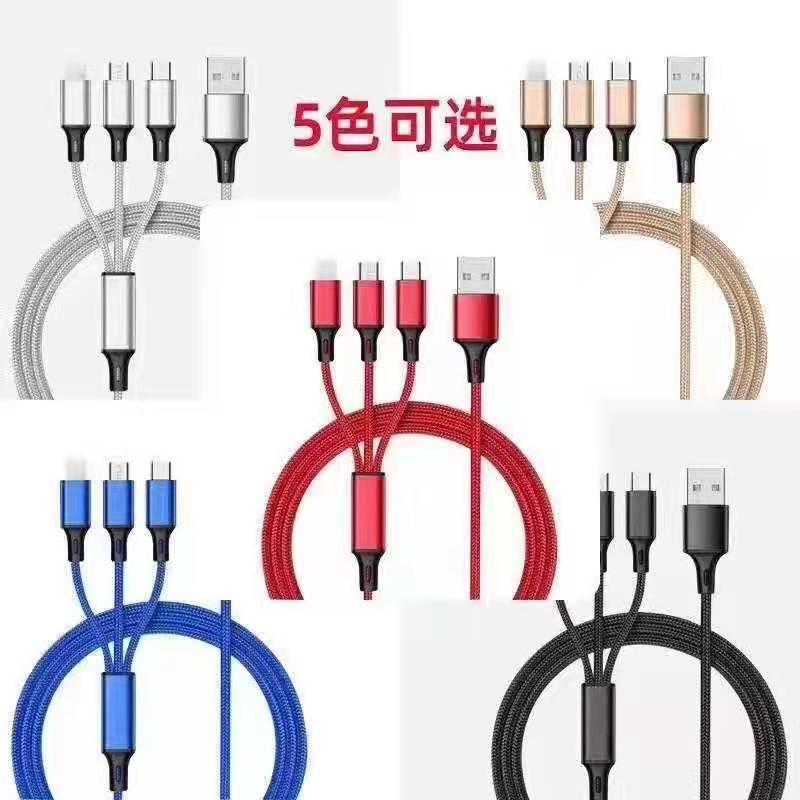 Cable de Datos de Carga Rápida para Teléfono Móvil Uno a Tres Adecuado para Android V8 Huawei Tipo-C Apple Cable de Carga Tres en Uno USB