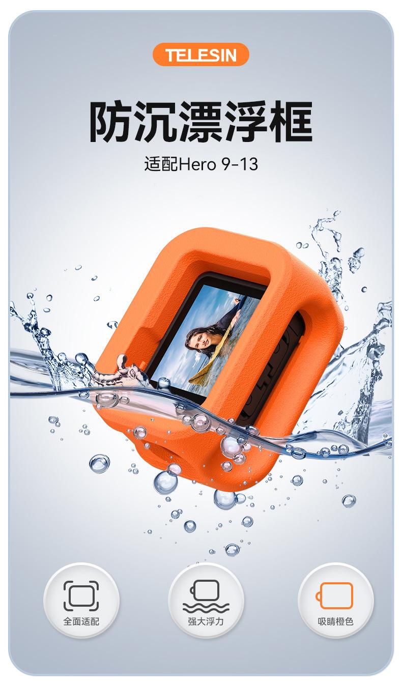 Marco de Protección Flotante para Buceo con Cámara Telesin Adecuado para Cámara Gopro Hero9-13 Accesorios de Flotabilidad Anti-Hundimiento
