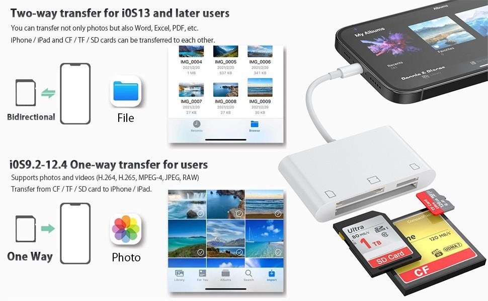 Lector de tarjetas para teléfono móvil Apple, todo en uno, CF, cámara, tarjeta SD, convertidor de tarjeta de memoria TF, adaptador multifunción