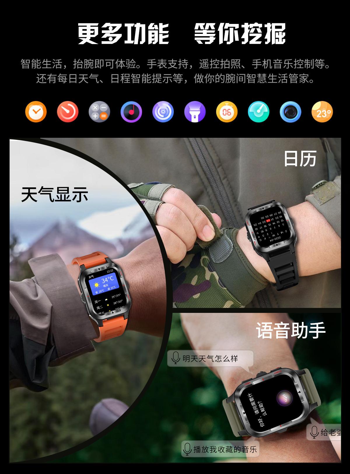 Step counting, Heart rate monitoring, Blood pressure measurement, Social entertainment, Bluetooth call, Smart ...