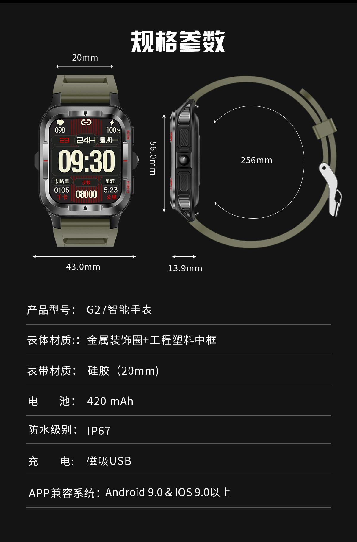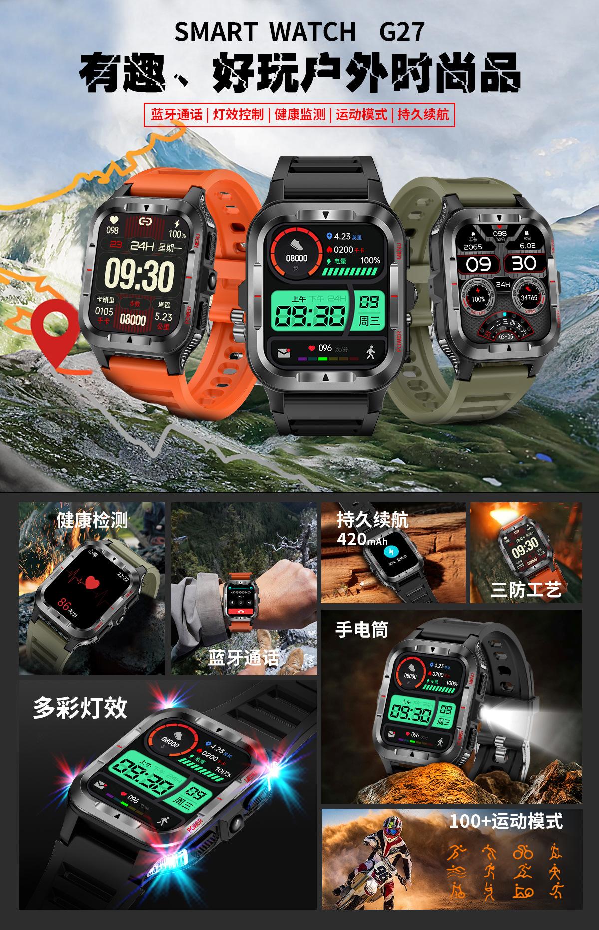 Nuevo Reloj Inteligente G27 Llamada Bluetooth Modo Efecto de Luz Monitoreo de Frecuencia Cardíaca Presión Arterial Modo Multideporte Isla Inteligente