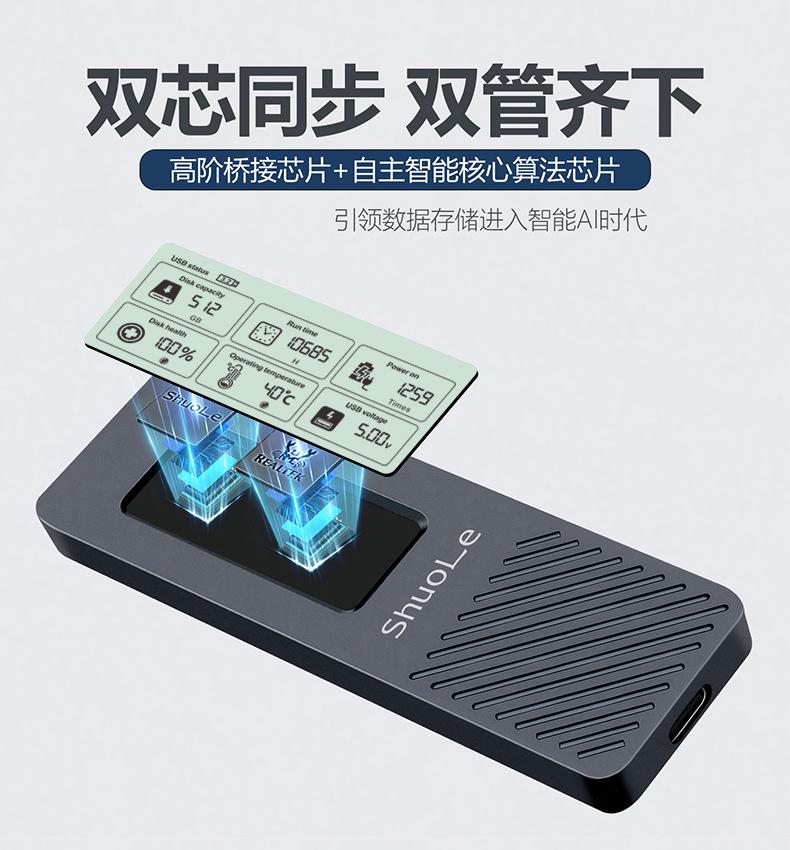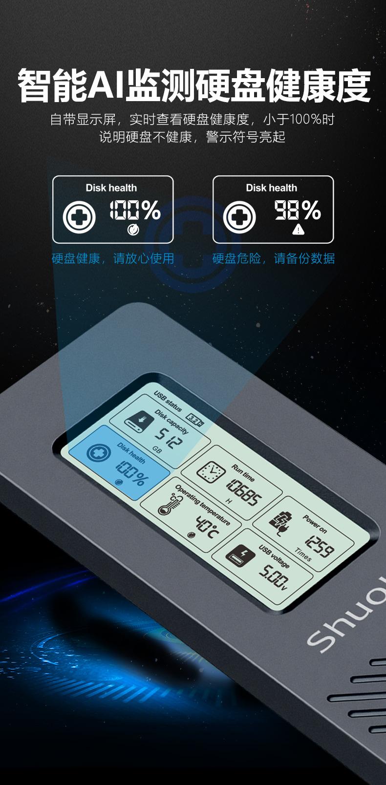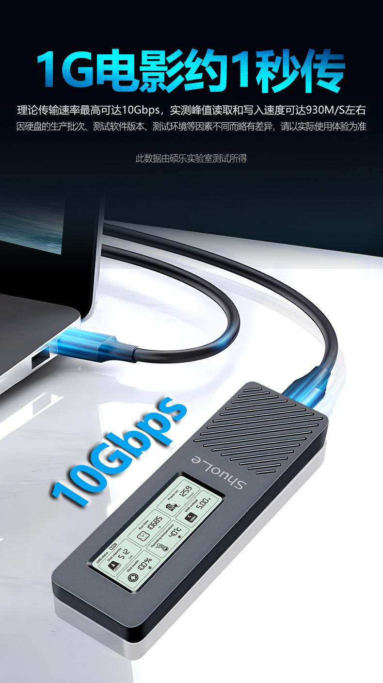 Caja de Disco Duro de Estado Sólido Shuole M2 Pantalla NVME Protocolo a TYPE-C Caja de Disco Duro Móvil Inteligente con Pantalla