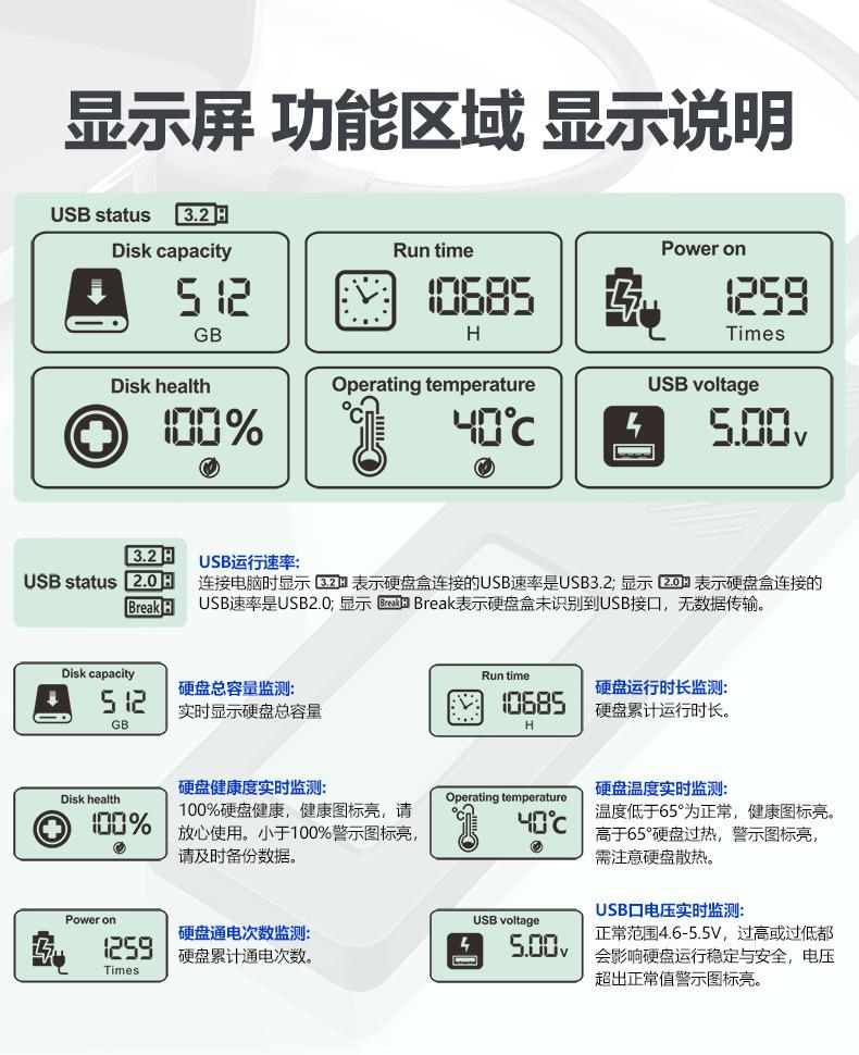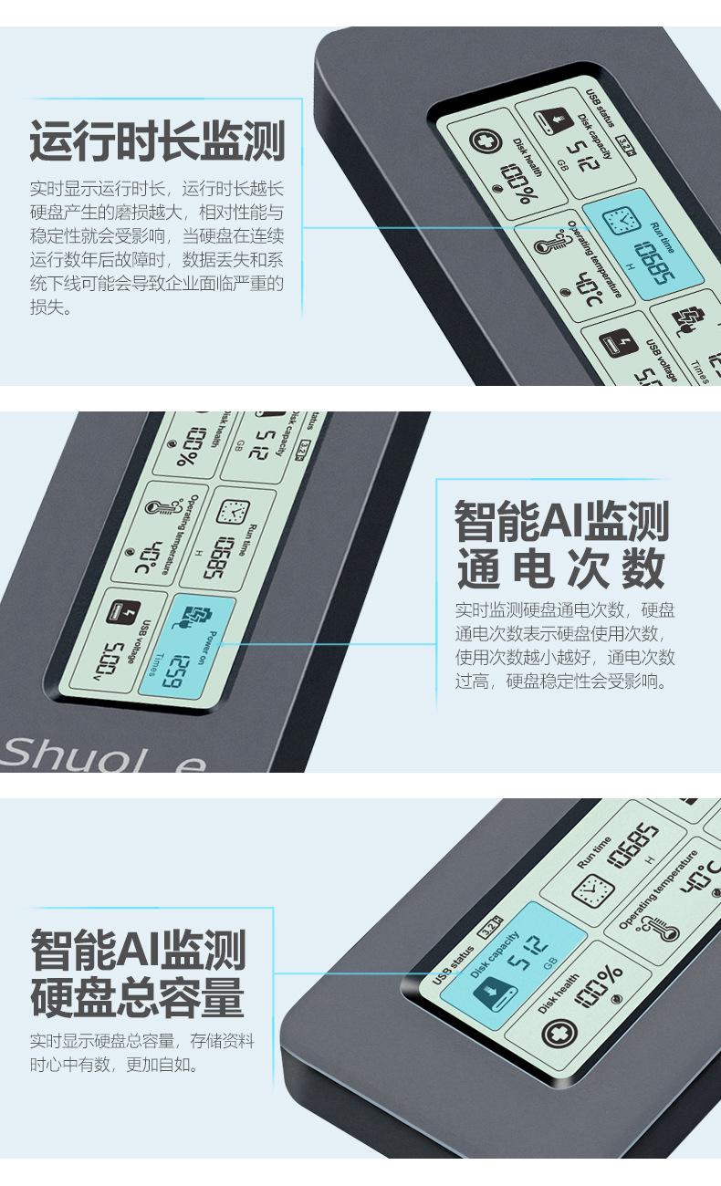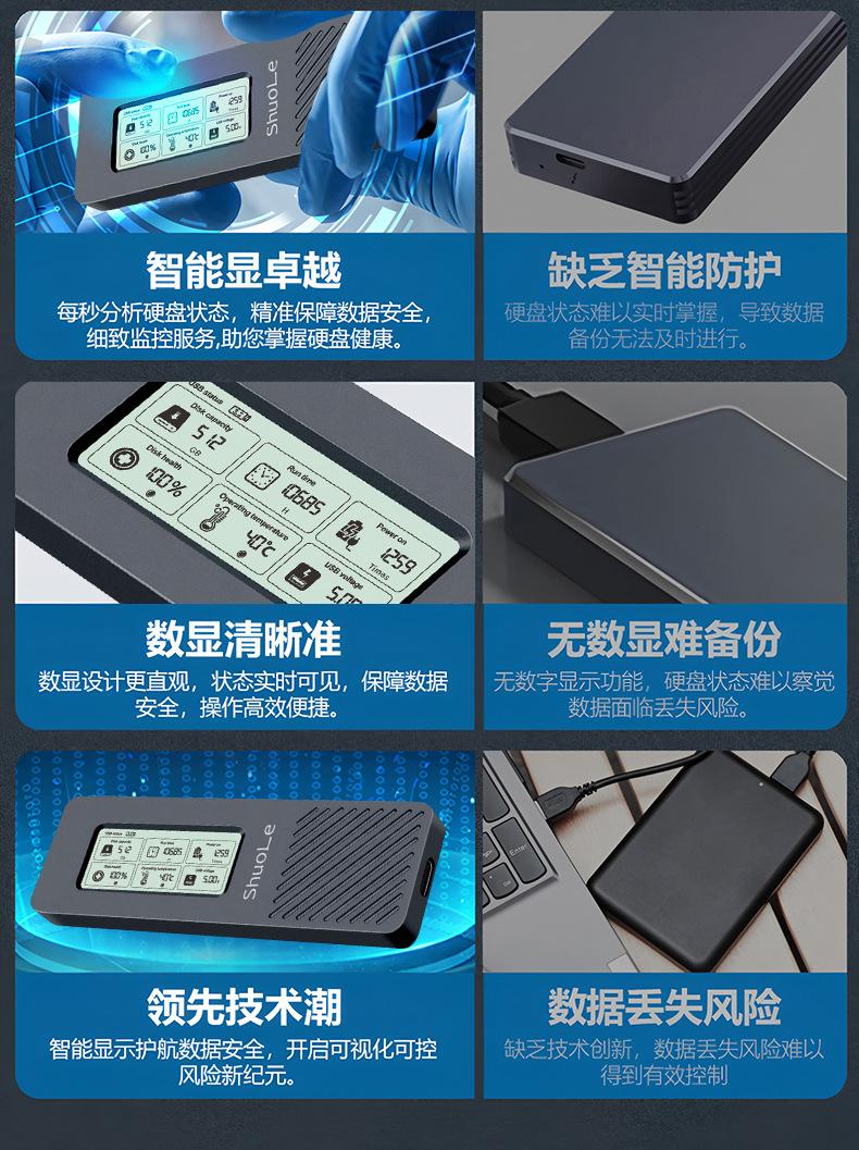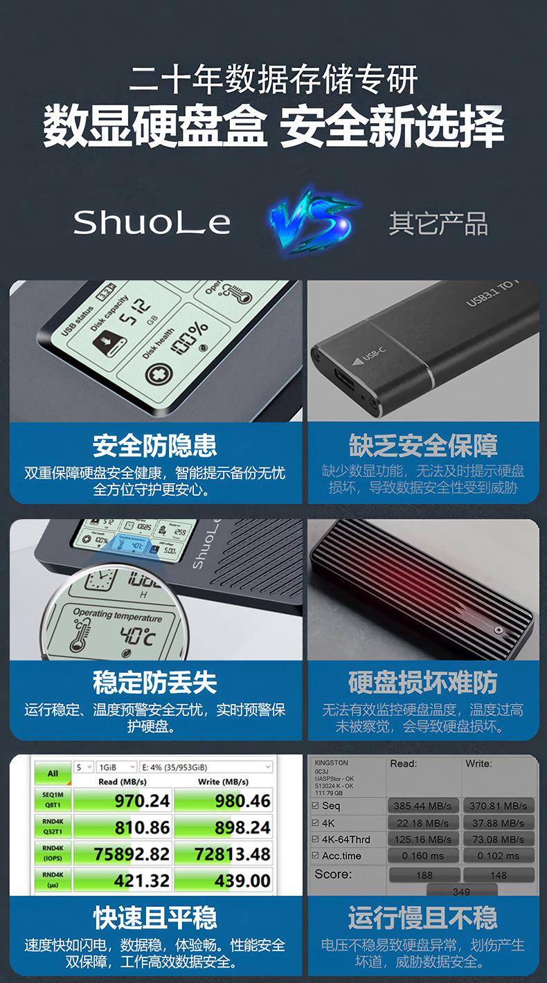 Caja de Disco Duro de Estado Sólido Shuole M2 Pantalla NVME Protocolo a TYPE-C Caja de Disco Duro Móvil Inteligente con Pantalla