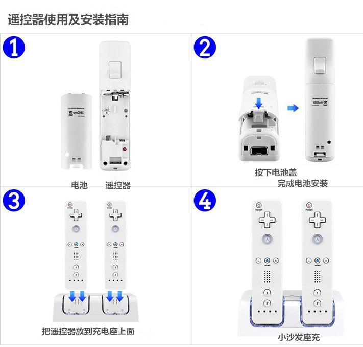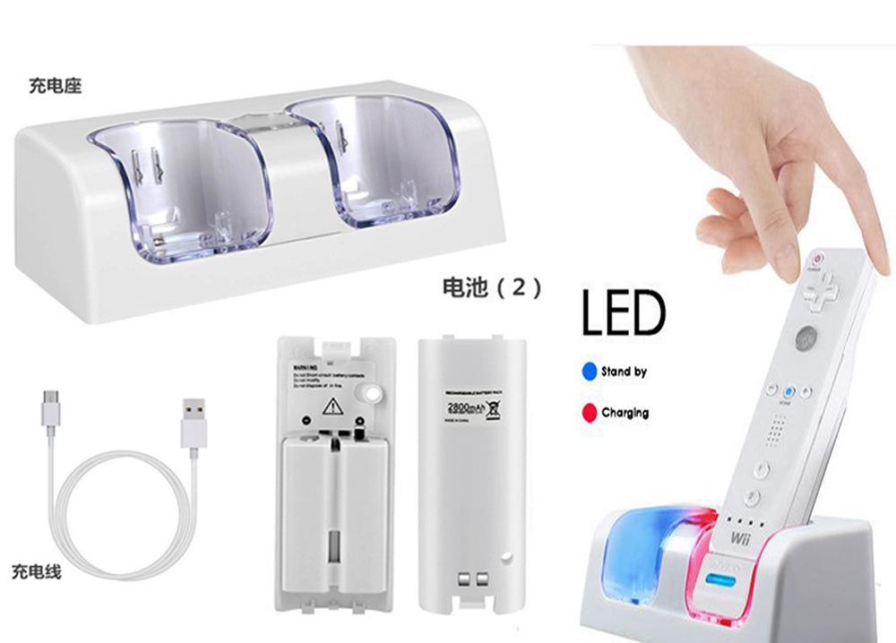 Base de Carga para Mando Somatosensorial Inalámbrico Wii Carga de Sofá Base de Carga Dual con Juego de Batería Dual Cargador Wii