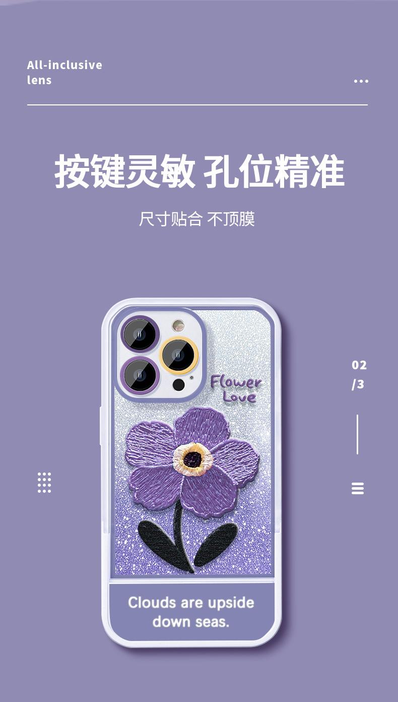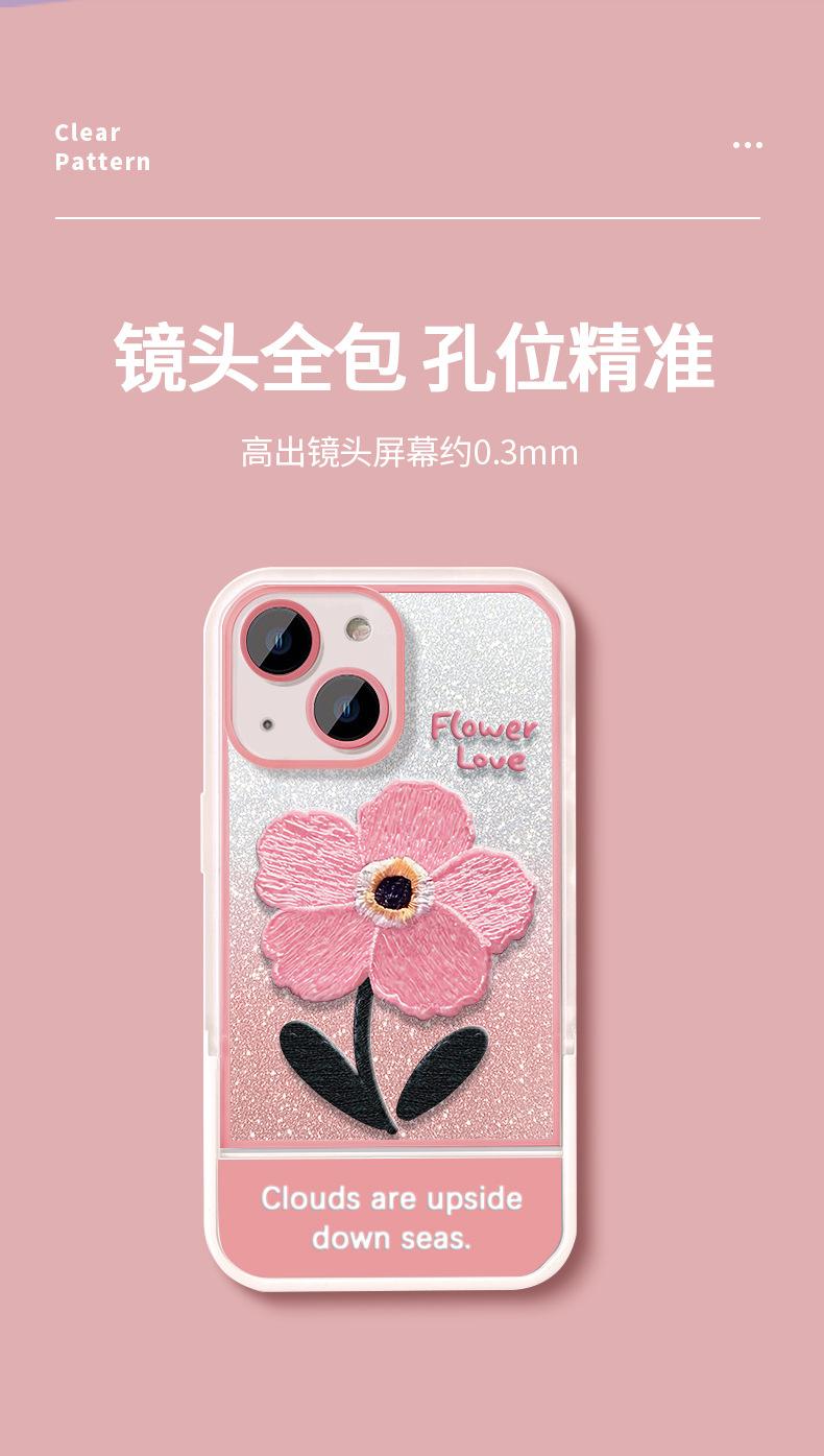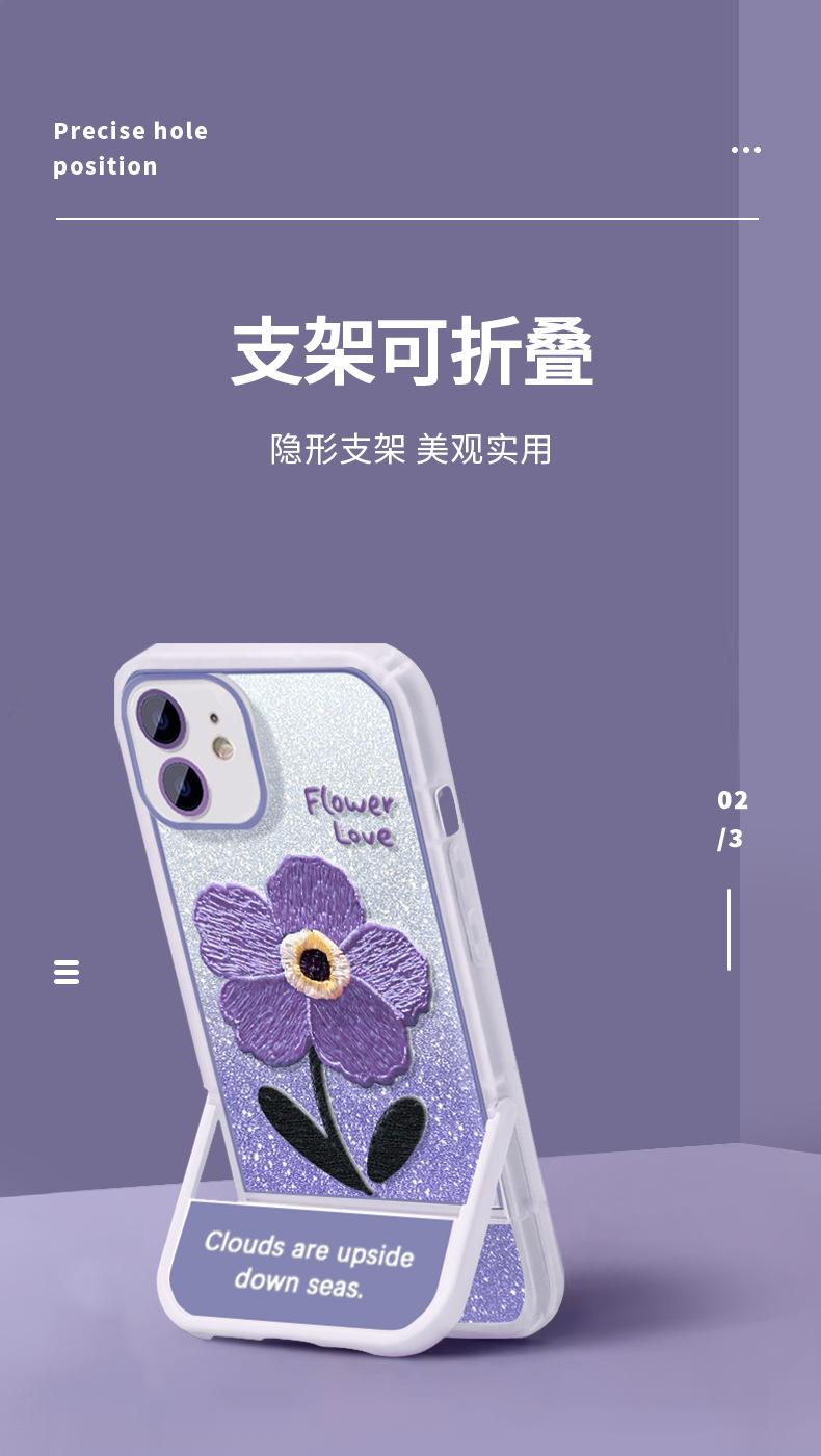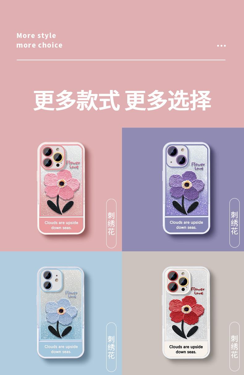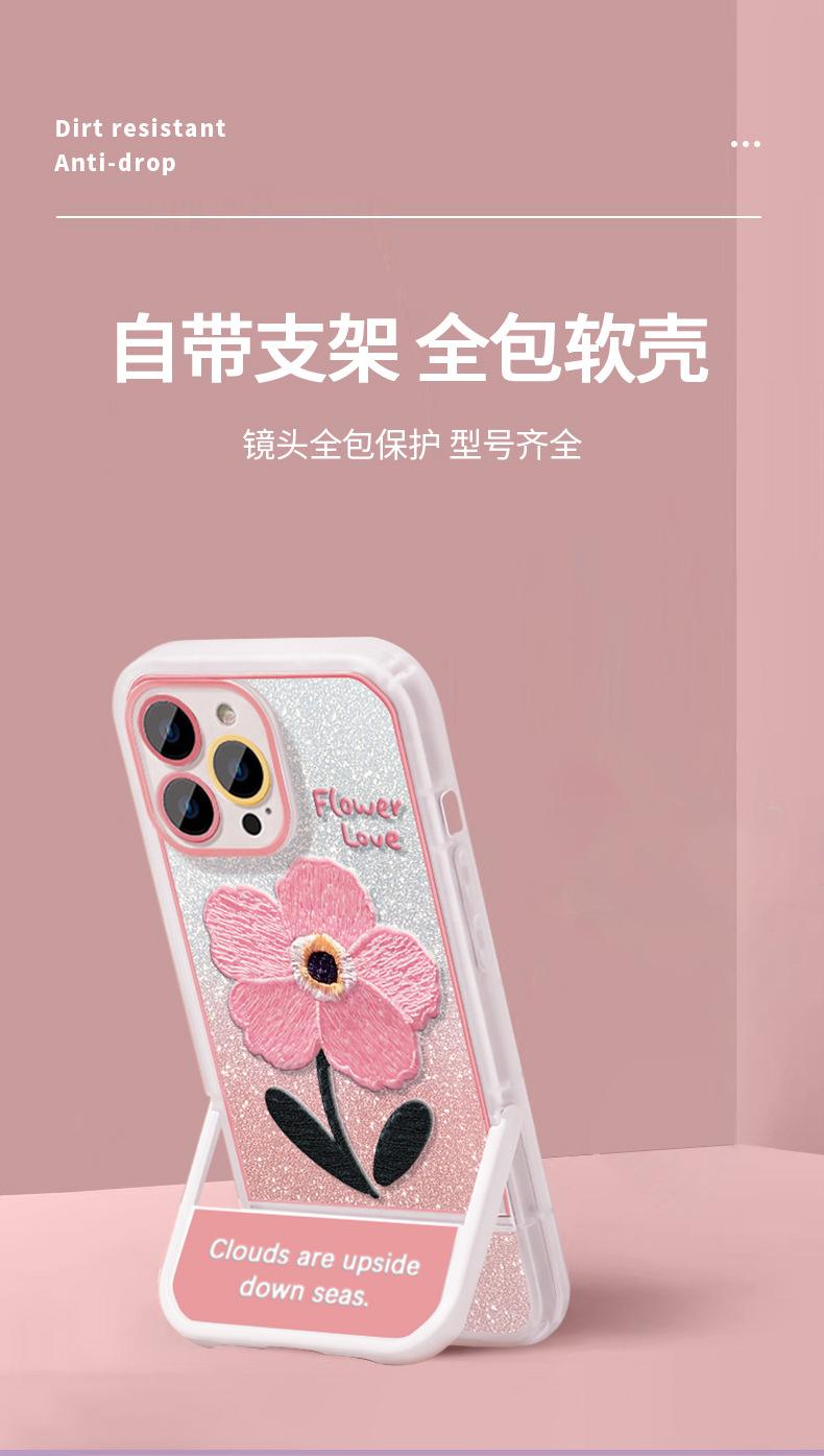 Funda con flores bordadas para Apple 16, Promax 15, soporte invisible 13, purpurina 14, silicona 12, funda protectora