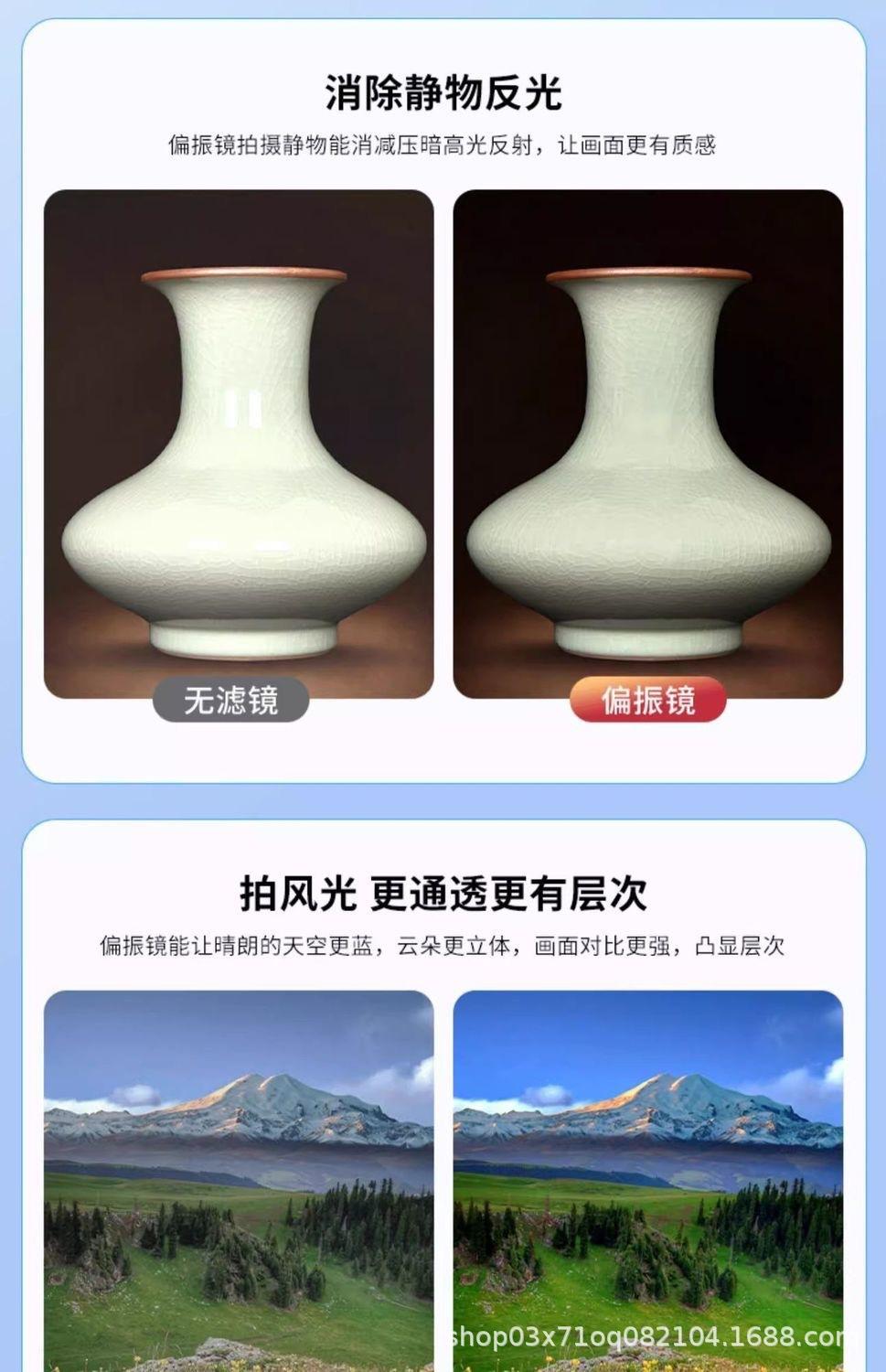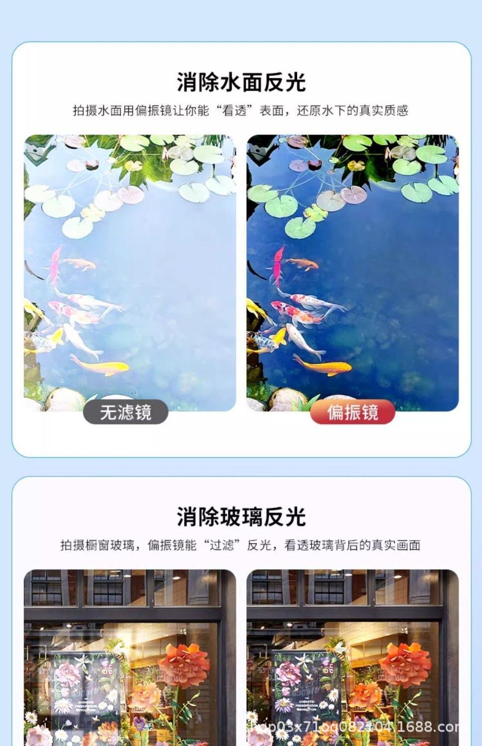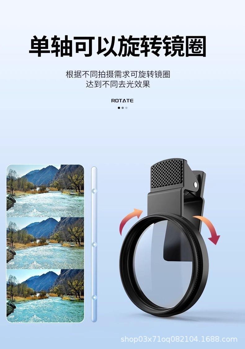 En stock filtro polarizador de lente para fotografía de teléfono móvil de 52 mm con clip polarizador CPL para eliminar filtro HD reflectante