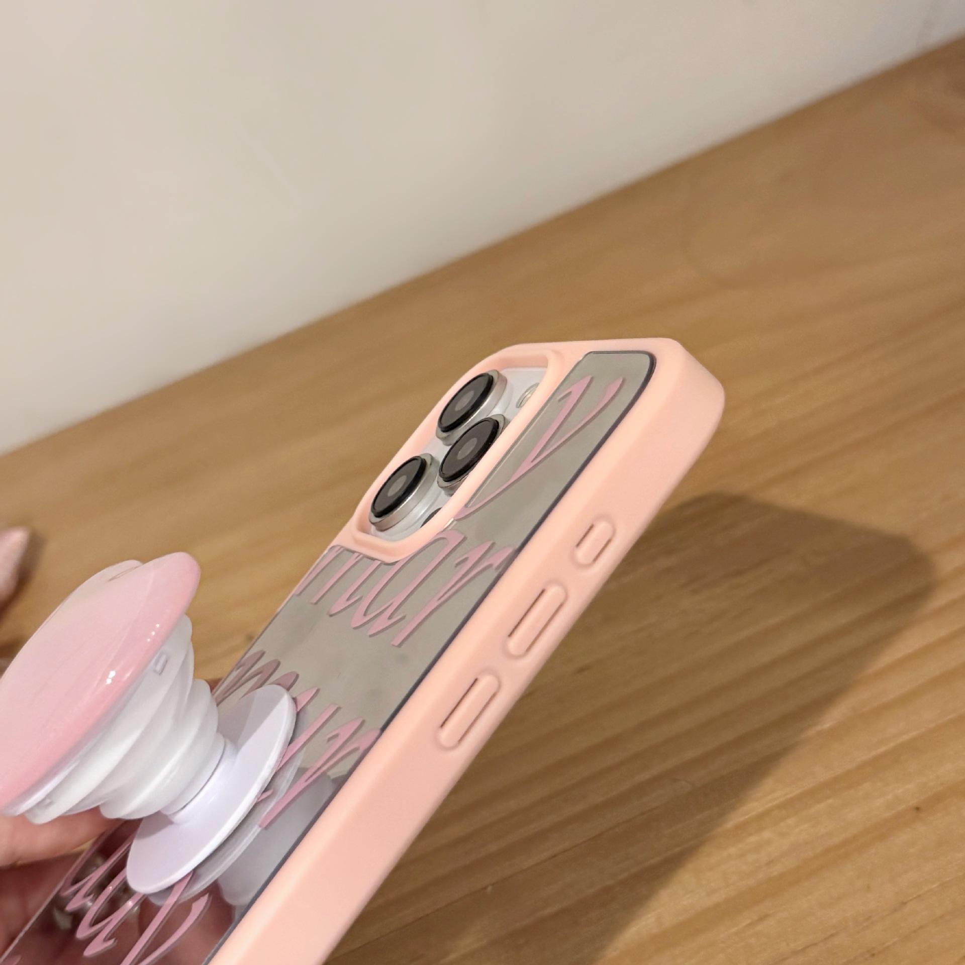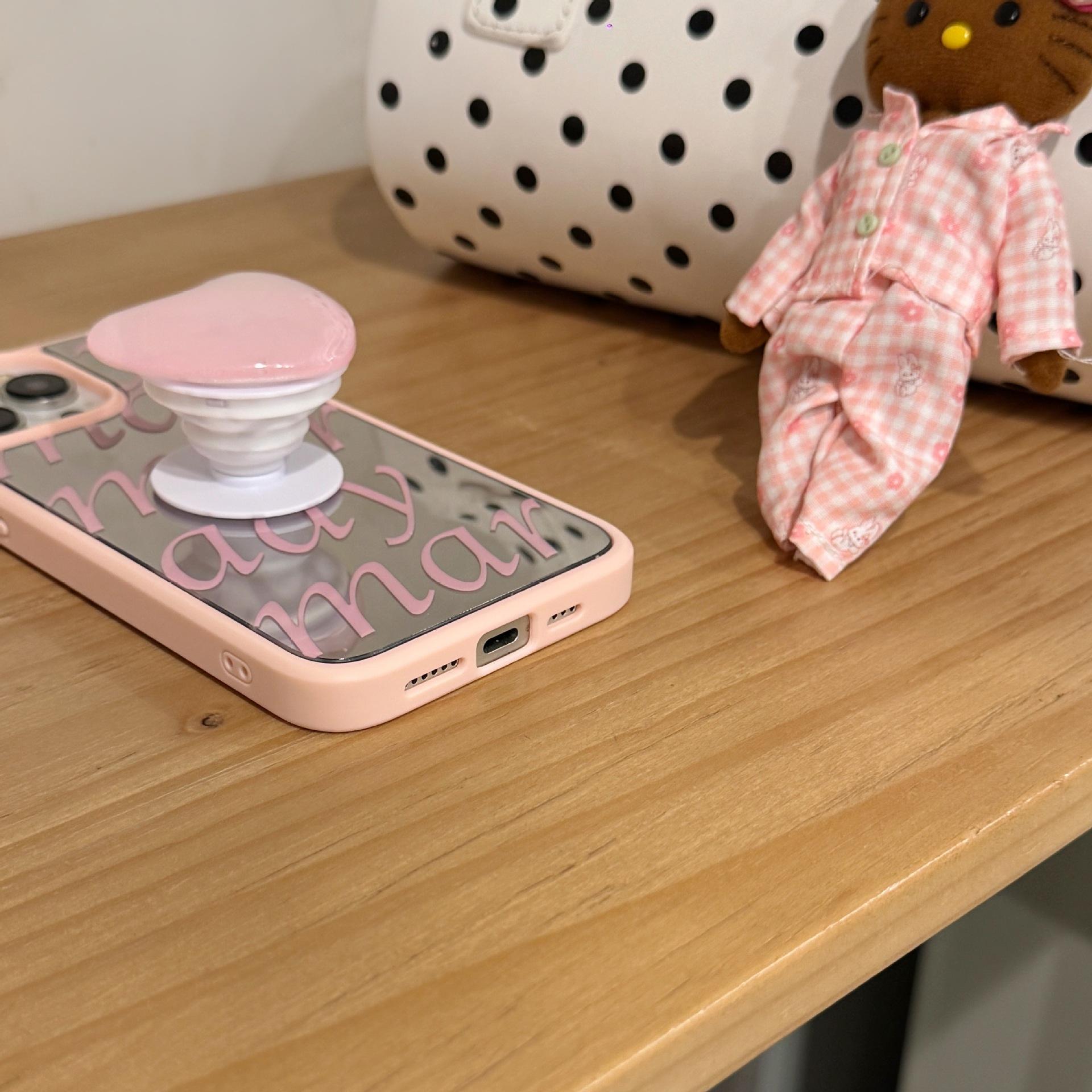 Pink edge mirror english-single shell, Pink edge mirror english + love bracket