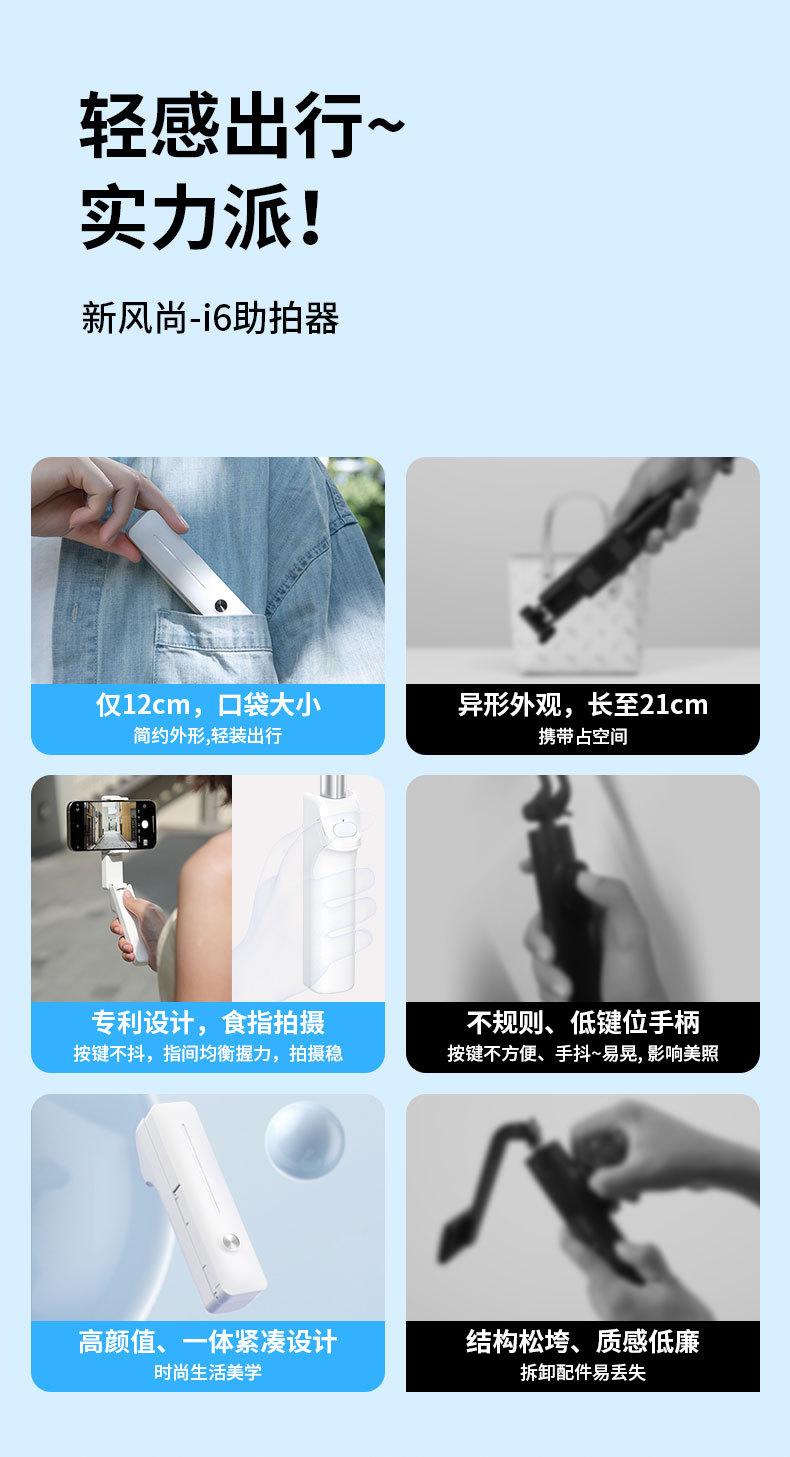 I6 bluetooth selfie stick-white-72cm, I6 mobile phone selfie stick-pink-72cm