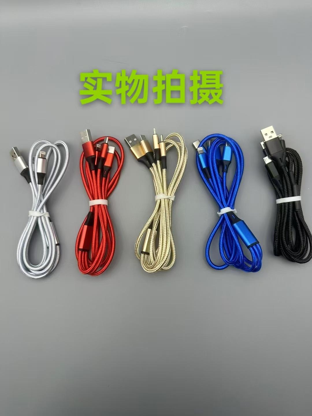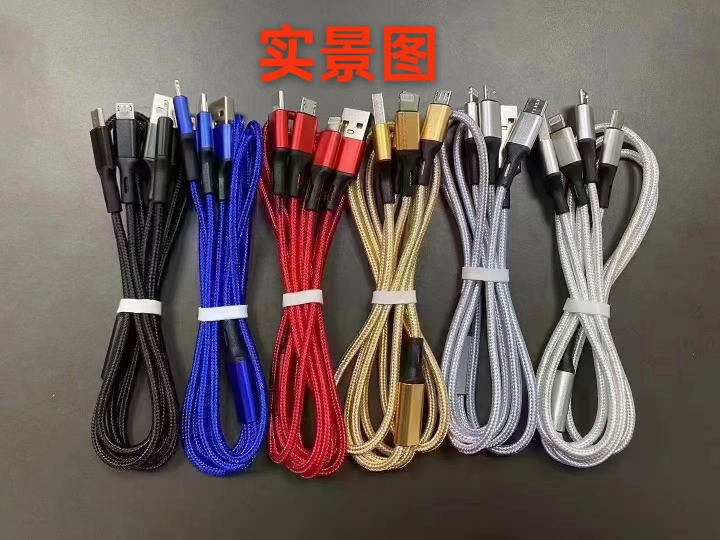 Cable de Carga Rápida de Uno a Tres Trenzado de Nailon, Cable de Datos Tres en Uno Adecuado para Carga Apple, Android y Tipo C