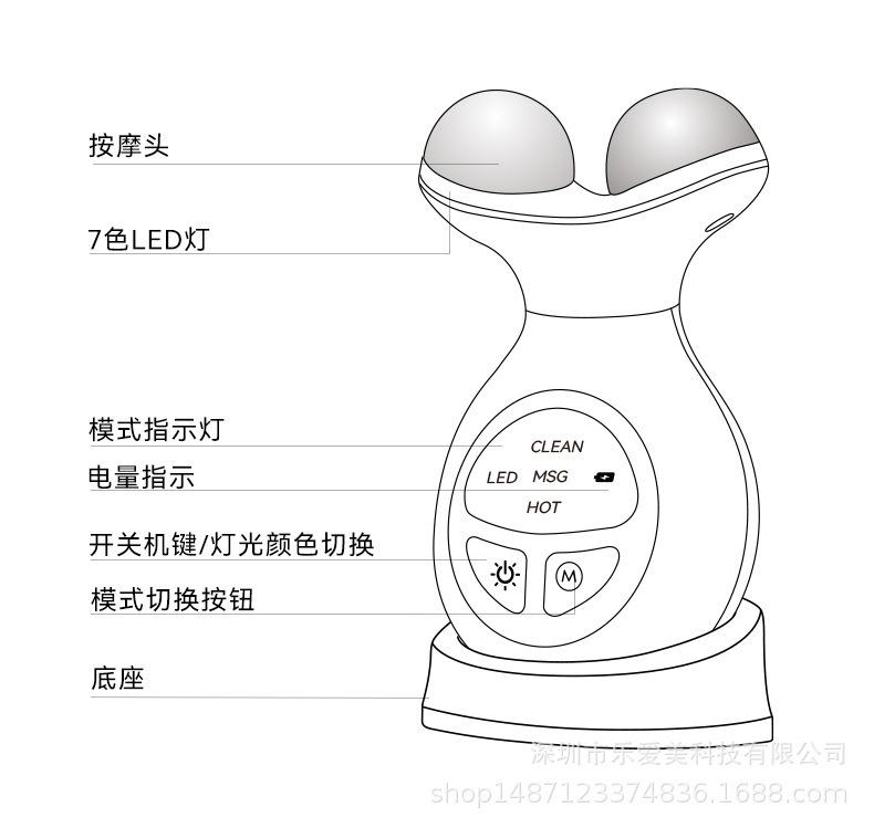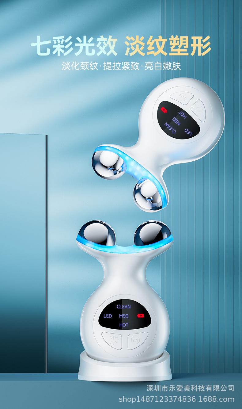 El nuevo instrumento de belleza con luz de siete colores que levanta y tensa las líneas del cuello, instrumento de introducción multifunción de alta frecuencia para masaje de cuello.