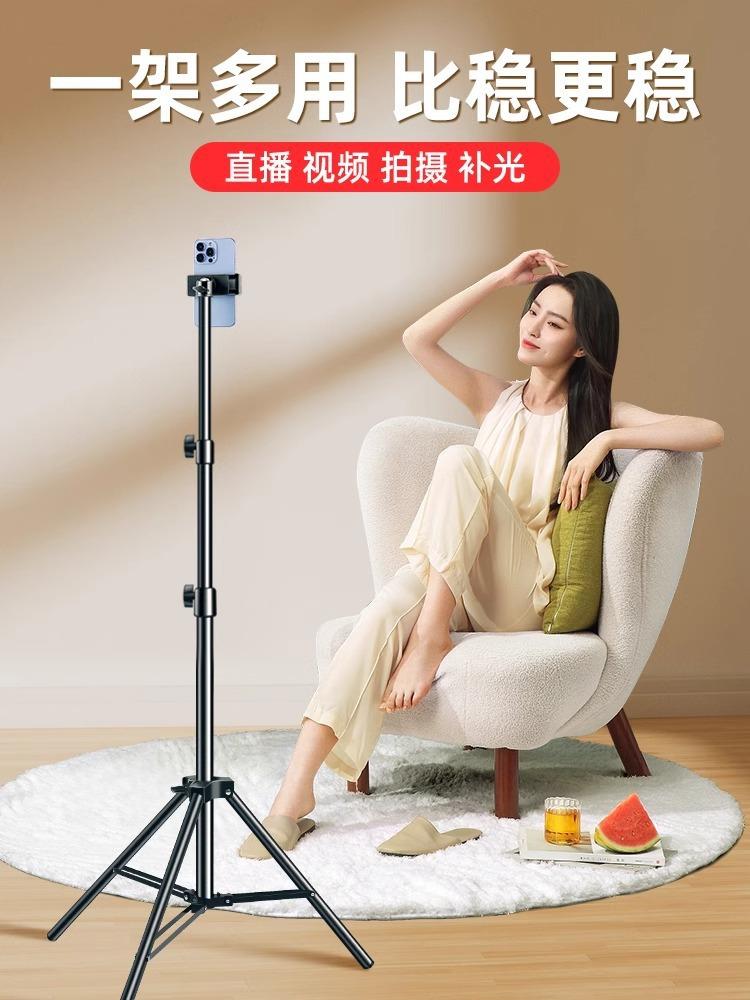 Soporte para Fotografía en Vivo con Teléfono Móvil para Exteriores Foto Selfie Acero al Carbono Soporte de Luz 2.1m Trípode de Piso Engrosado