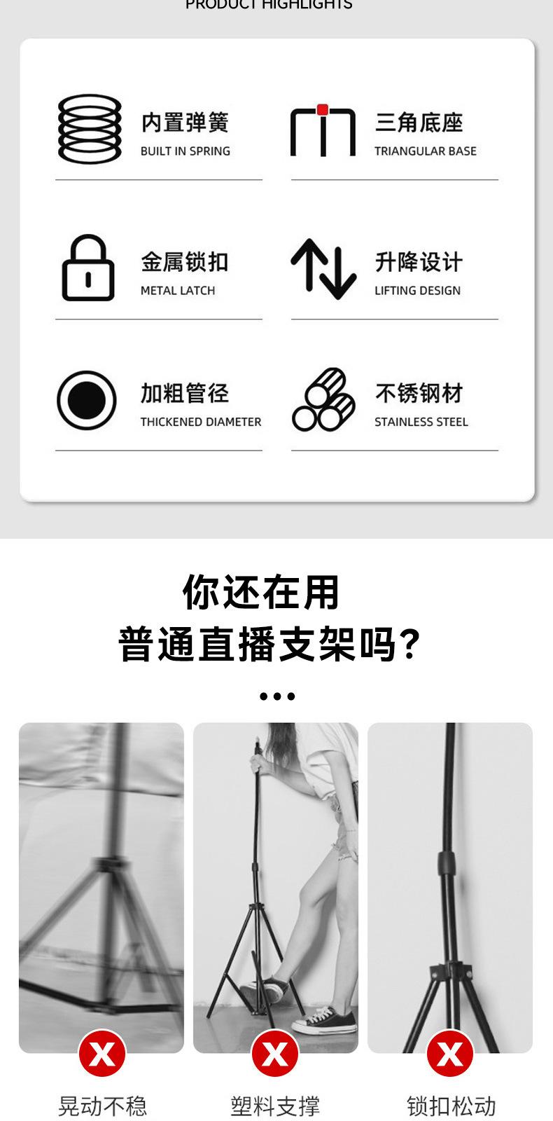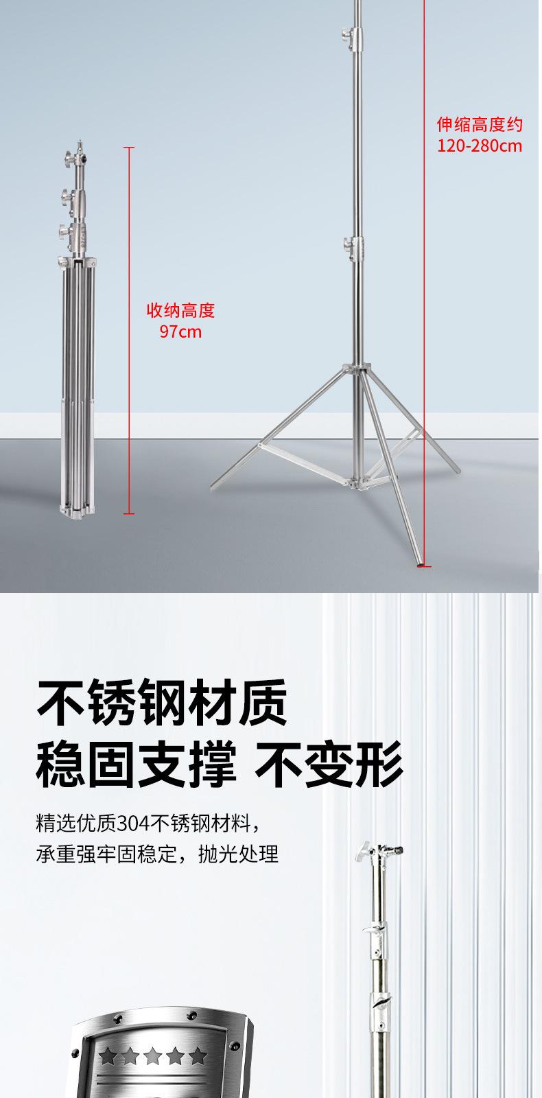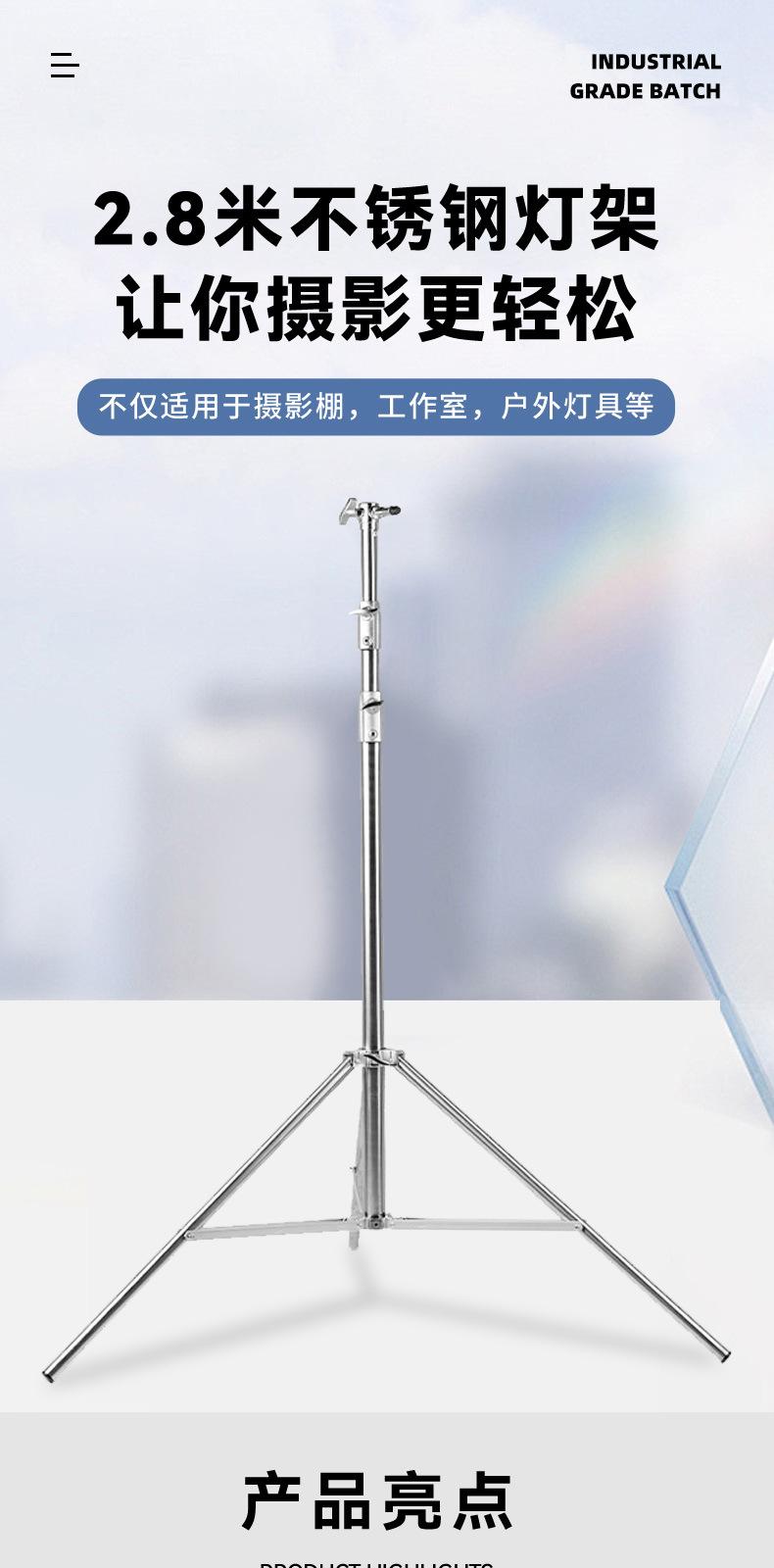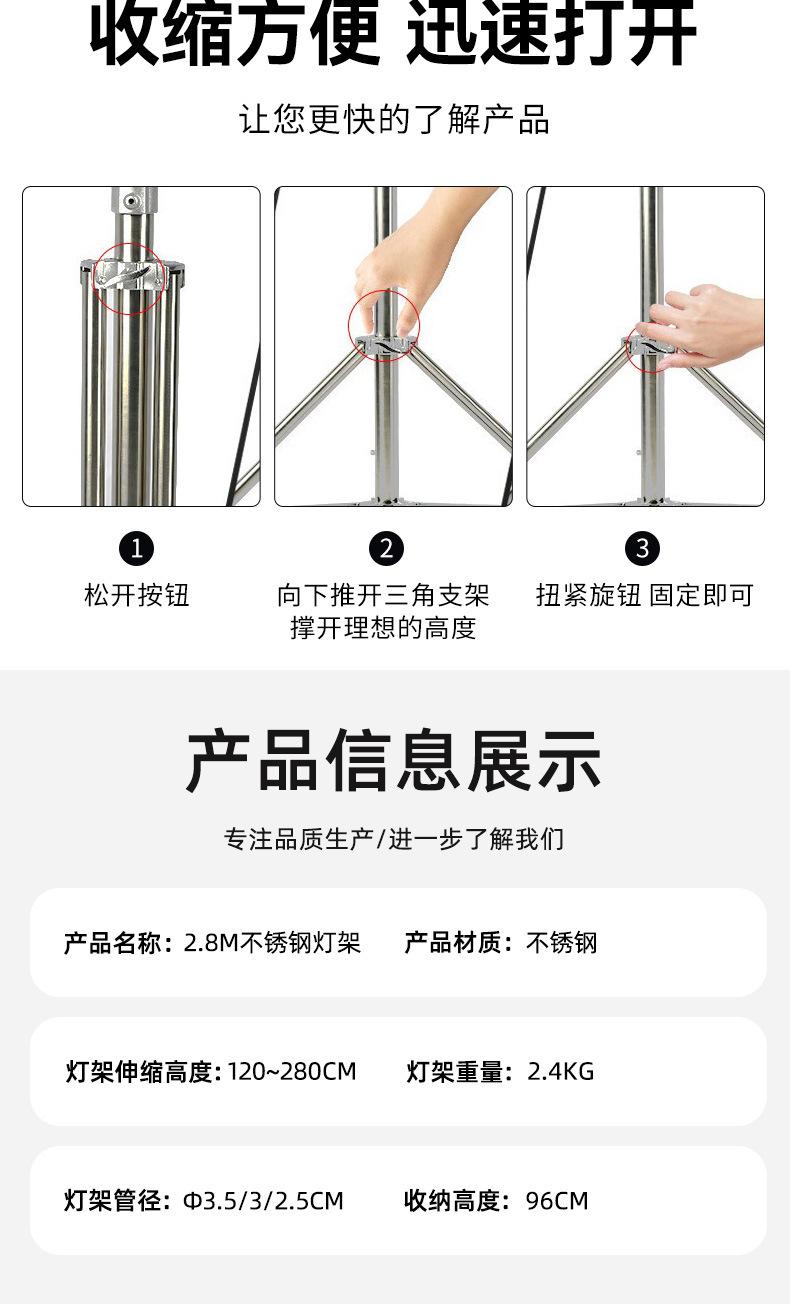 Trípode de acero inoxidable de 2,8 metros con resorte engrosado y peso para luz de relleno de fotografía en vivo, soporte de suelo de 2,8 metros