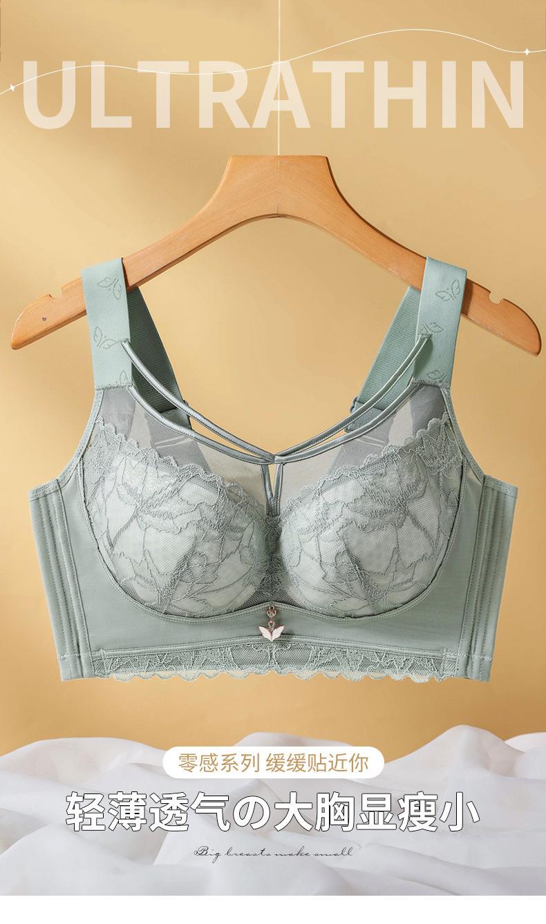 Nuevo sujetador de encaje ajustable de copa completa, sin aros de acero, de talla grande, para mujer, con fruncido pequeño y pecho grande