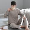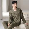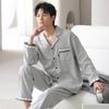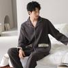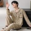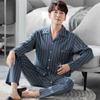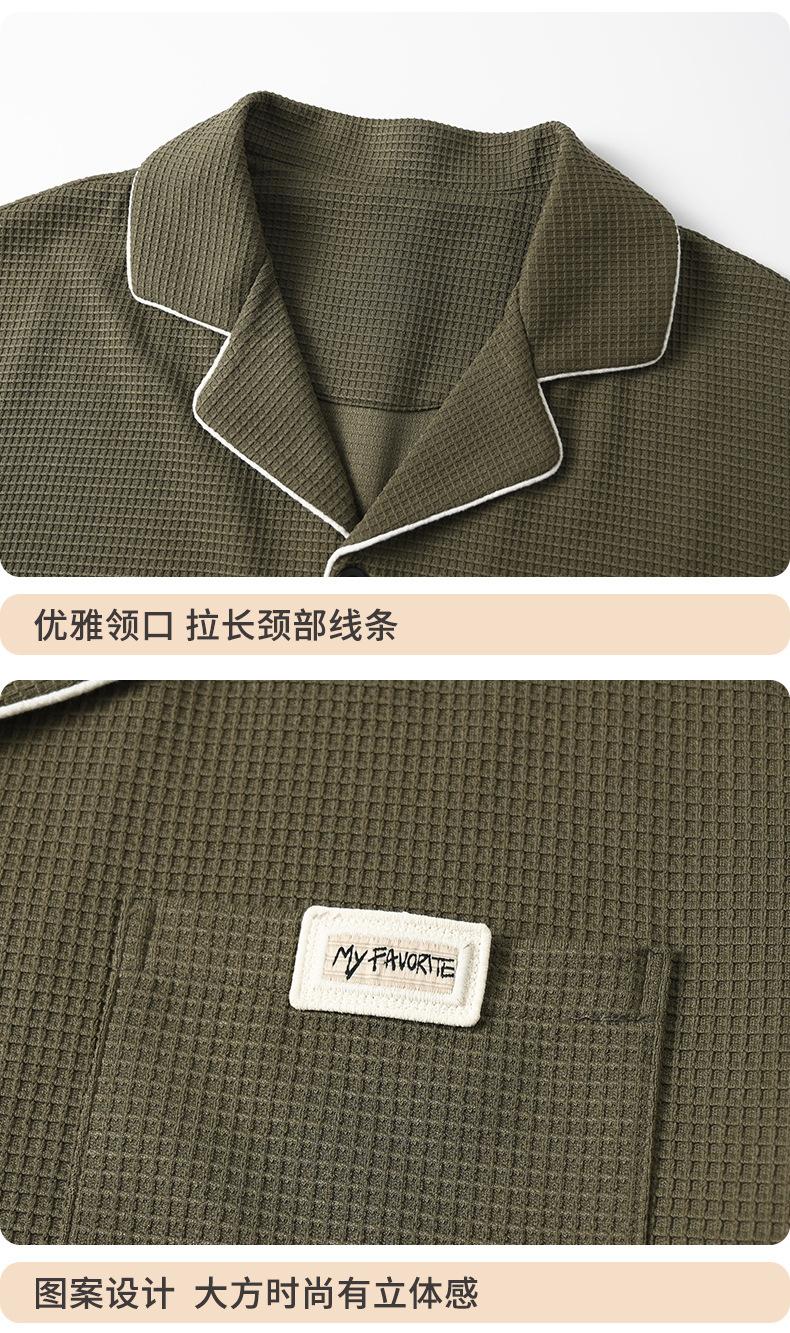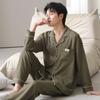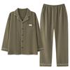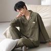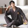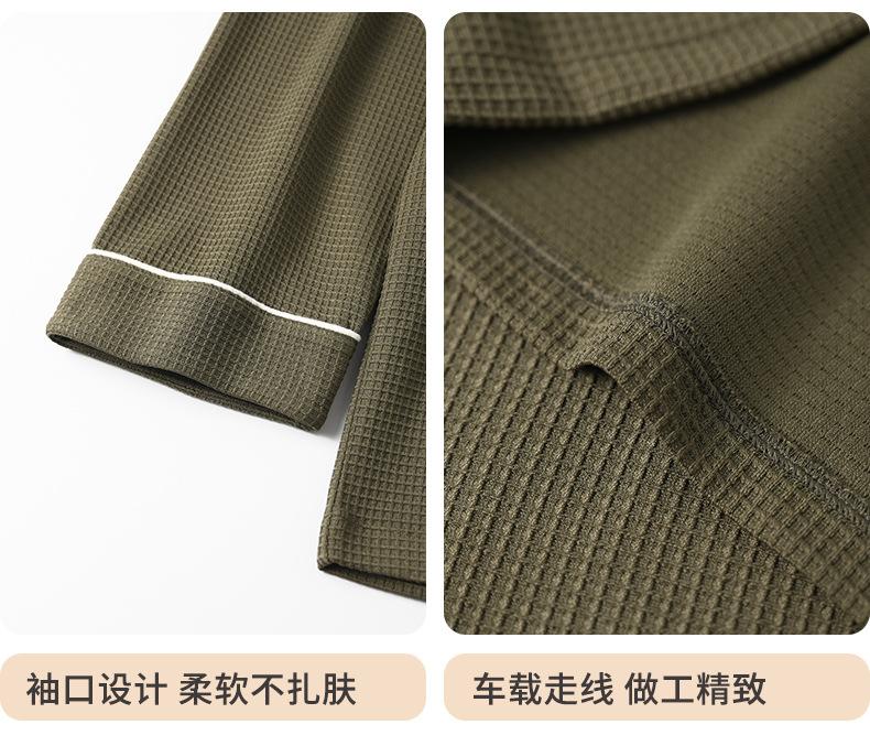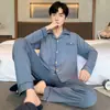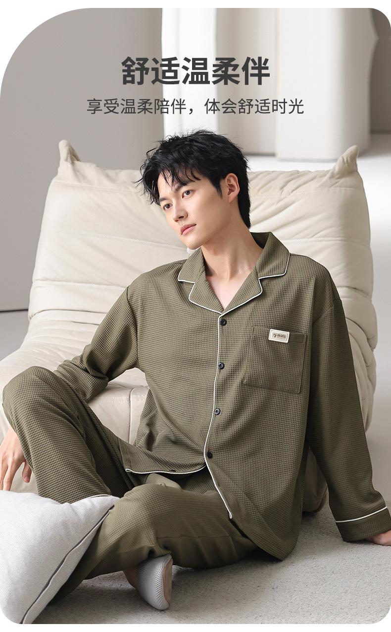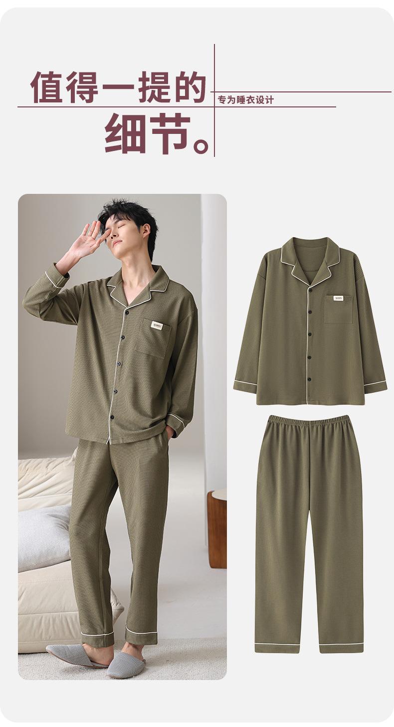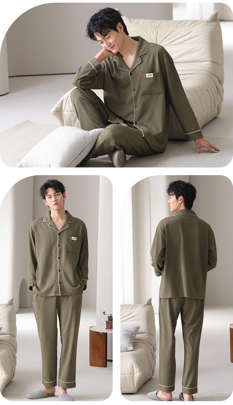 Pijama de Algodón Puro para Hombre Primavera y Otoño Waffles Algodón Puro Talla Grande Cárdigan Manga Larga Traje Ropa de Casa para Exterior Estilo de Hombre