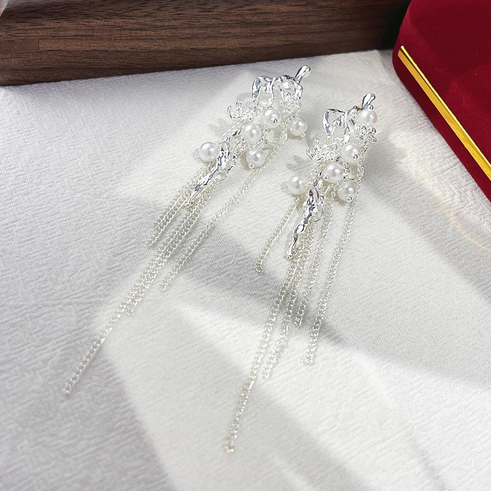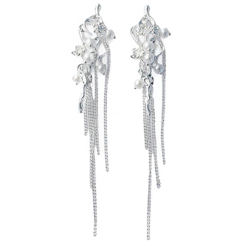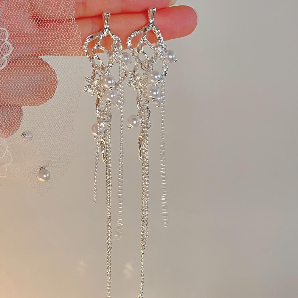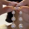 Corea del Sur Dulce Borla Blanca Perla Pendientes Largos Elegantes Lujo Ligero Moda de Alta Gama Pendientes Huecos Exagerados para Mujer