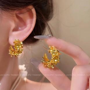 Un racimo de flores~Aretes dorados en forma de C nuevo estilo popular 2025 aretes de alta gama temperamento retro tendencia