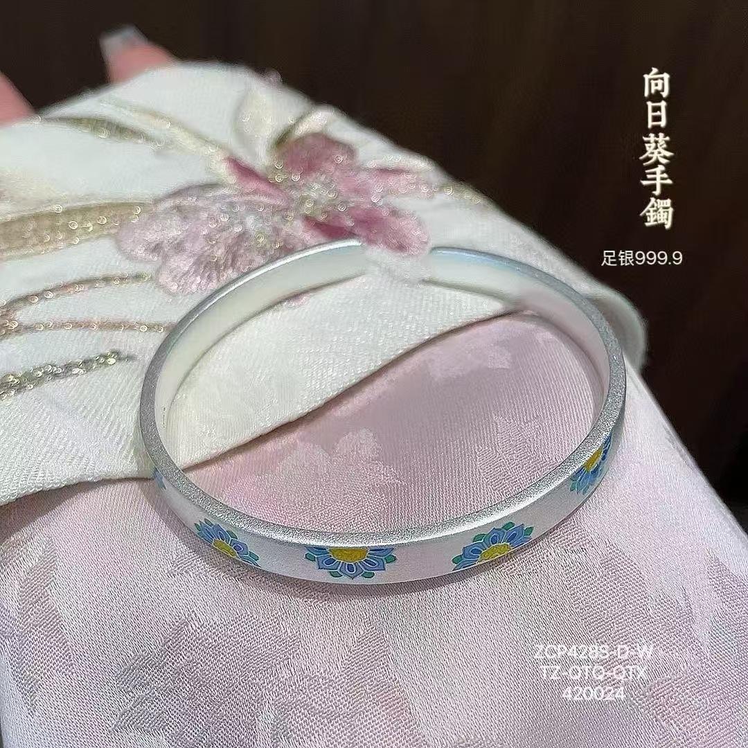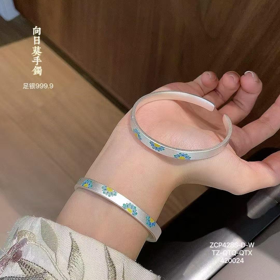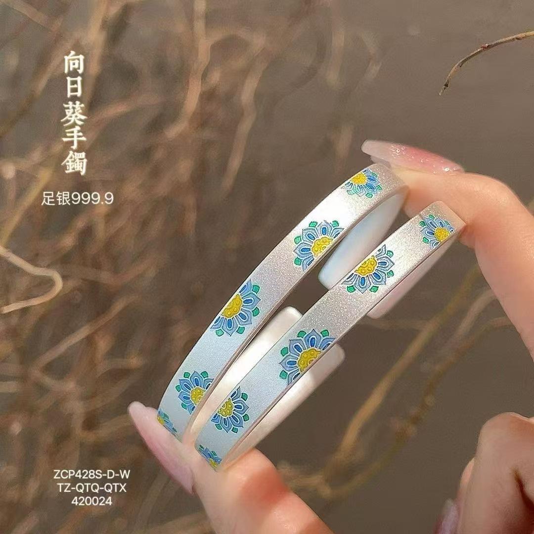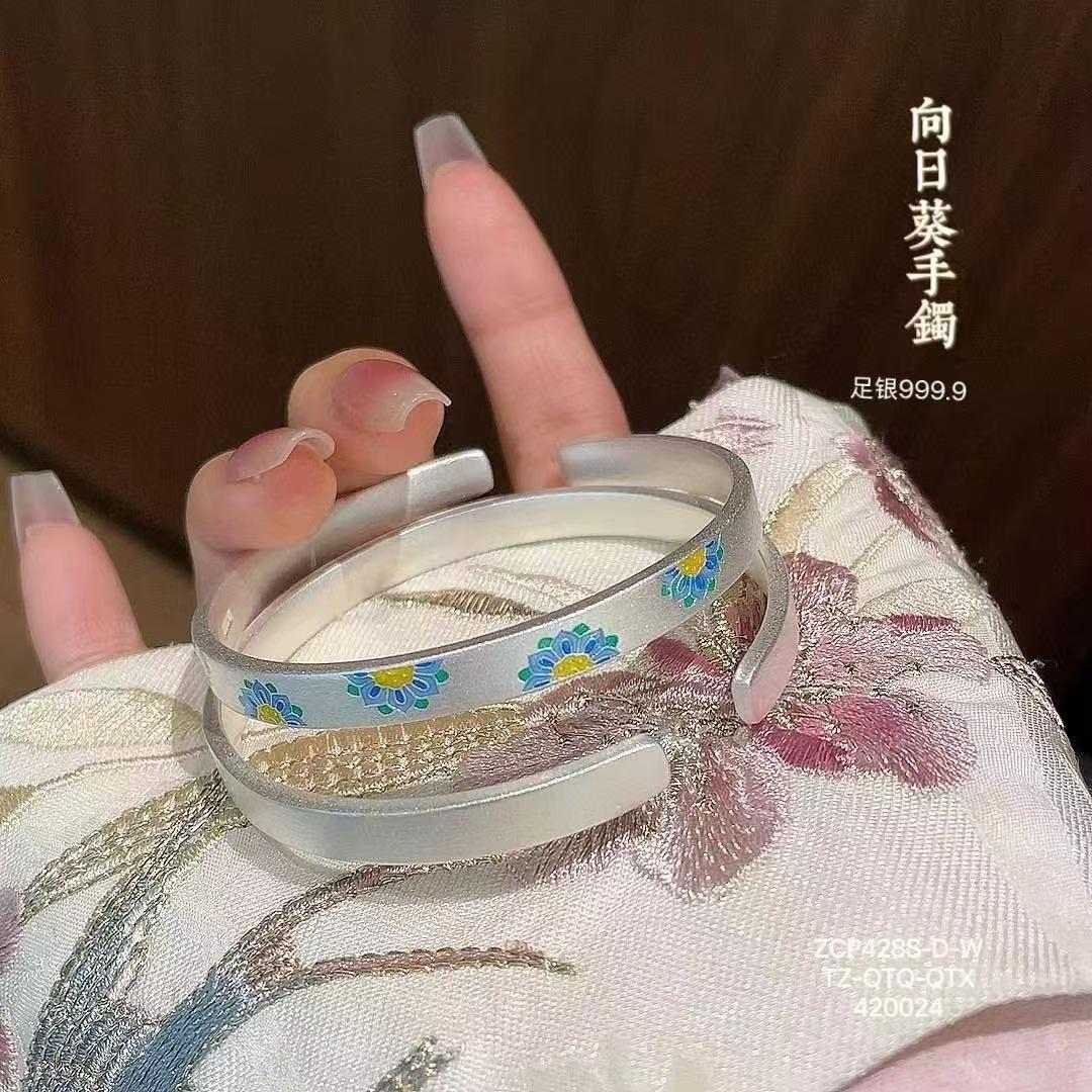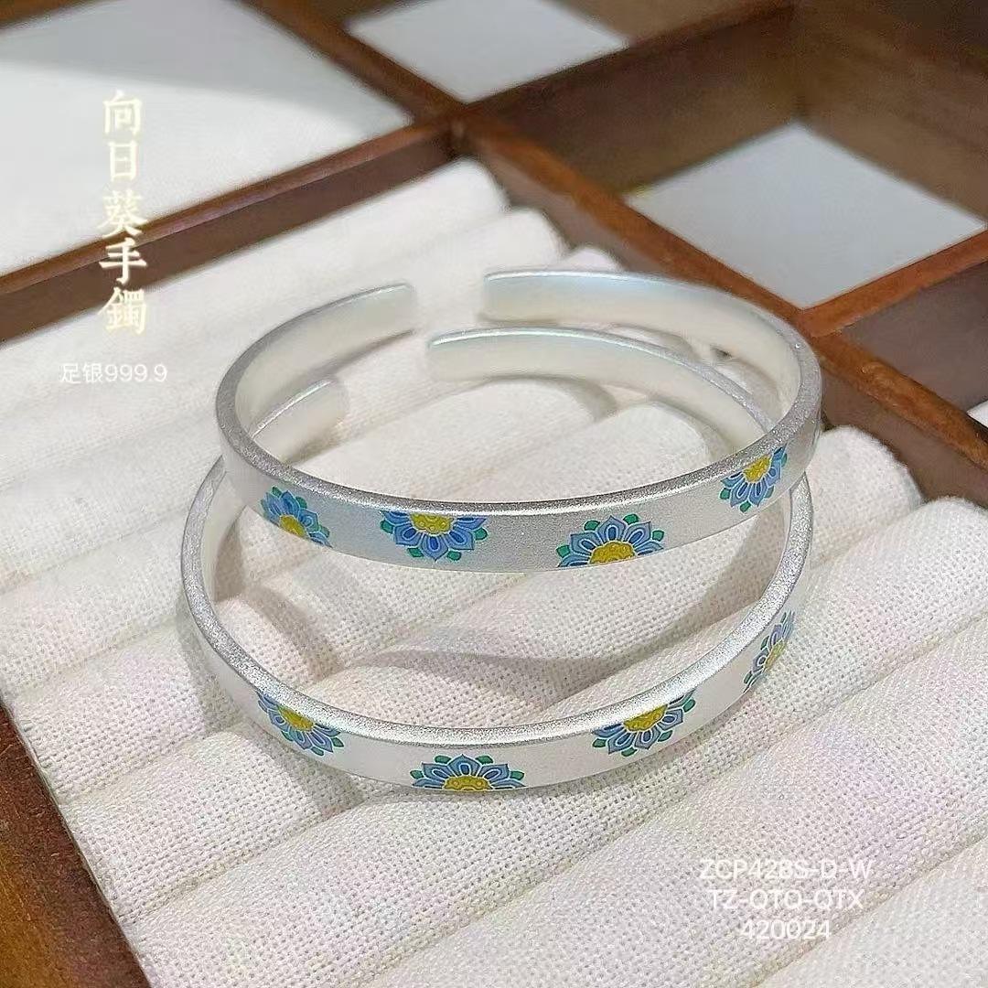 【Nombre】: Pulsera abierta de girasol de esmalte antiguo
