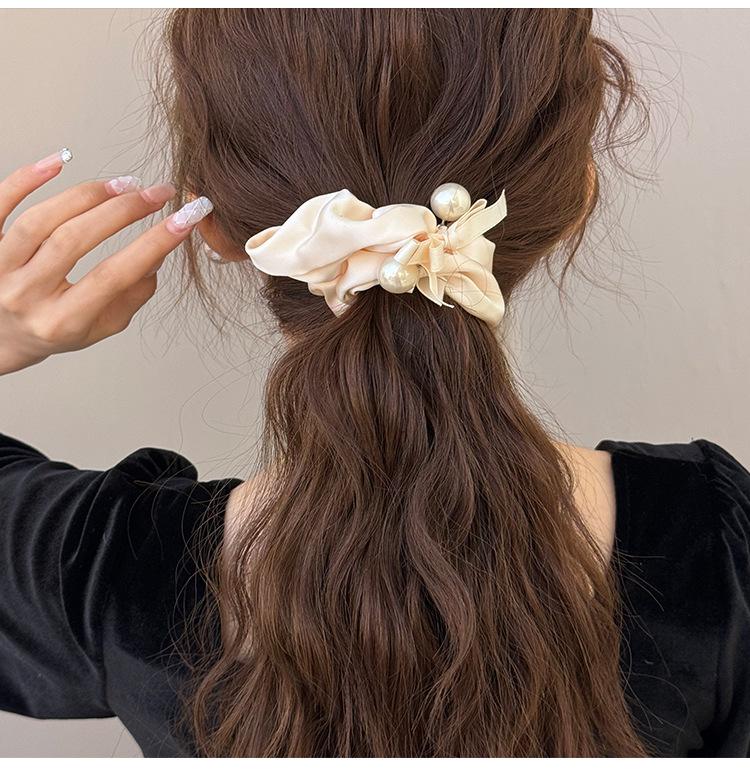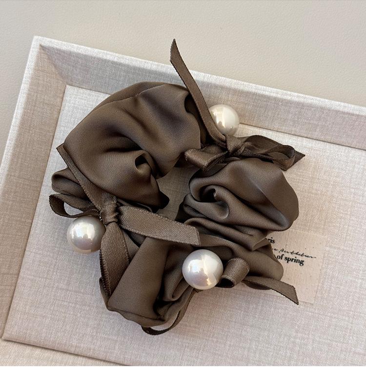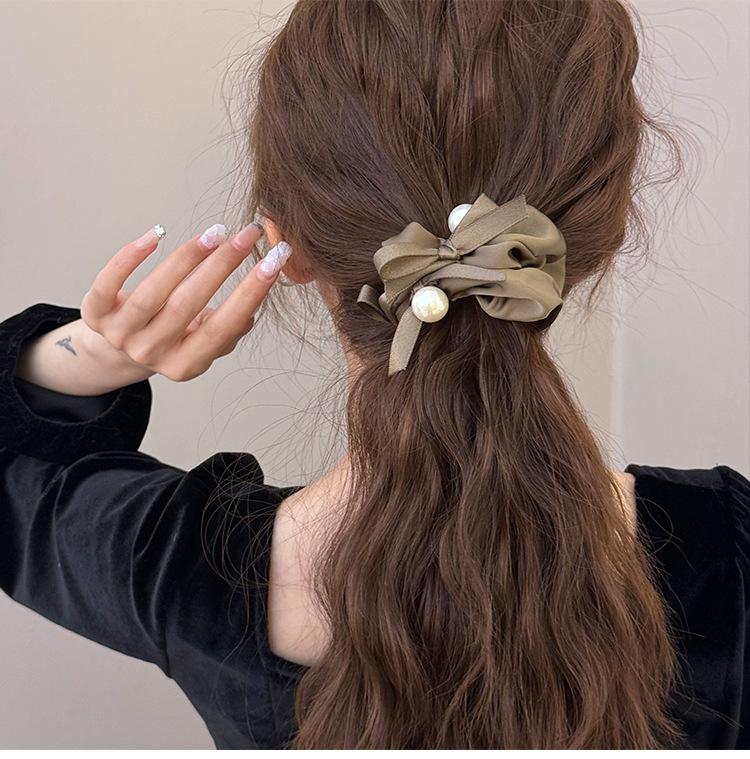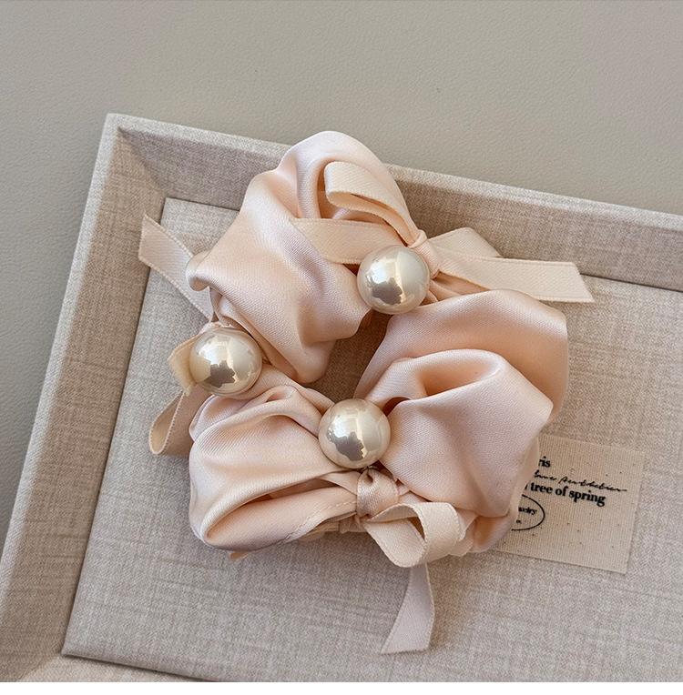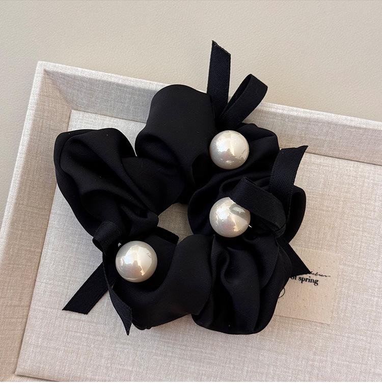 Diadema de goma de alta gama con lazo de perlas estilo coreano para el intestino grueso, accesorios para el cabello de bola 2025