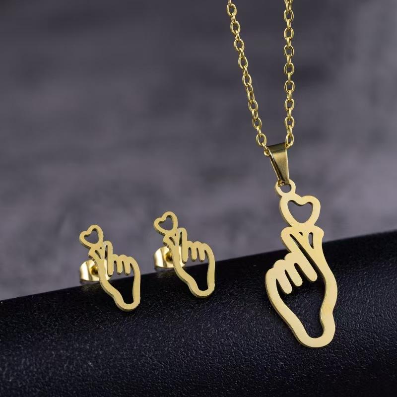 Collar y pendientes con colgante de gesto de amor popular de Corea del Sur, joyería de acero inoxidable, regalo de joyería