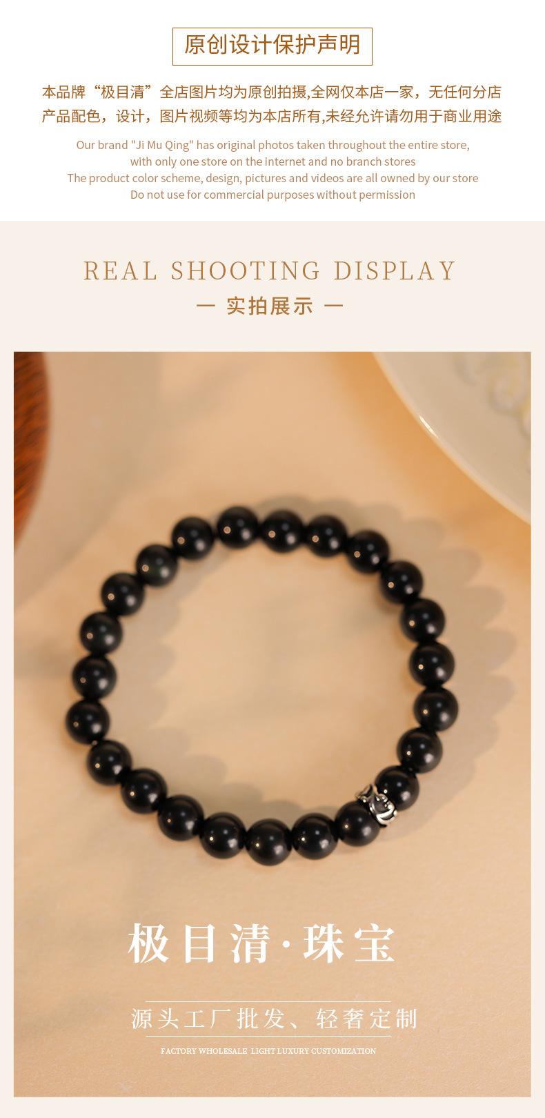 Diseño Original Pulsera de Obsidiana Natural Diseño Nicho Personalizado Pulsera de Cuentas Negras para Hombres y Mujeres Venta al por Mayor de Pulseras