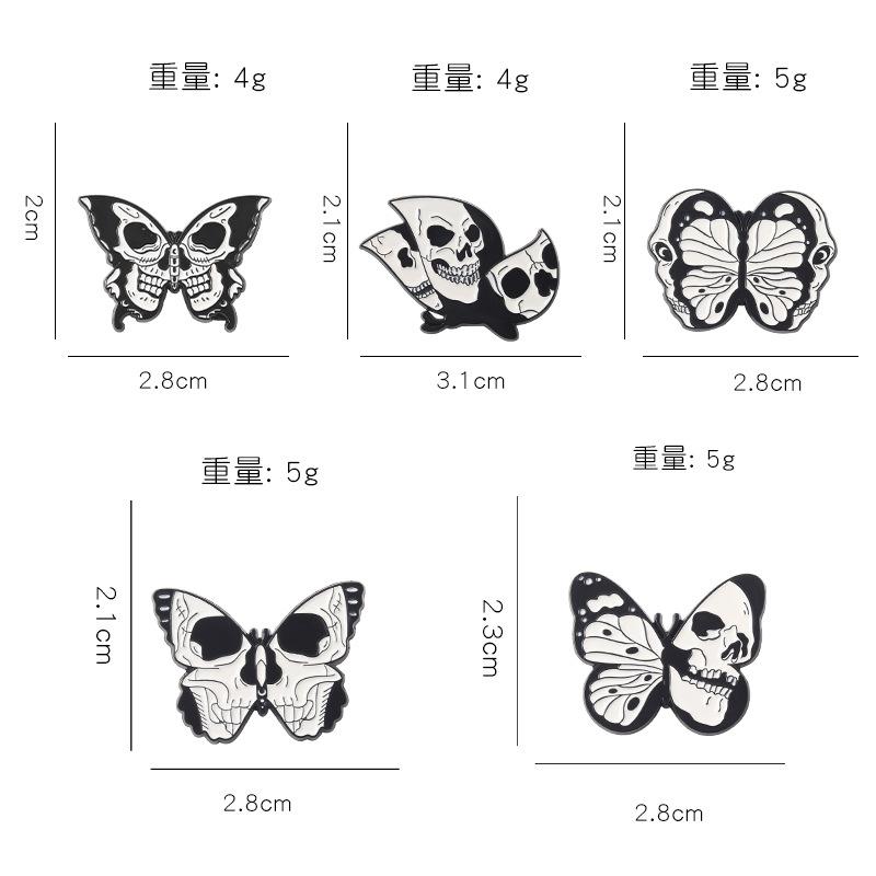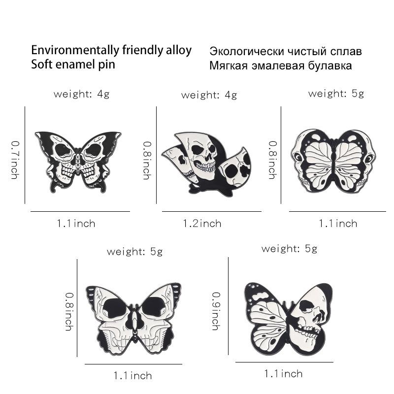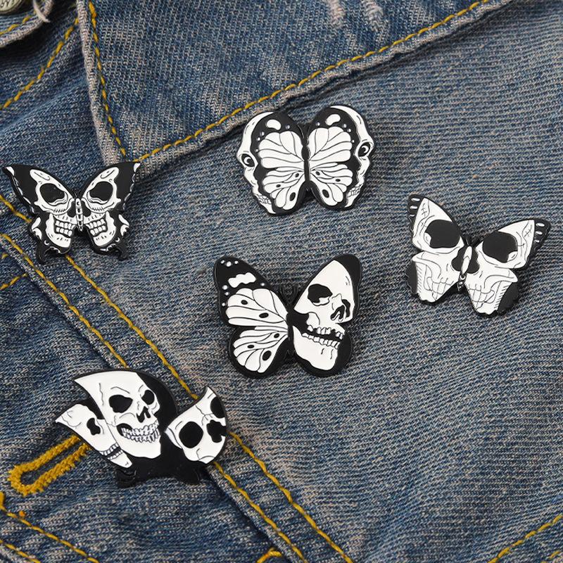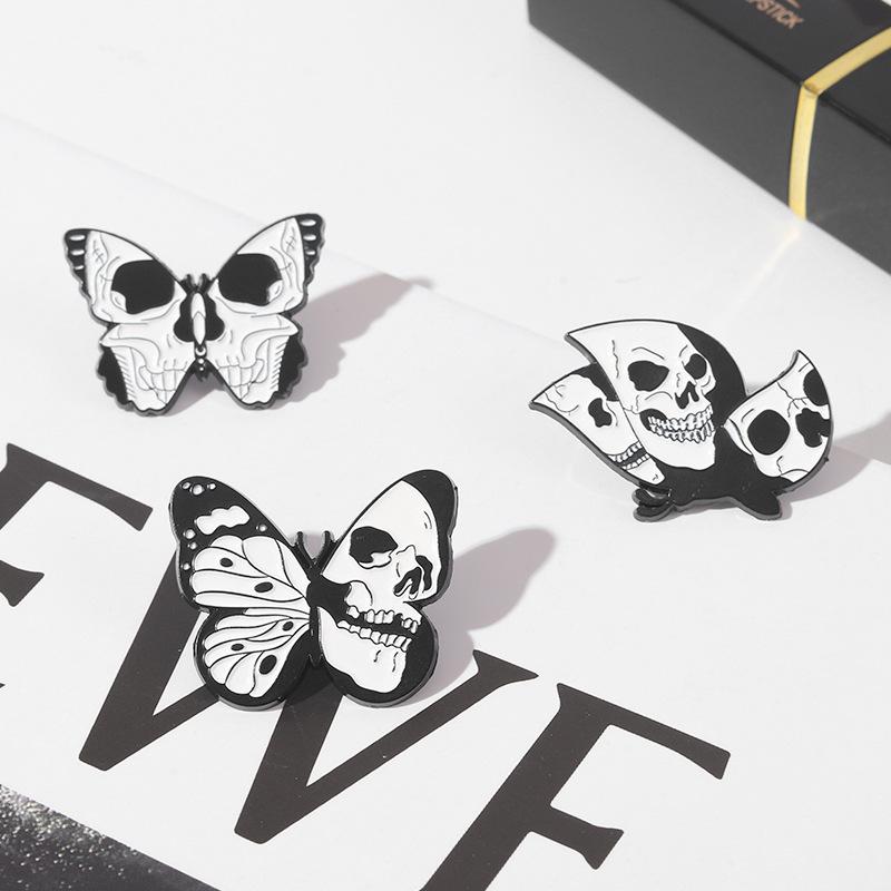 Broche de Aleación de Mariposa con Cara de Fantasma Blanco y Negro Creativo Nuevo Transfronterizo Estilo Oscuro Quirky Colección de Calaveras Accesorio Insignia