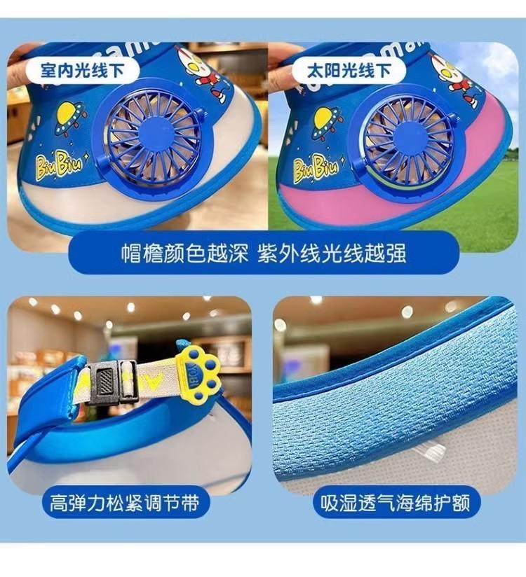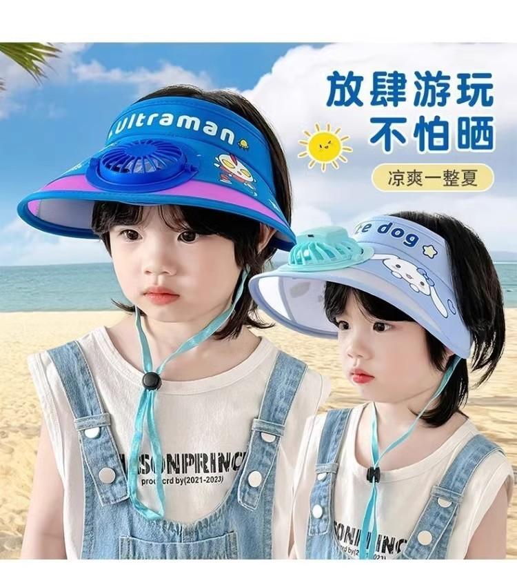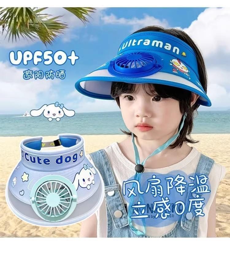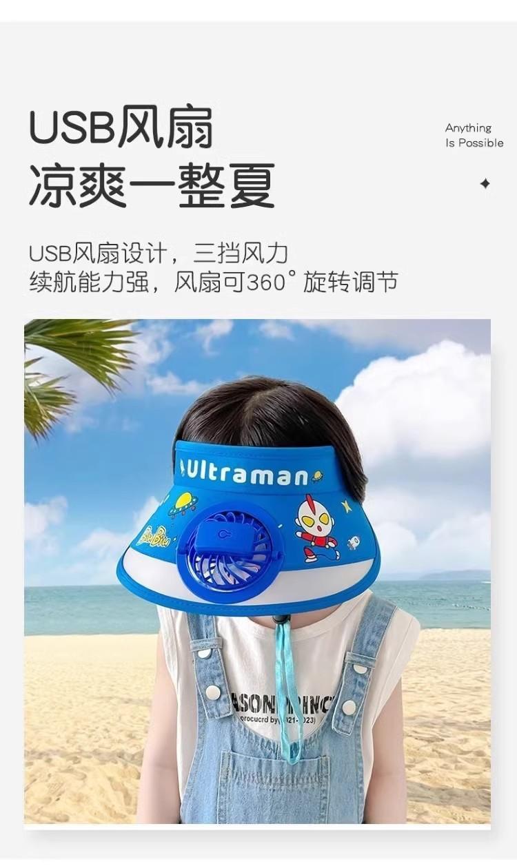 Sombrero de Sol para Niños con Ventilador Verano Sombrero Ultraman con Protección Solar para Niños Bebés Sombrero de Sol para Niñas con Parte Superior Vacía
