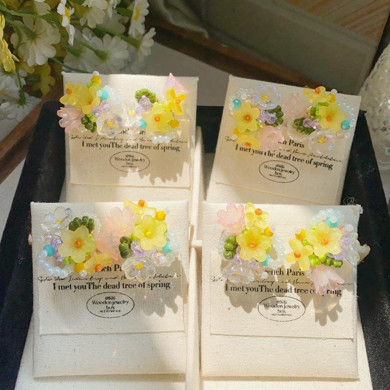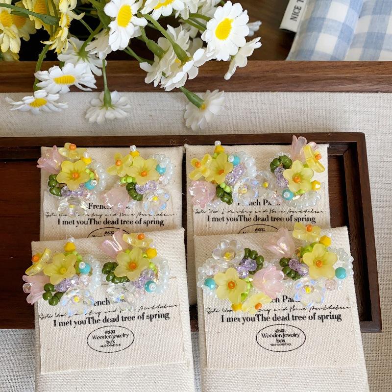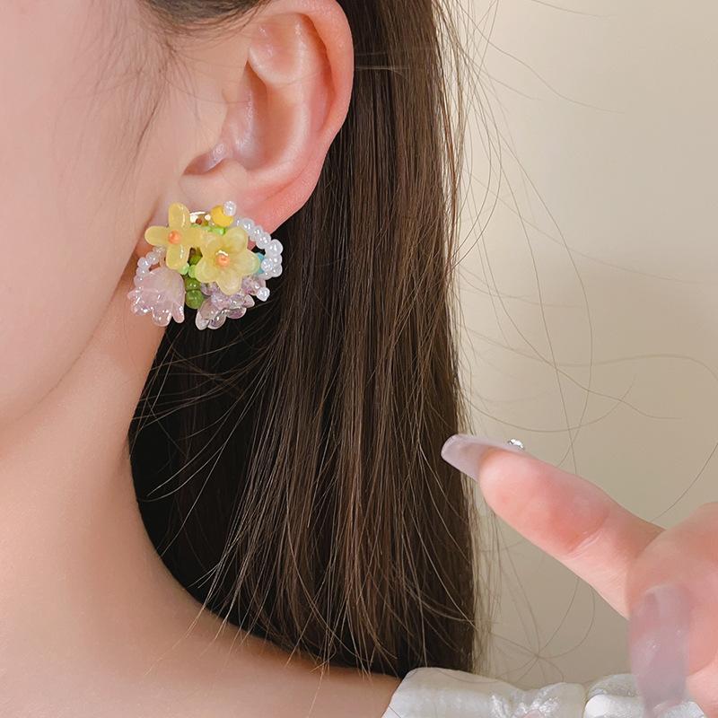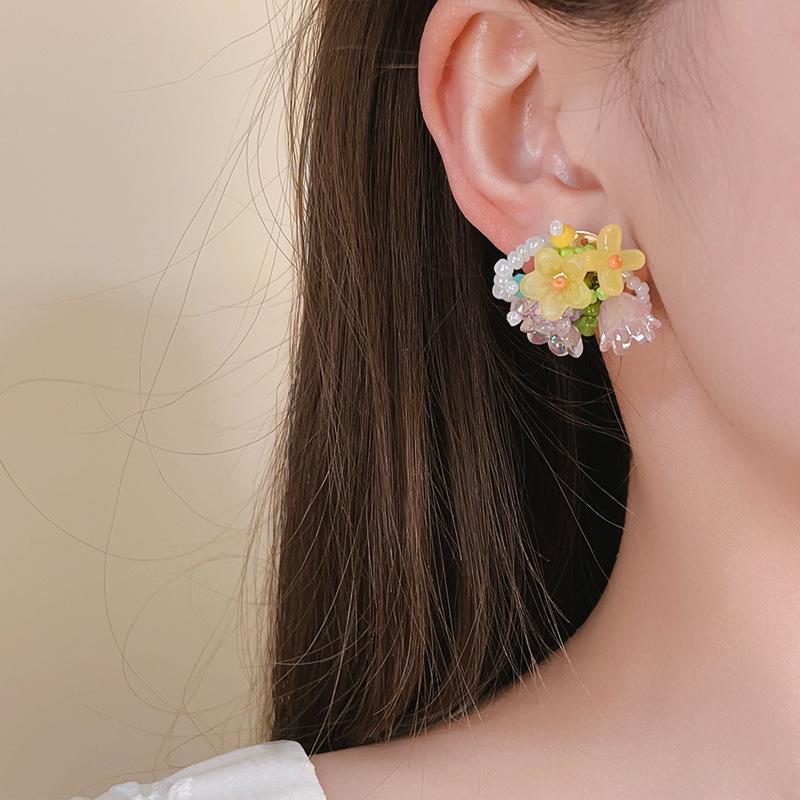 Aretes de Flores para la Oreja Flores Color Dopamina Aretes para Mujer de Verano para Vacaciones en la Playa Aretes Dulces Elegantes