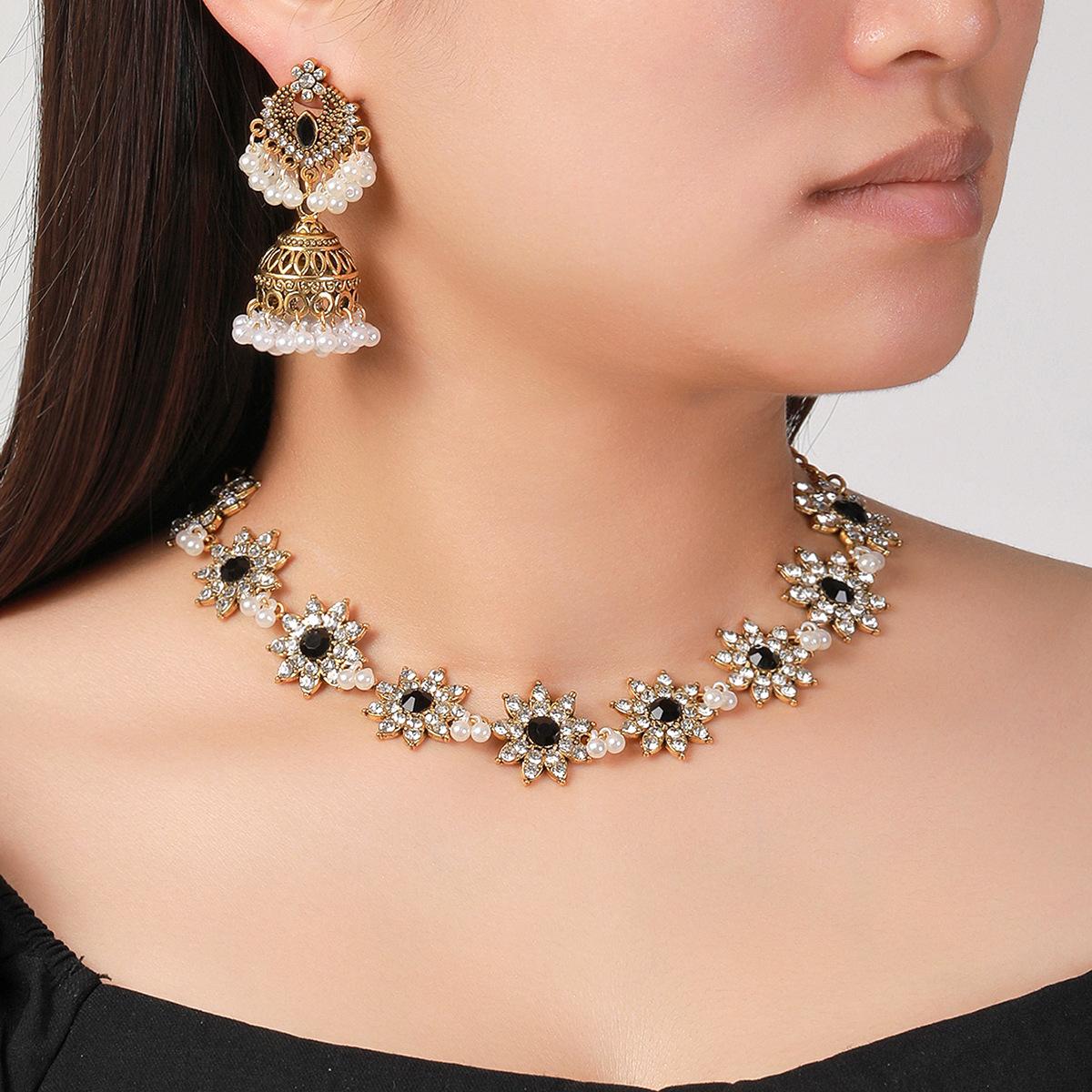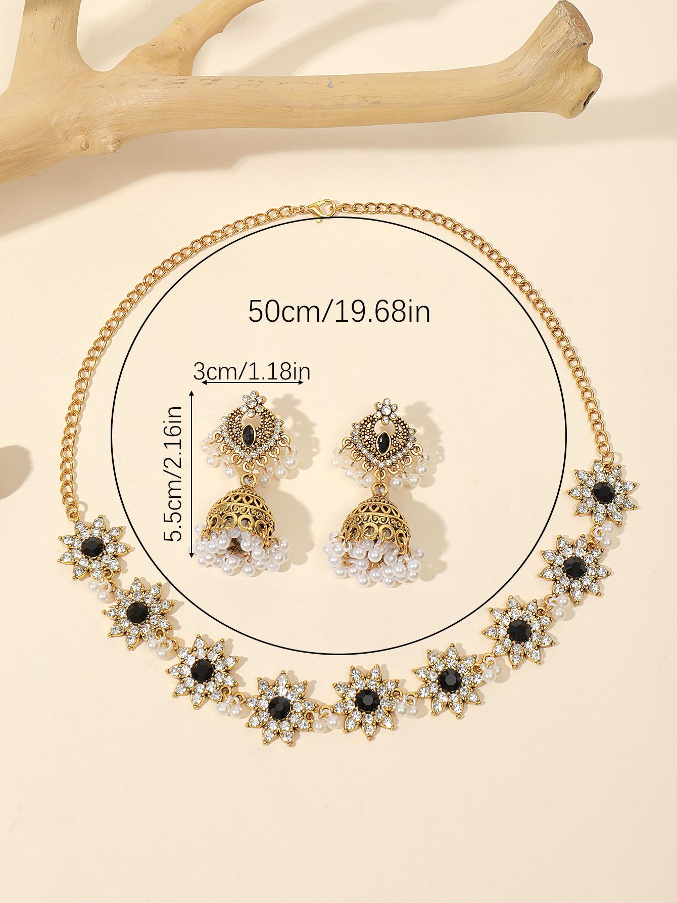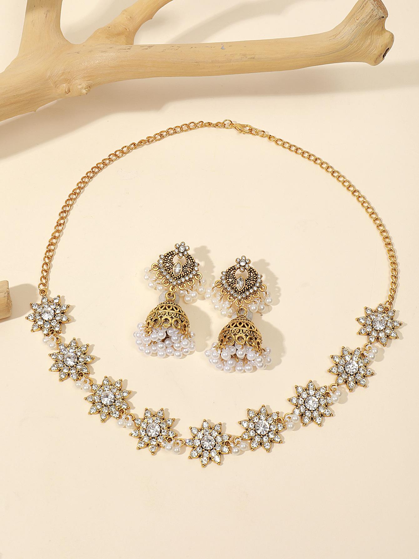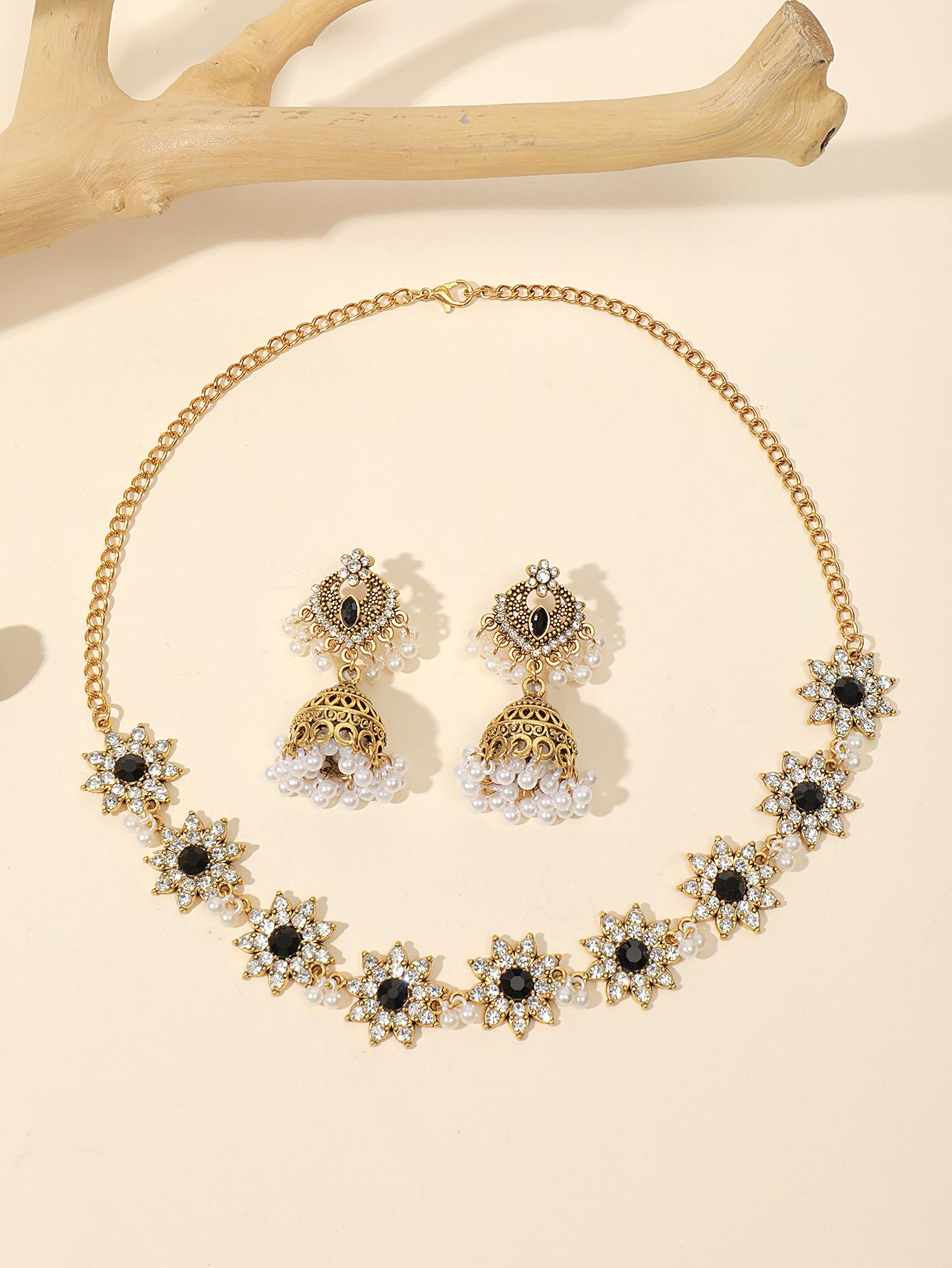 Conjunto de dos piezas de joyería con collar y pendientes de diamantes, estilo bohemio, estilo nacional vintage europeo y americano.