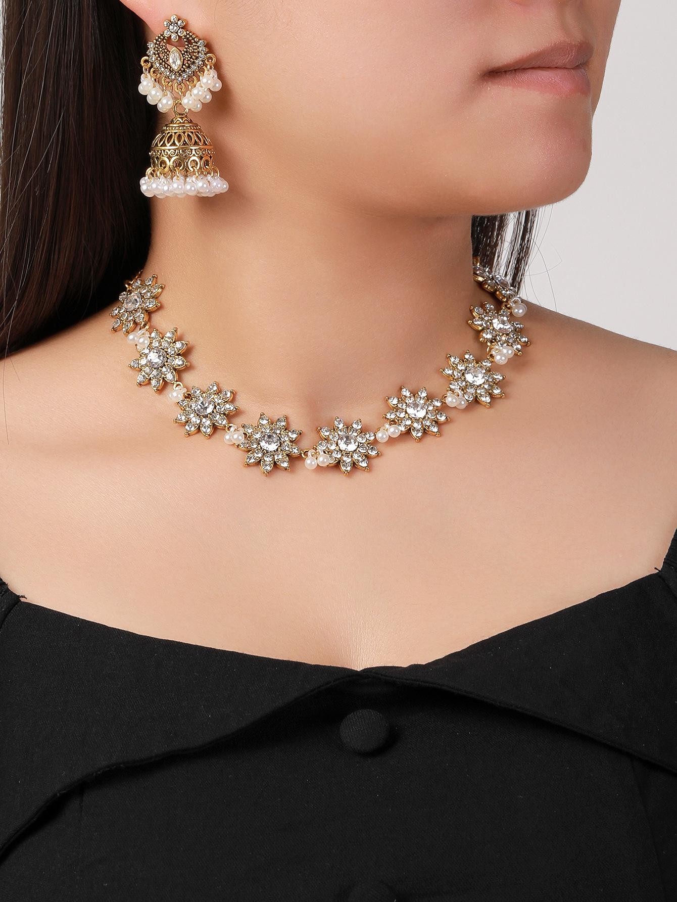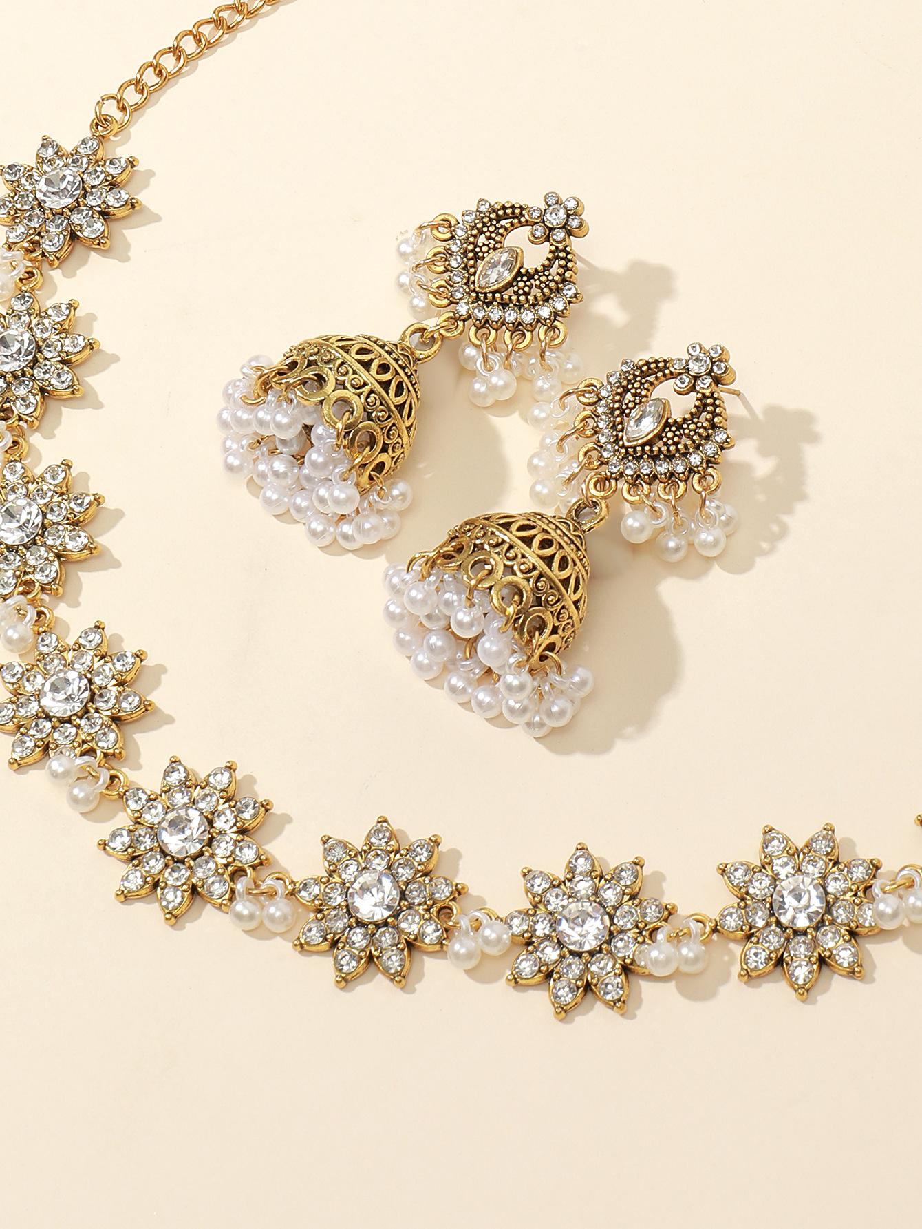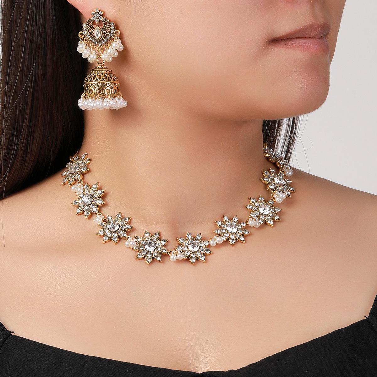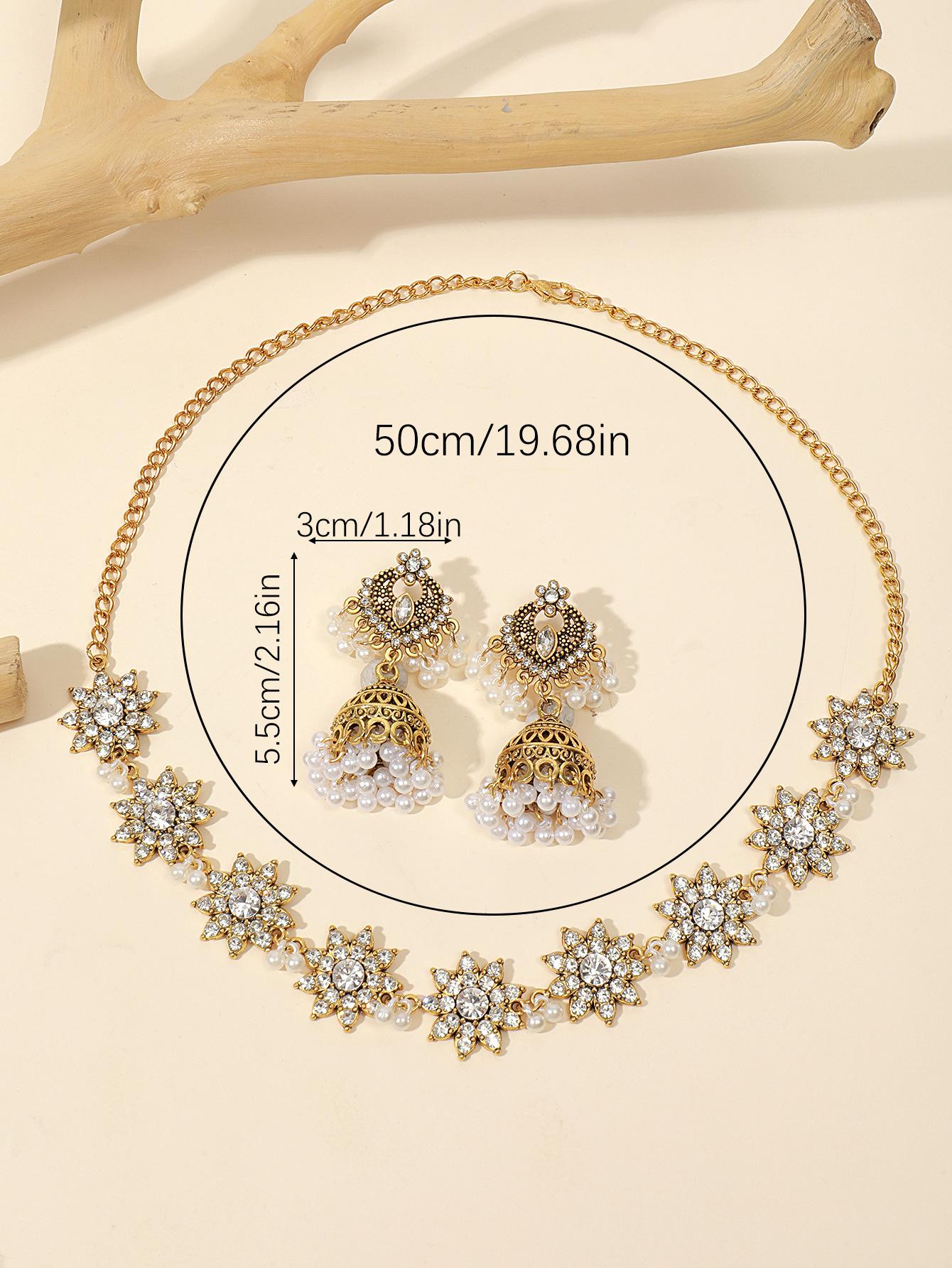 Conjunto de dos piezas de joyería con collar y pendientes de diamantes, estilo bohemio, estilo nacional vintage europeo y americano.