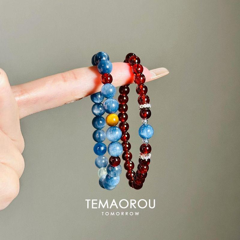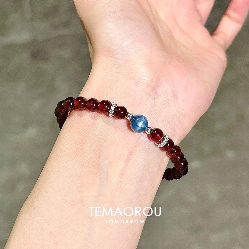 Pulsera de granate cianita chino "Xinghai Chimi Dream", nueva, retro, de alta calidad, blanca, elegante, con superposiciones.