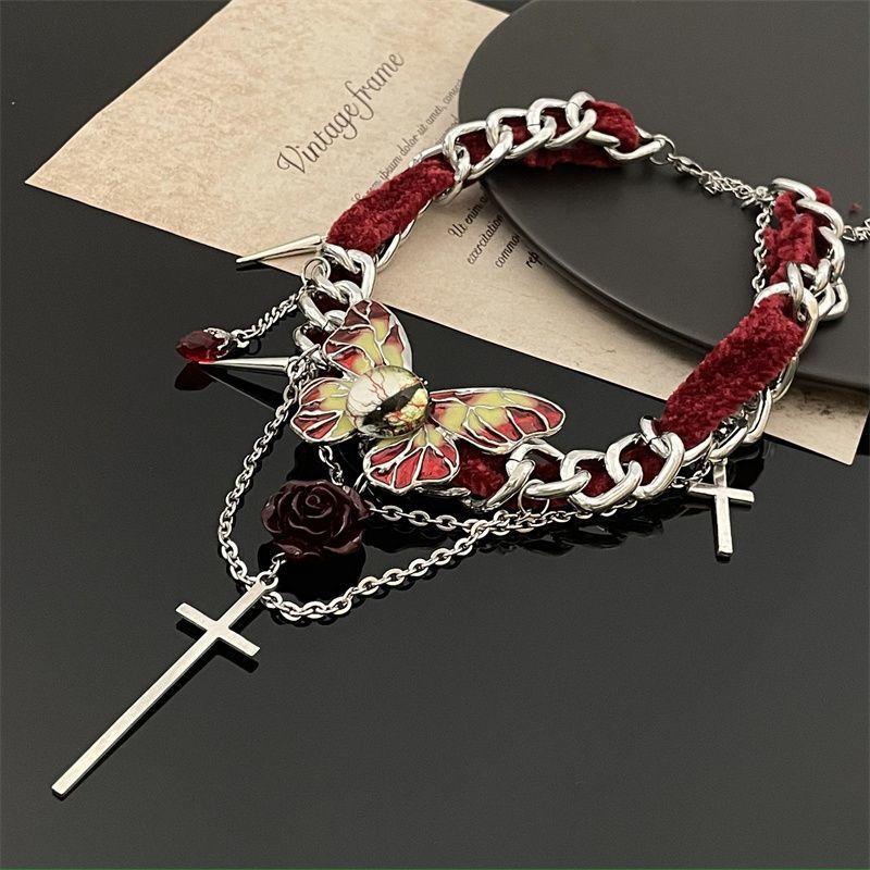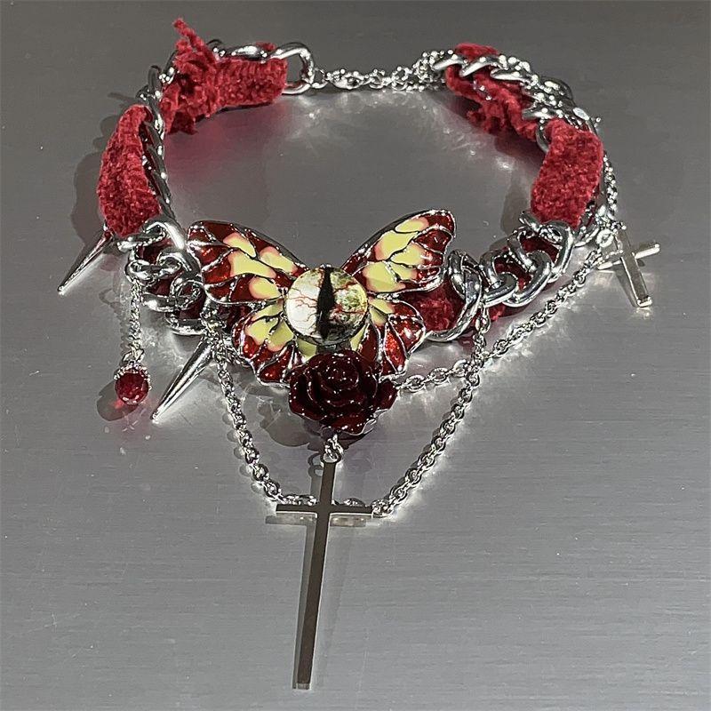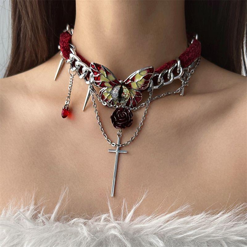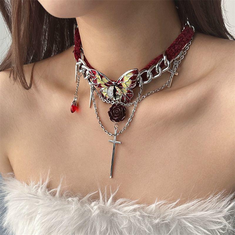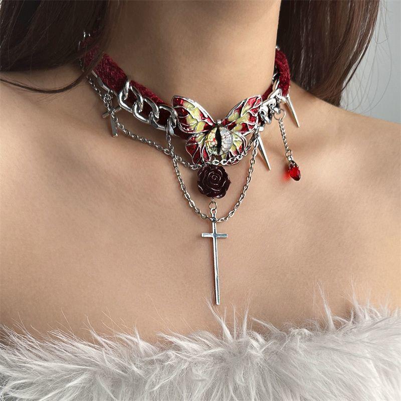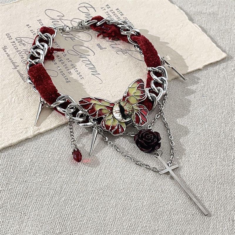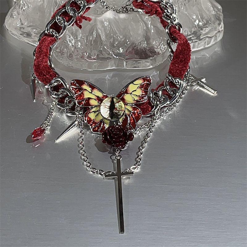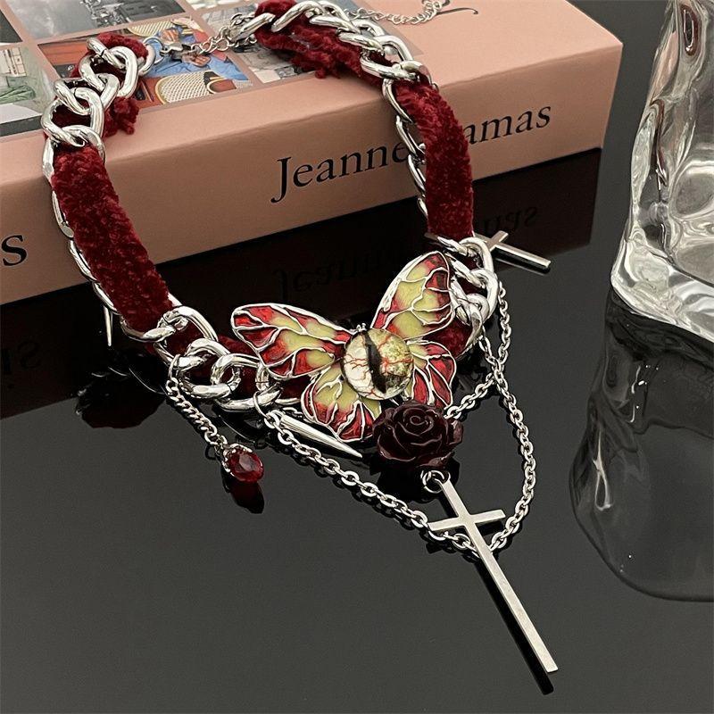 Collar de mariposa de terciopelo rojo estilo gótico para mujer, gargantilla de otoño e invierno, diseño de nicho, cadena de clavícula