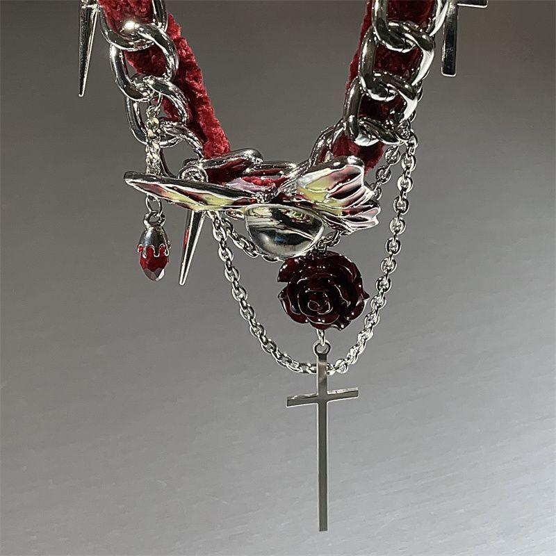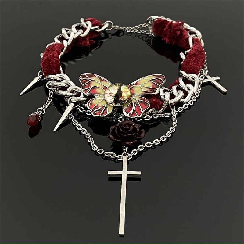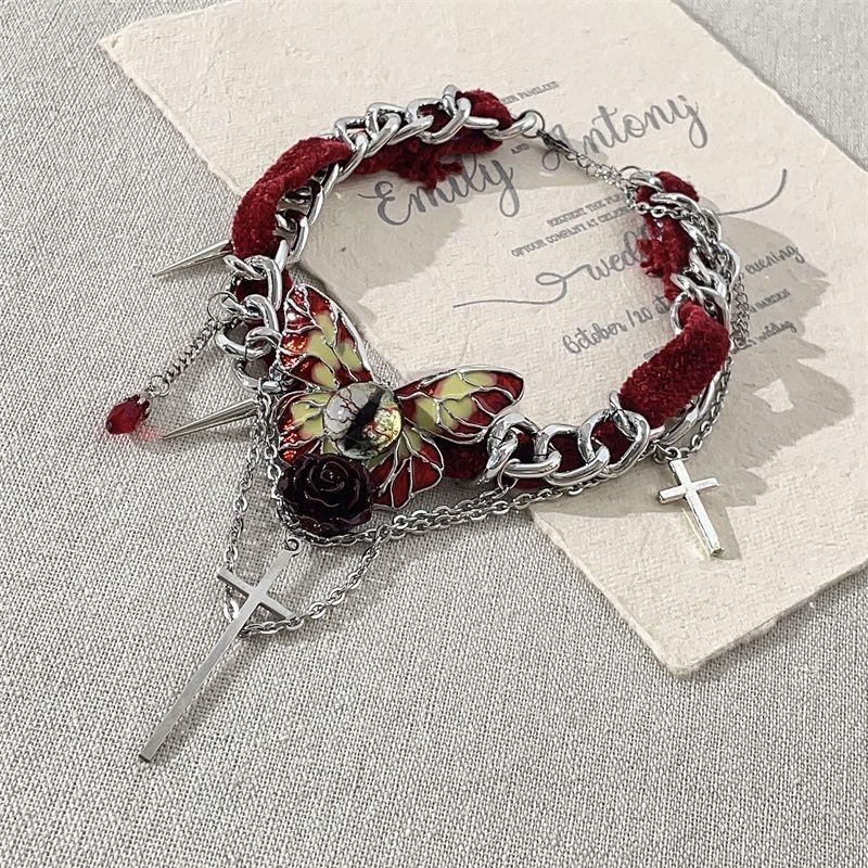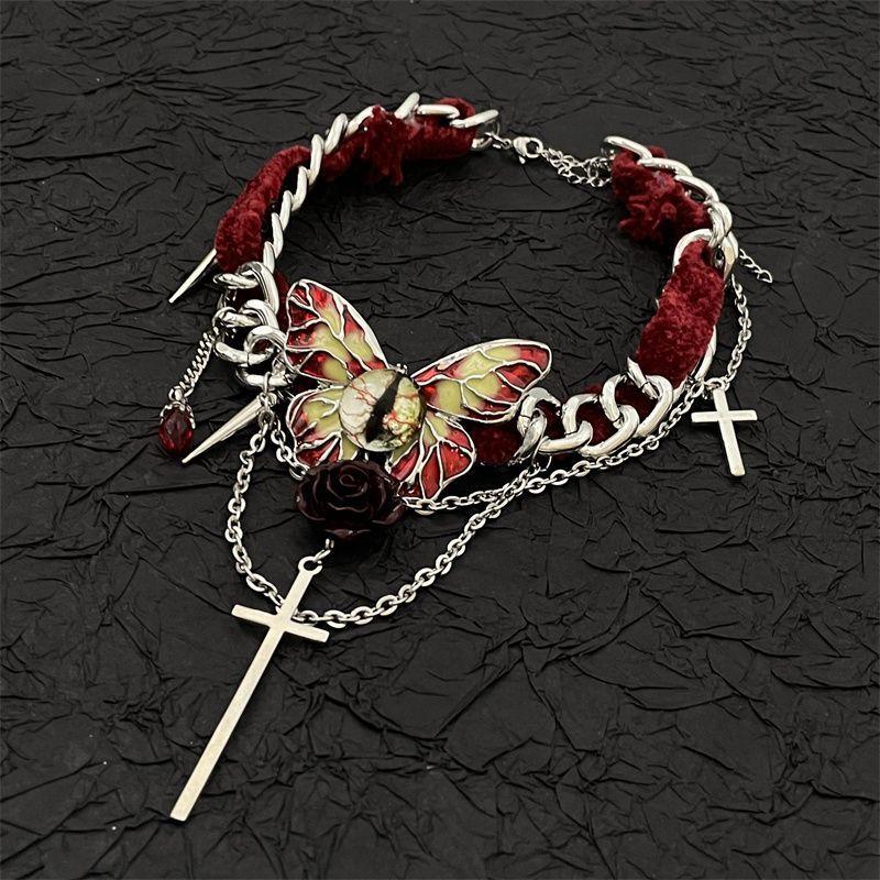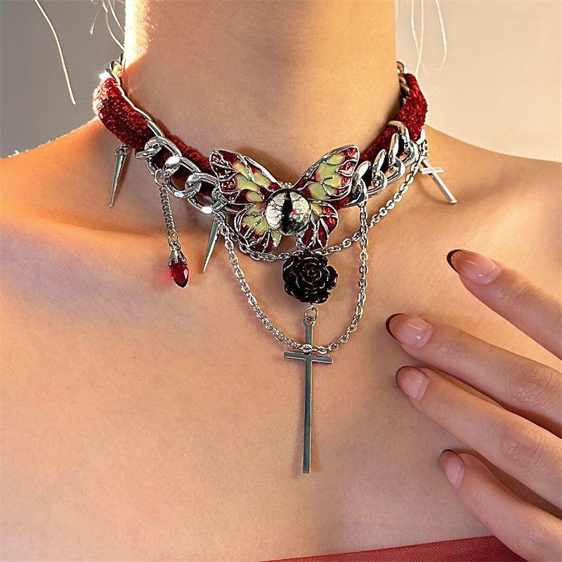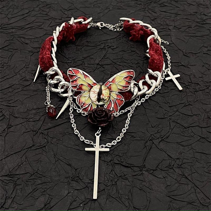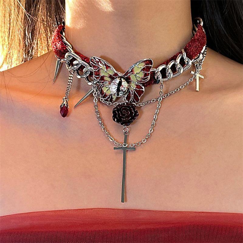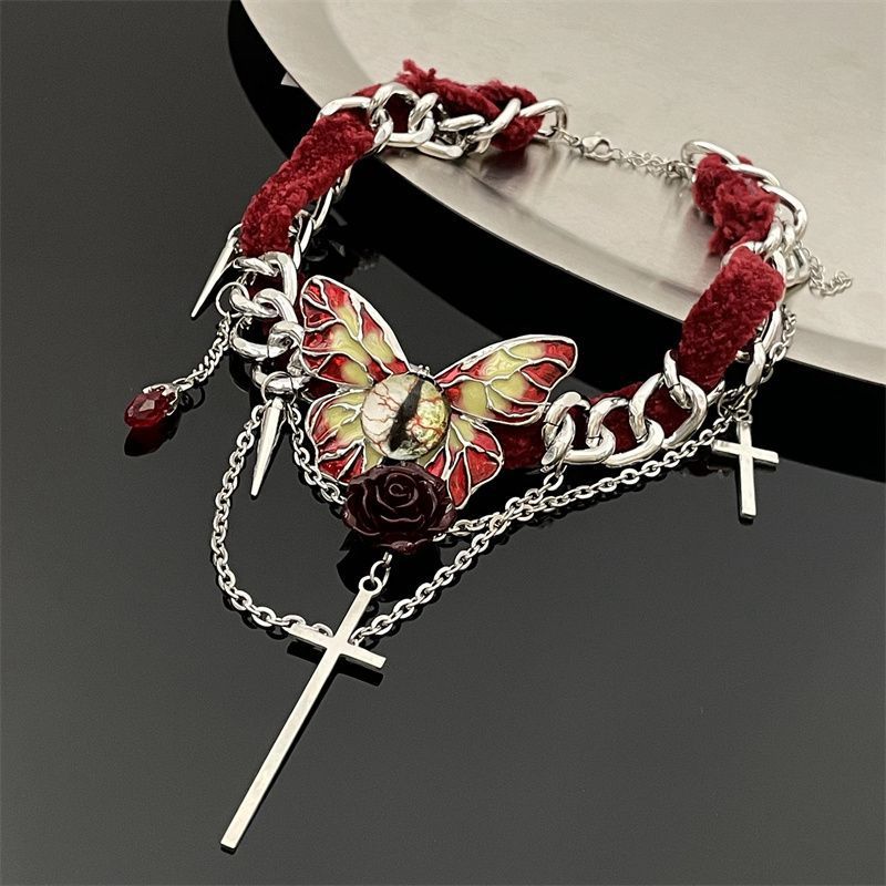 Collar de mariposa de terciopelo rojo estilo gótico para mujer, gargantilla de otoño e invierno, diseño de nicho, cadena de clavícula