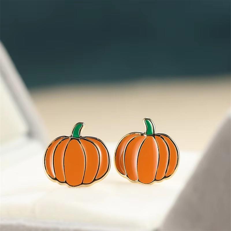 Transfronterizo Caliente Nuevo Calabaza Naranja Halloween Aguja de Oreja Simple Nicho Halloween Aretes de Gota de Aceite Aretes Divertidos