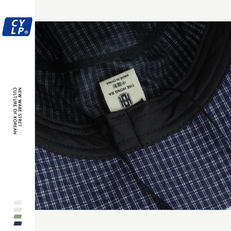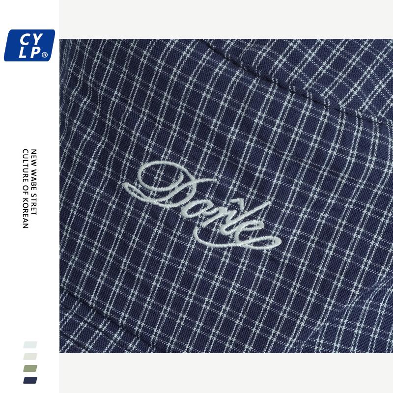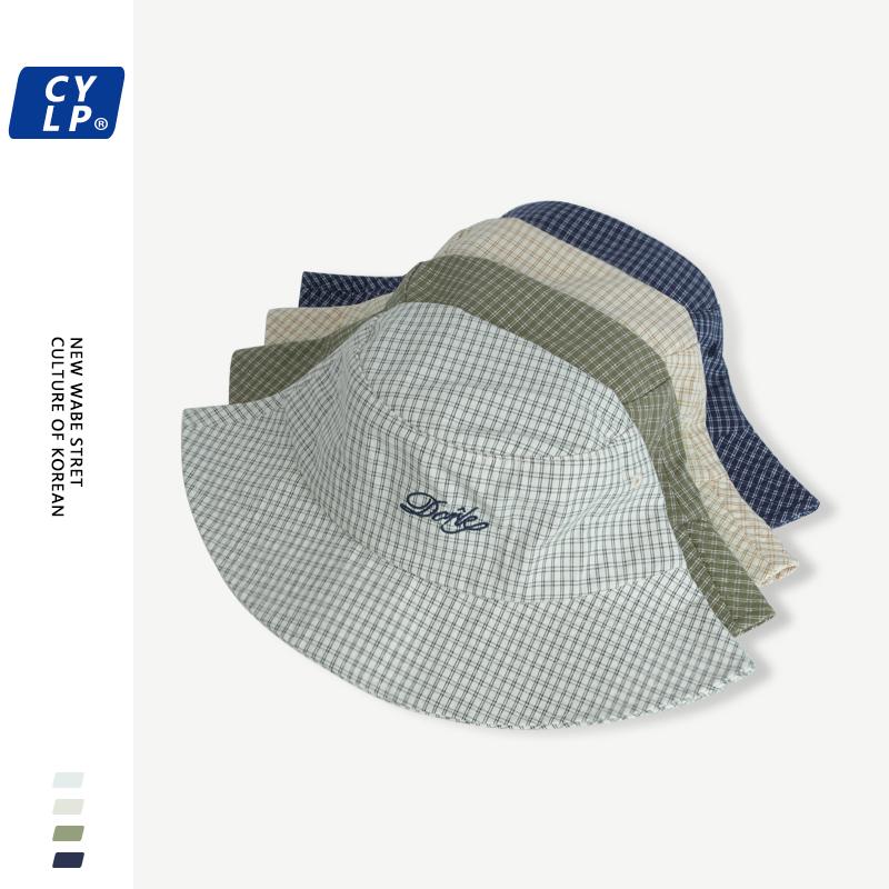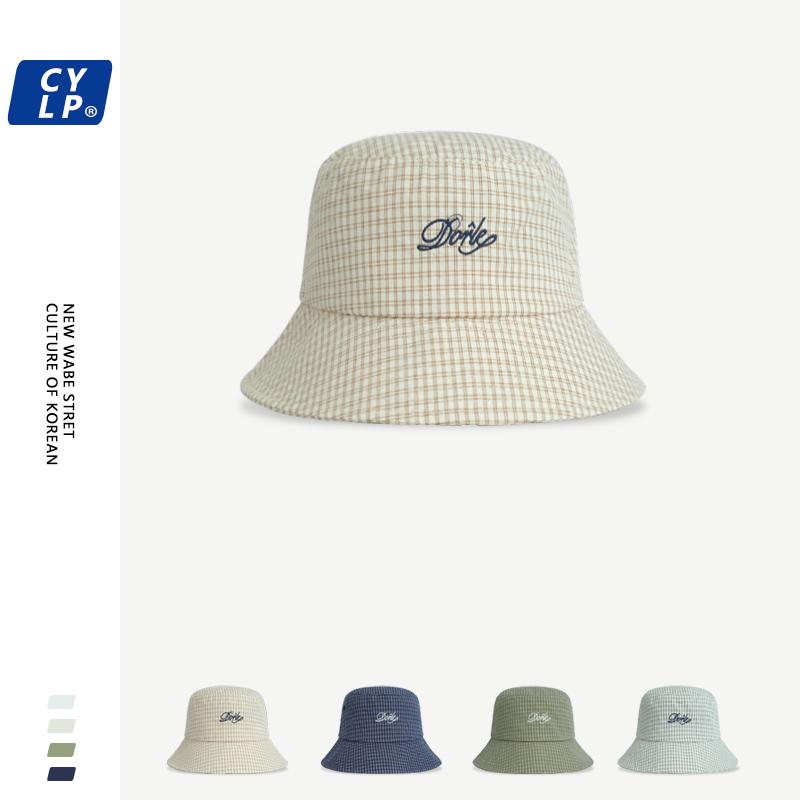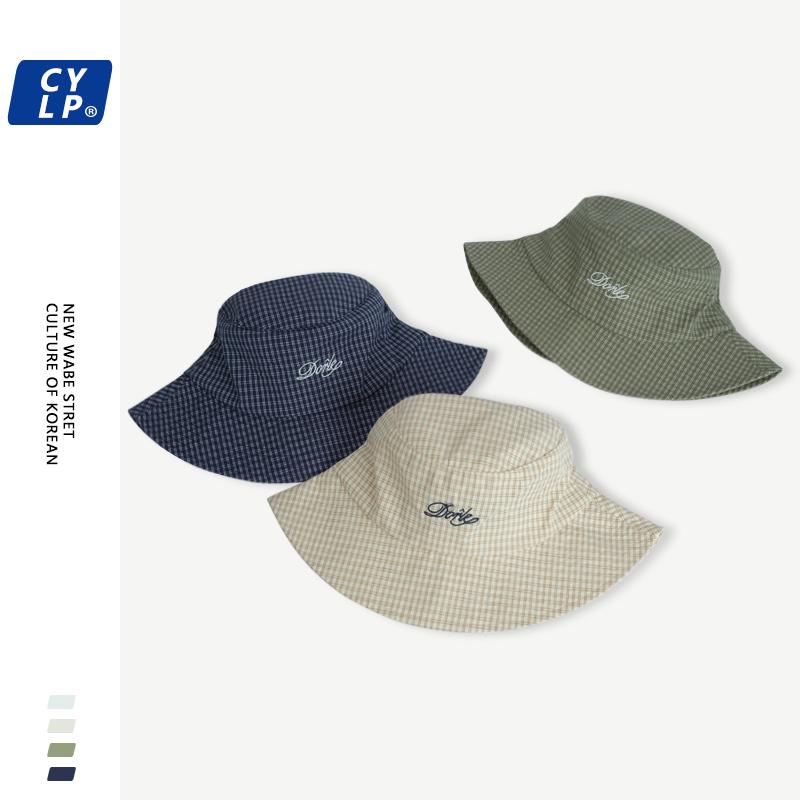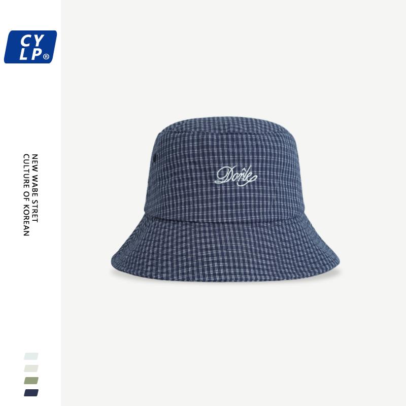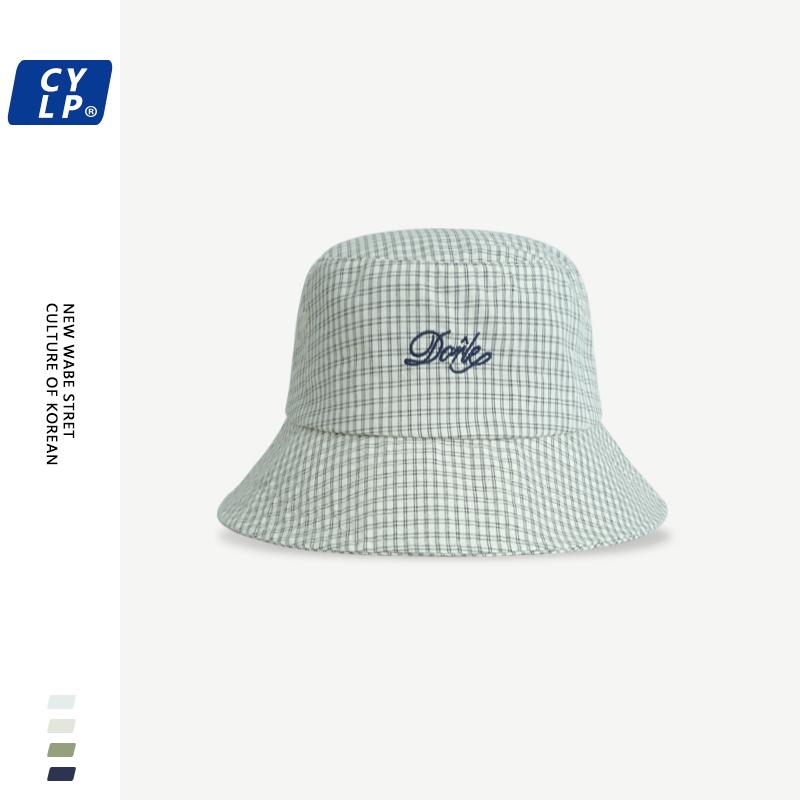 Sombrero de Pescador a Cuadros Bordado con Letras Estilo Coreano para Mujer Primavera y Verano Sombrero para el Sol Protector Solar Combinable Estilo Francés Sombrero de Cubeta Pequeño que Afina el Rostro para Hombre