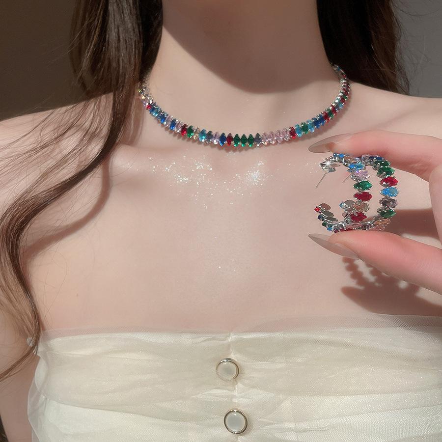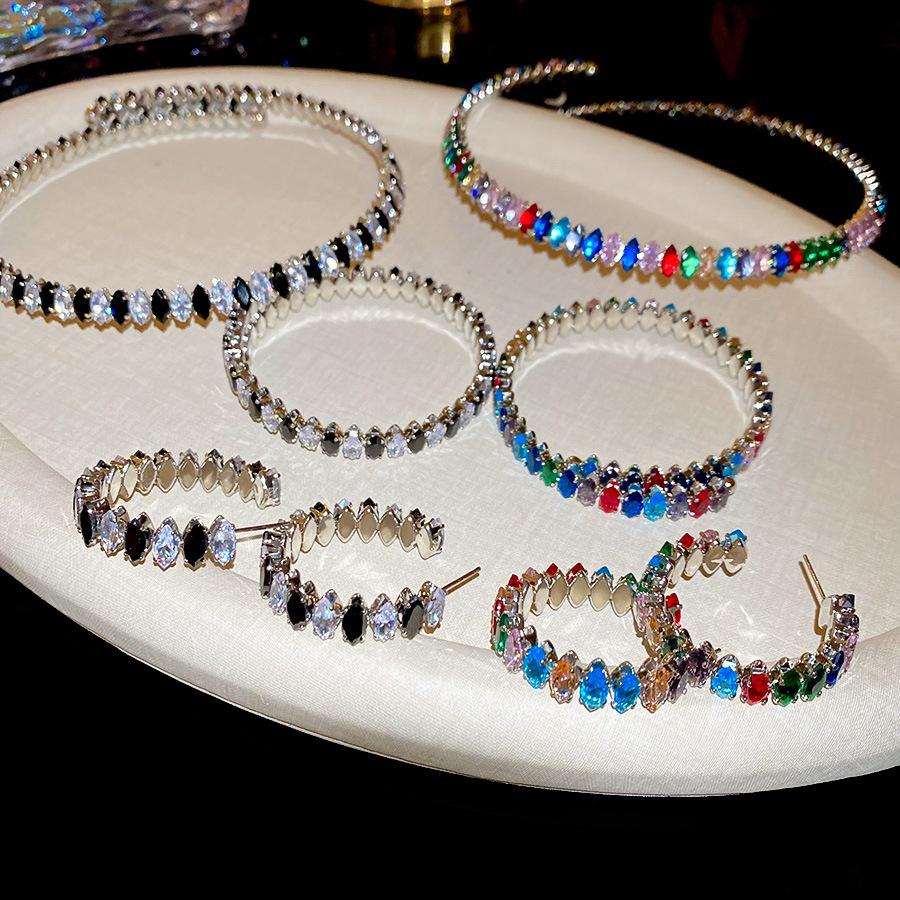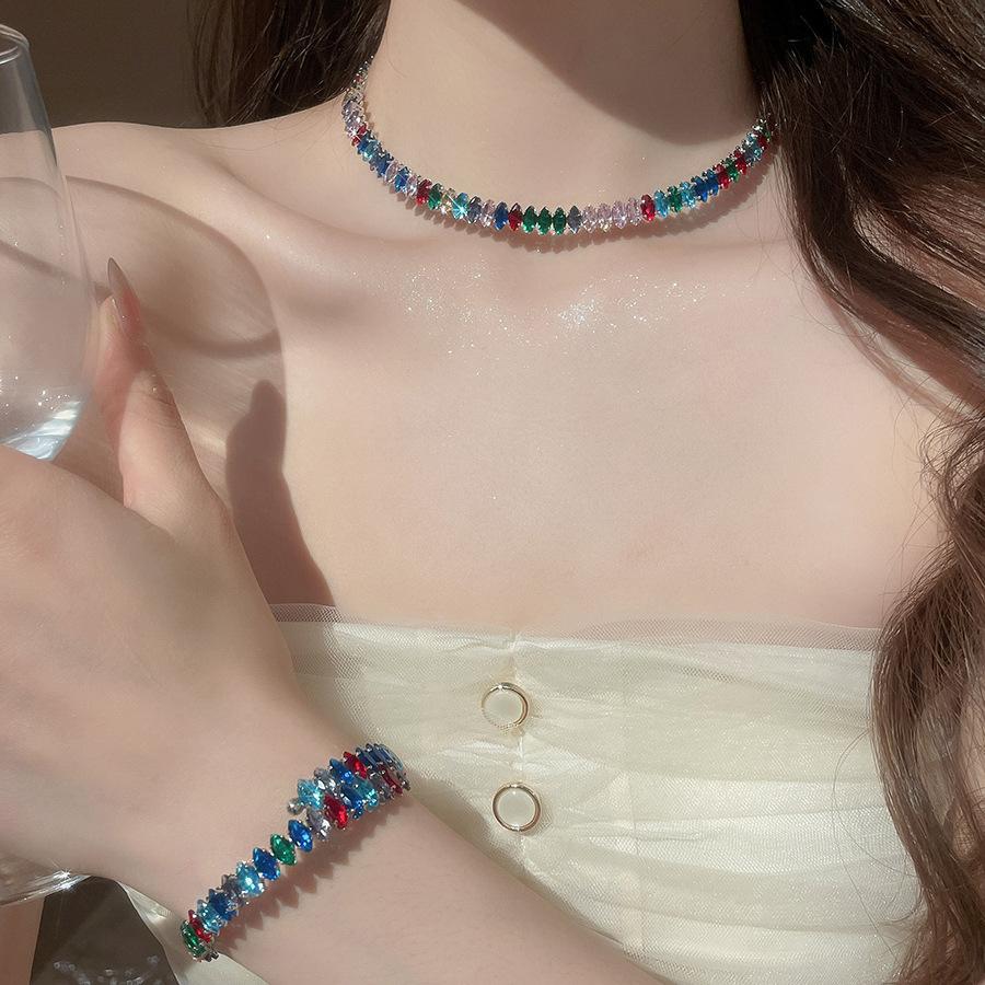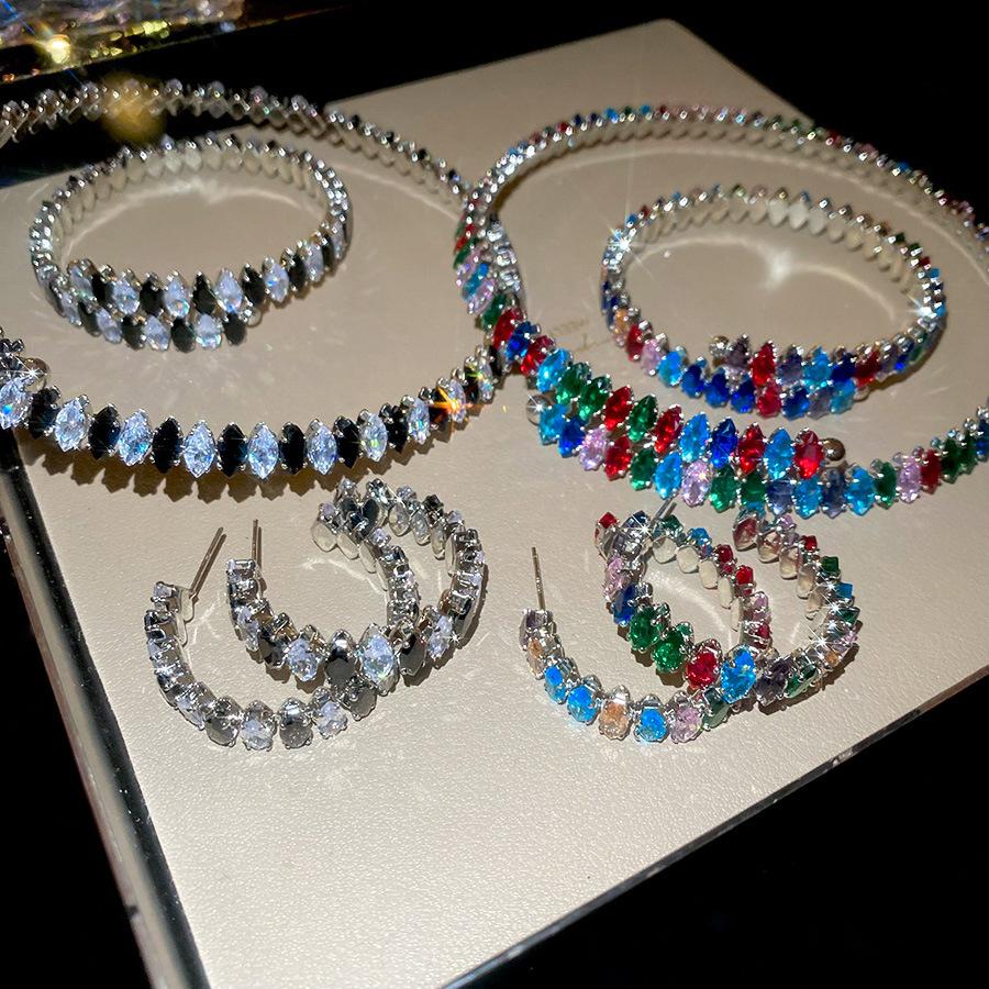 Juego de collar abierto en forma de gota de circonita, pulsera y aretes, nicho exquisito, versátil, collar de lujo ligero, joyería de alta gama