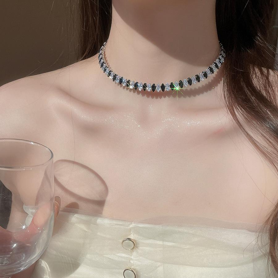 Necklace-silver-color, Necklace-silver-white-black, Silver needle-silver-white-black