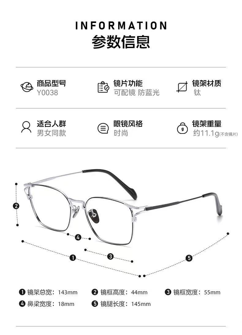 Gafas de miopía de diseño de 55 pulgadas, montura de gafas de moda con personalidad, montura de gafas unisex bicolor 0038