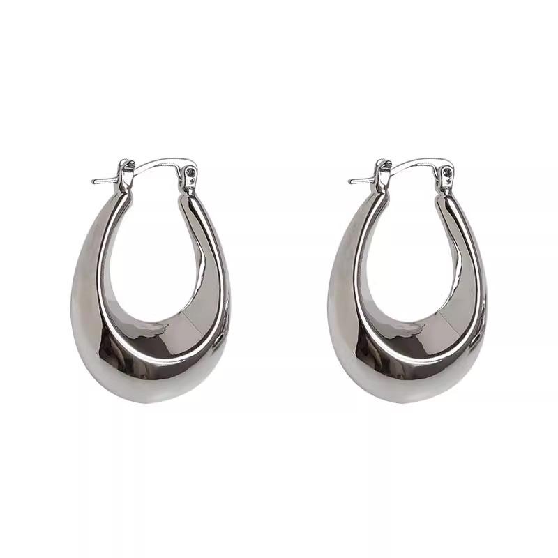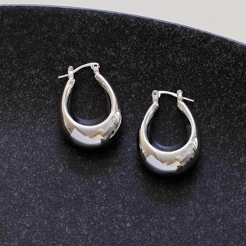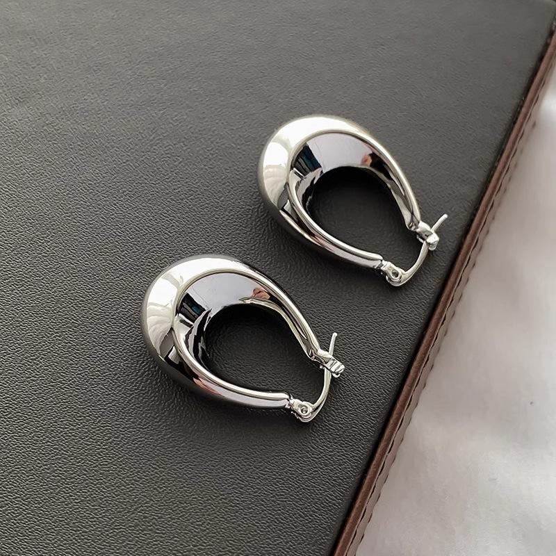 Aretes de Diseño Nicho Europeo y Americano con Sentido Avanzado Viento Frío Plata Aretes de Gota de Agua Estilo Ins Combinables Elegantes Hebillas para la Oreja