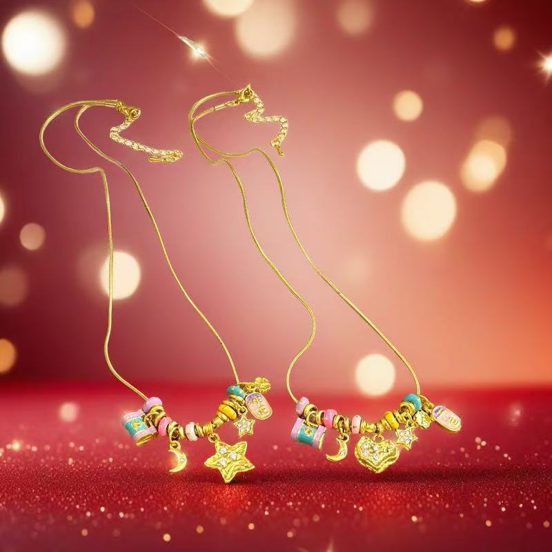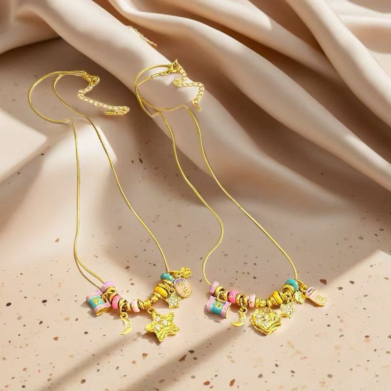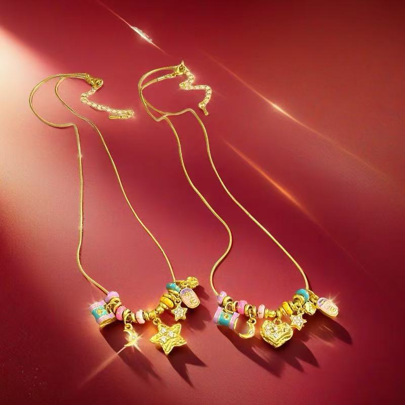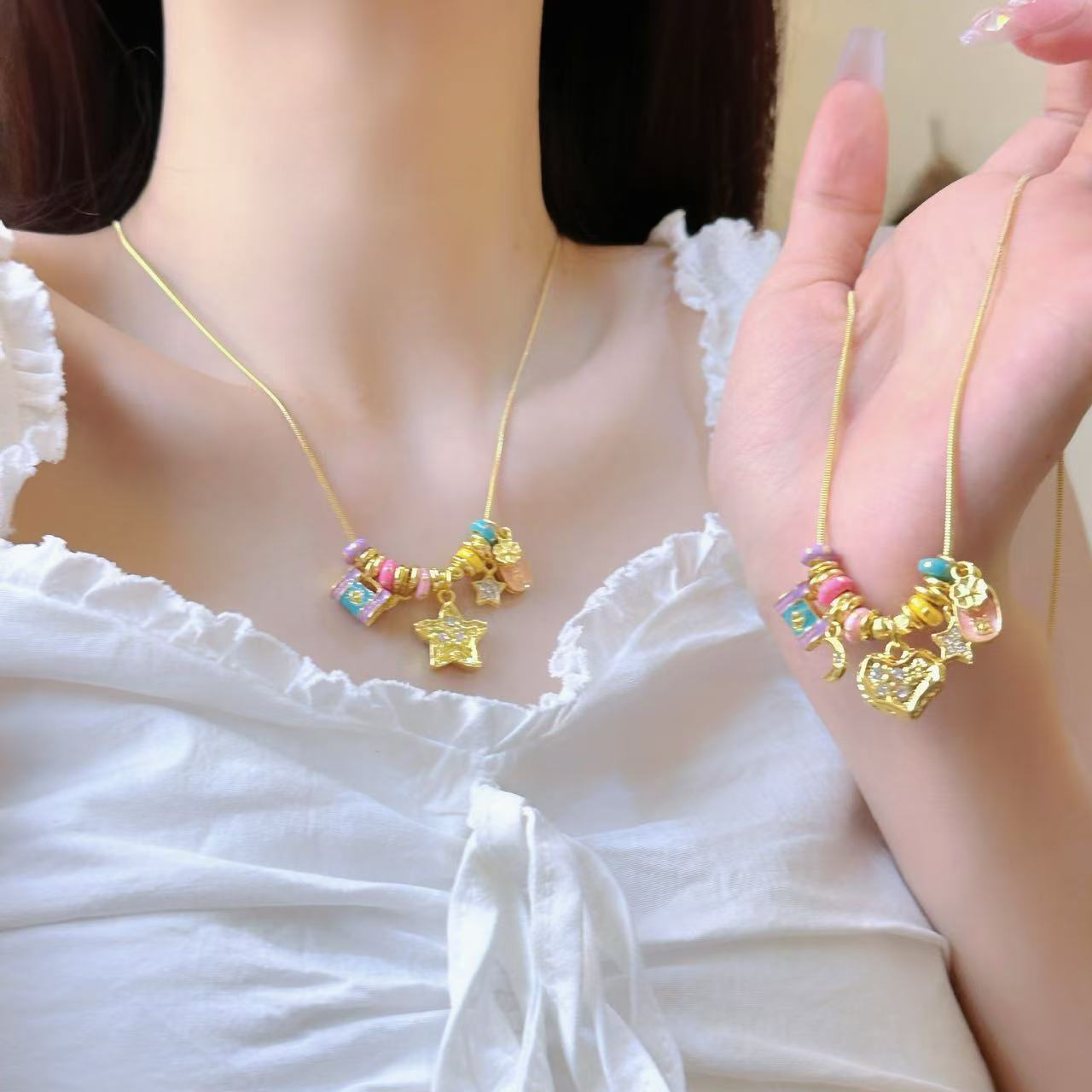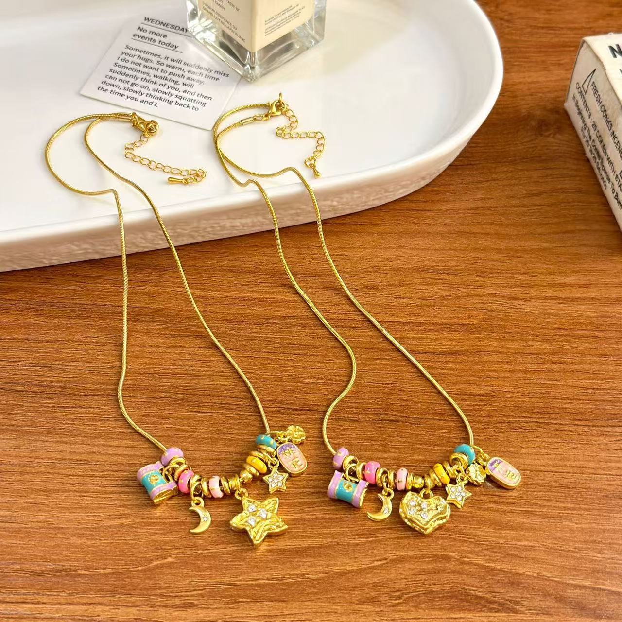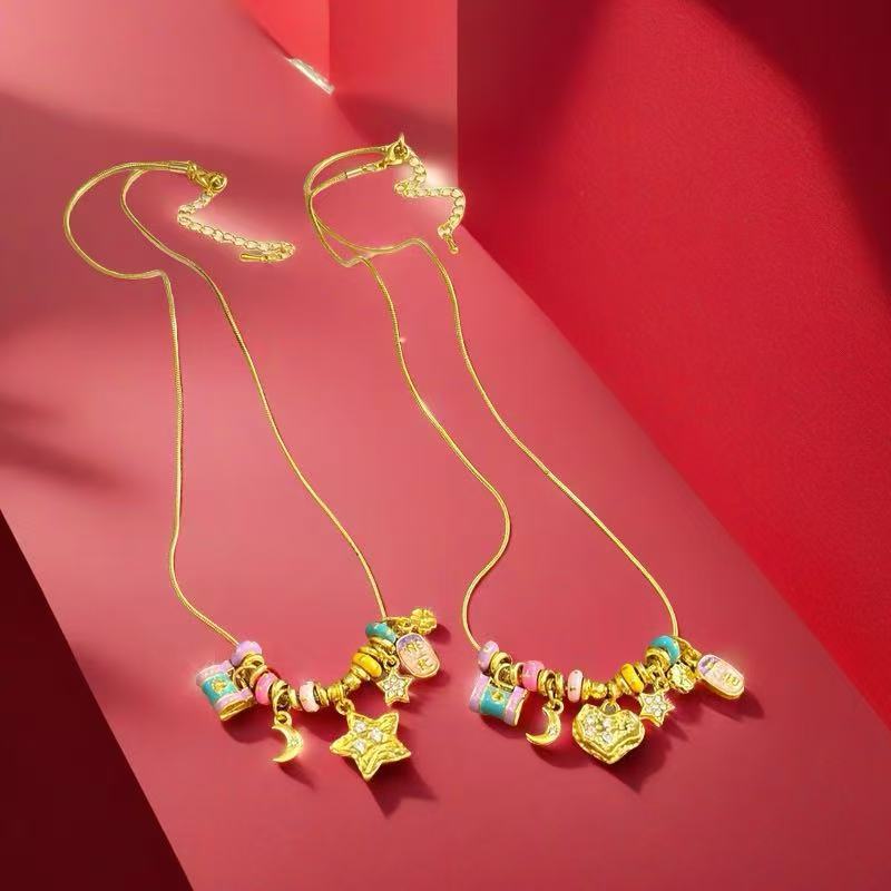 Nuevo collar chino de oro con esmalte de dopamina, estrella, luna, meteorito, estrella, para mujer, ligero, de lujo, a la moda, cadena de clavícula que combina con todo.