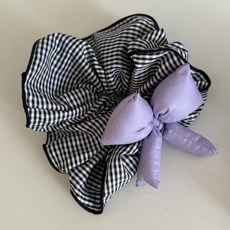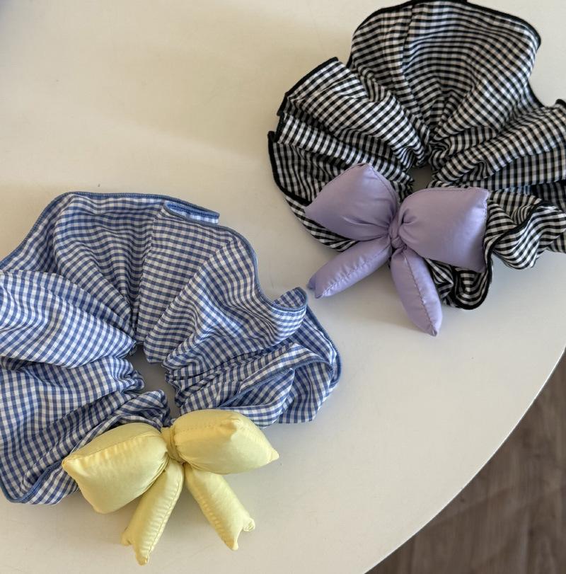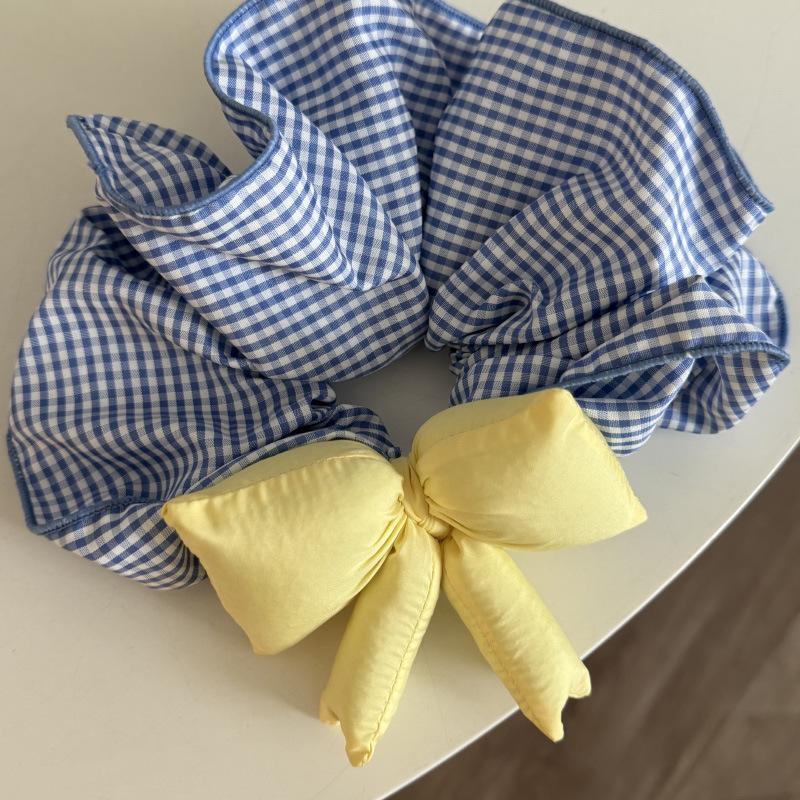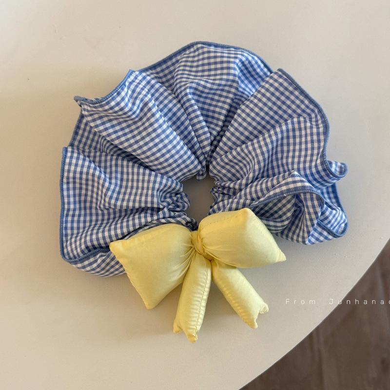 Coreano Artístico Azul a Cuadros Lazo Lazo Nudo Intestino Grueso Anillo para el Cabello Cuerda para el Cabello Shentong de Gama Alta para Mujer Cabeza de Bola Cuerda para el Cabello Grande