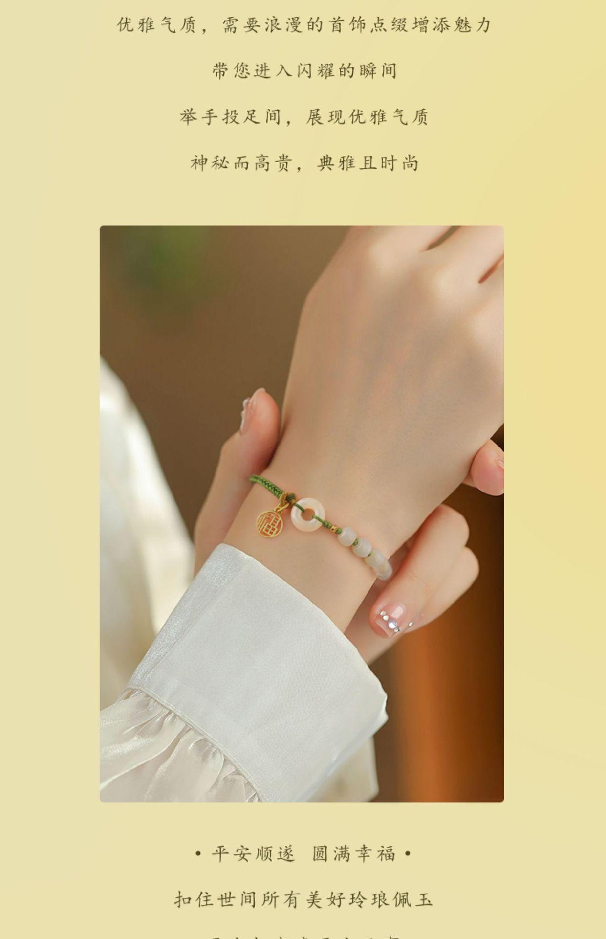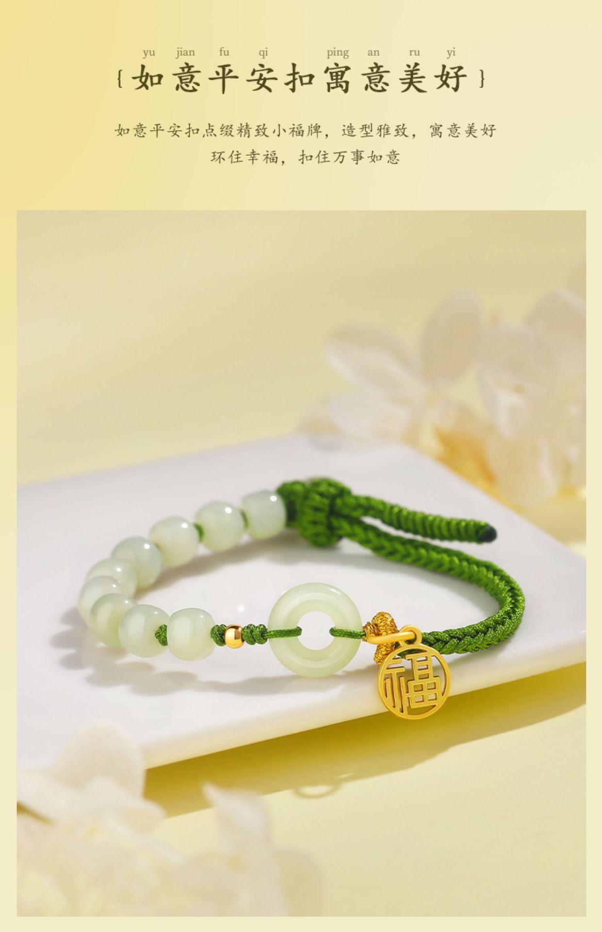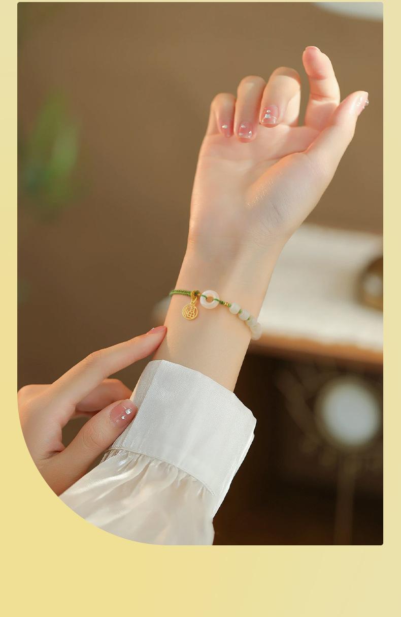 Pulsera Hotan Jade Hebilla de la Paz Buena Suerte Cuerda de Mano Colgante de la Fortuna para Mujer Hecha a Mano Ajustable Directo del Fabricante
