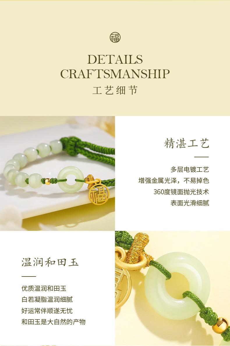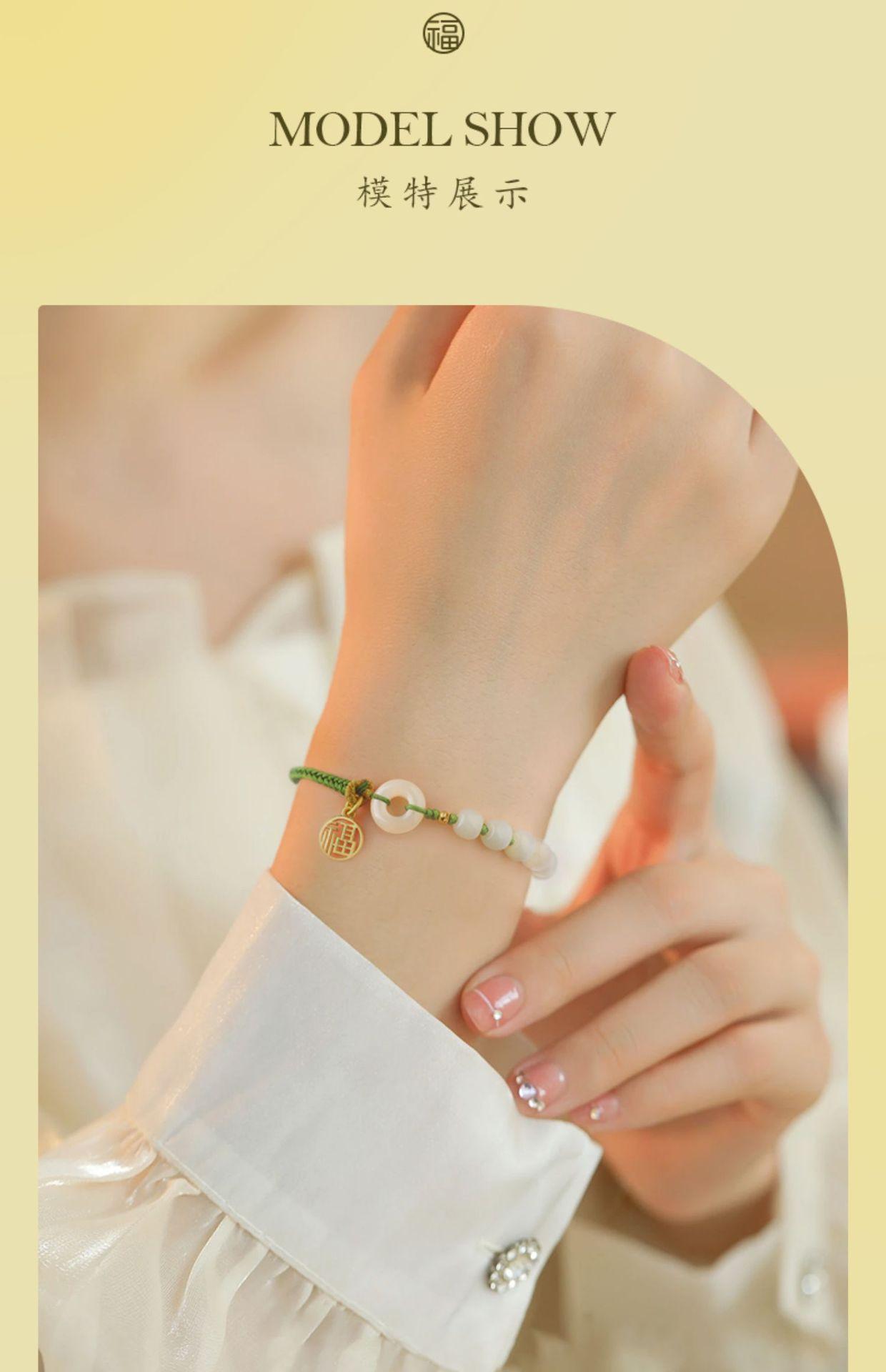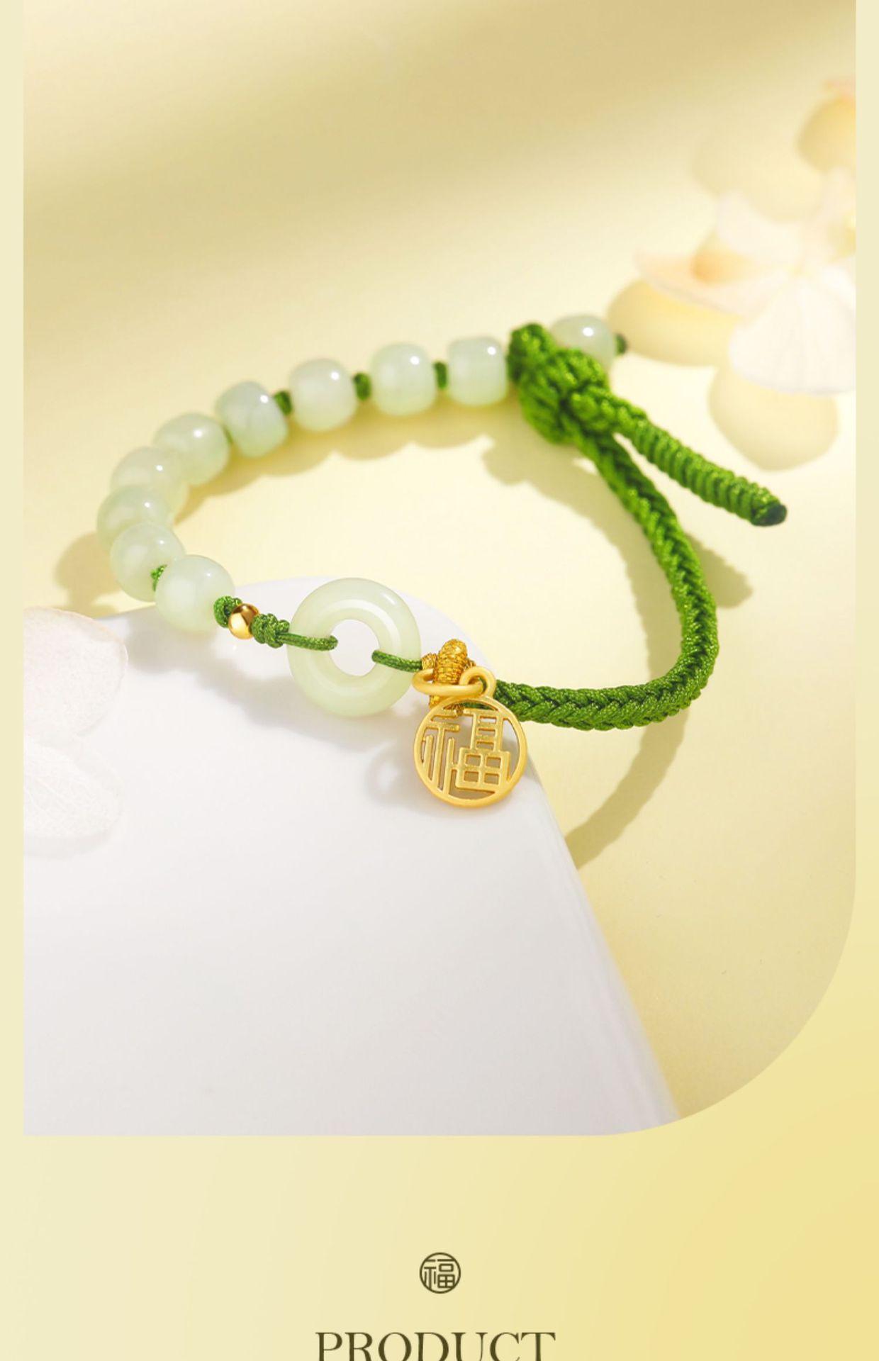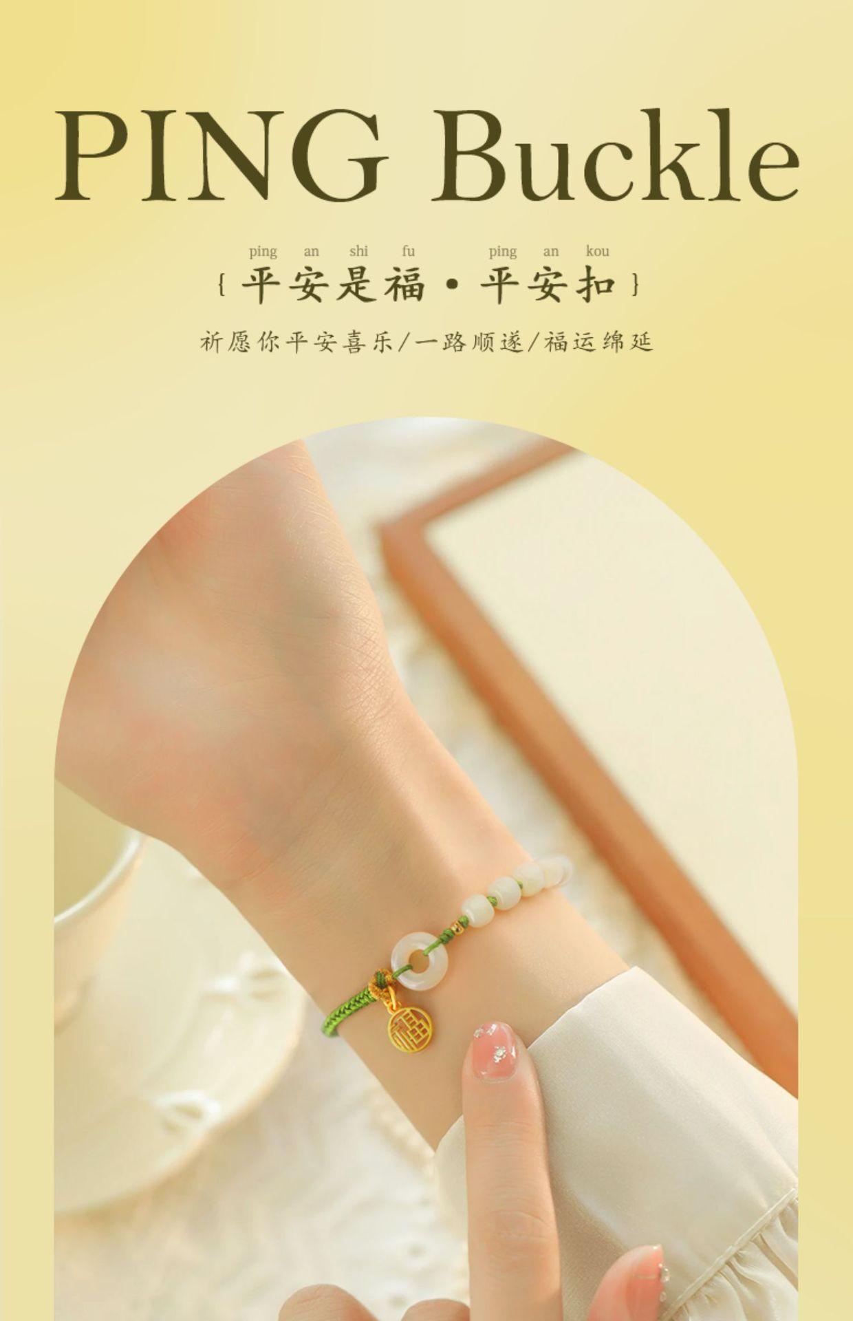 Pulsera Hotan Jade Hebilla de la Paz Buena Suerte Cuerda de Mano Colgante de la Fortuna para Mujer Hecha a Mano Ajustable Directo del Fabricante