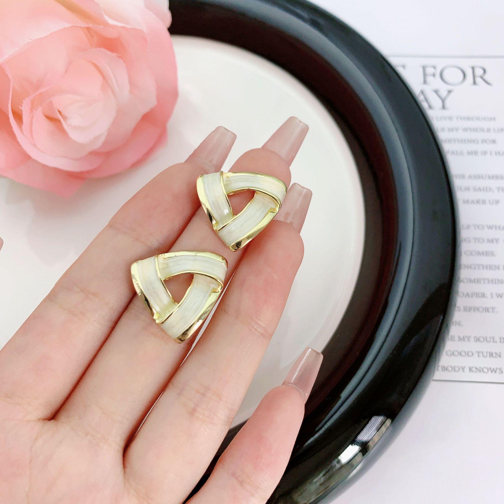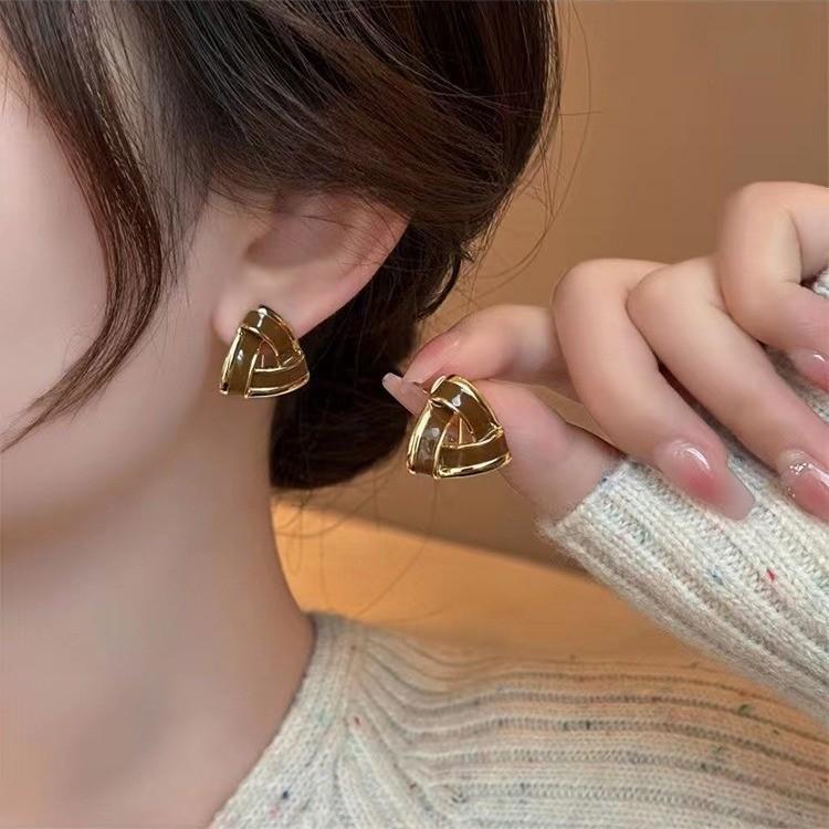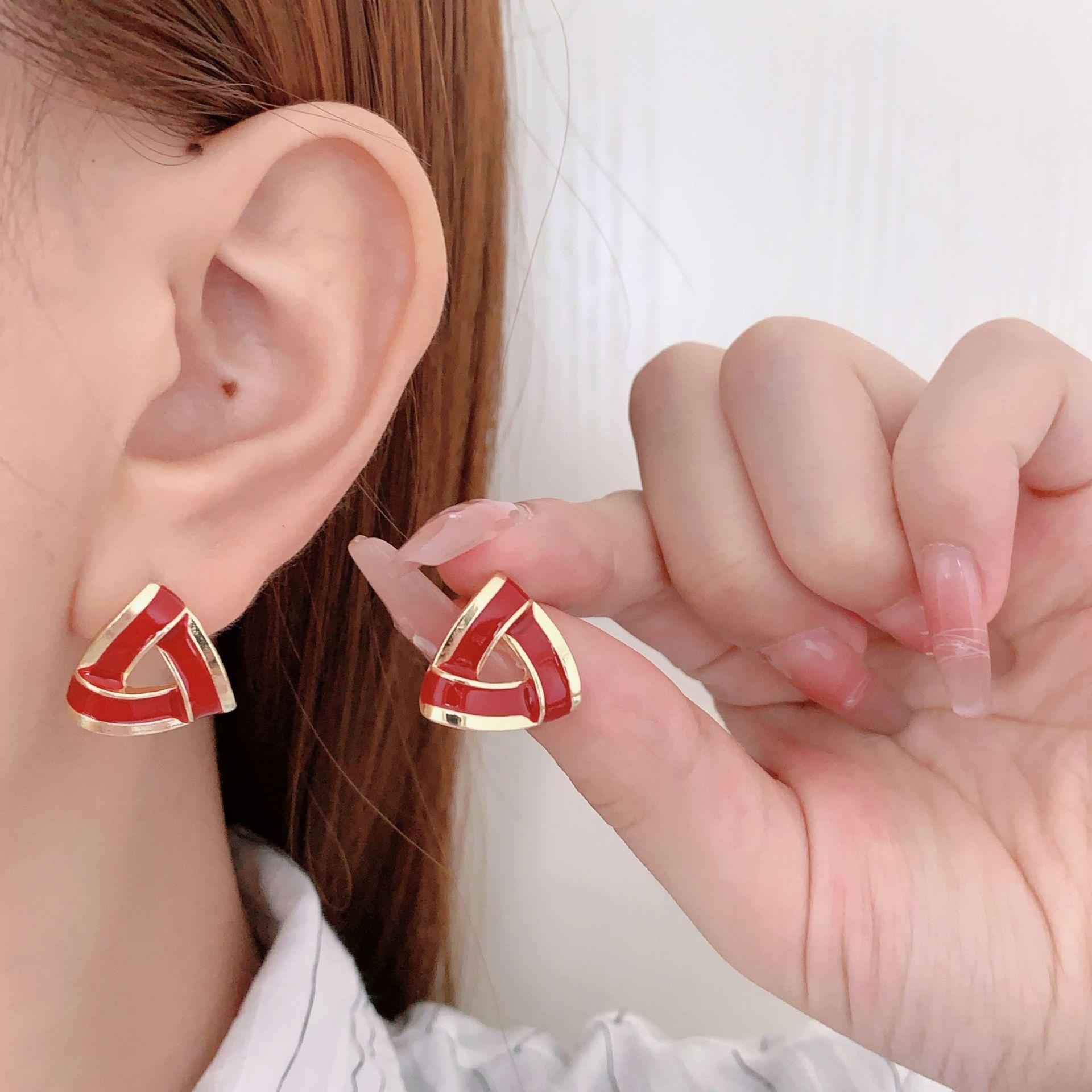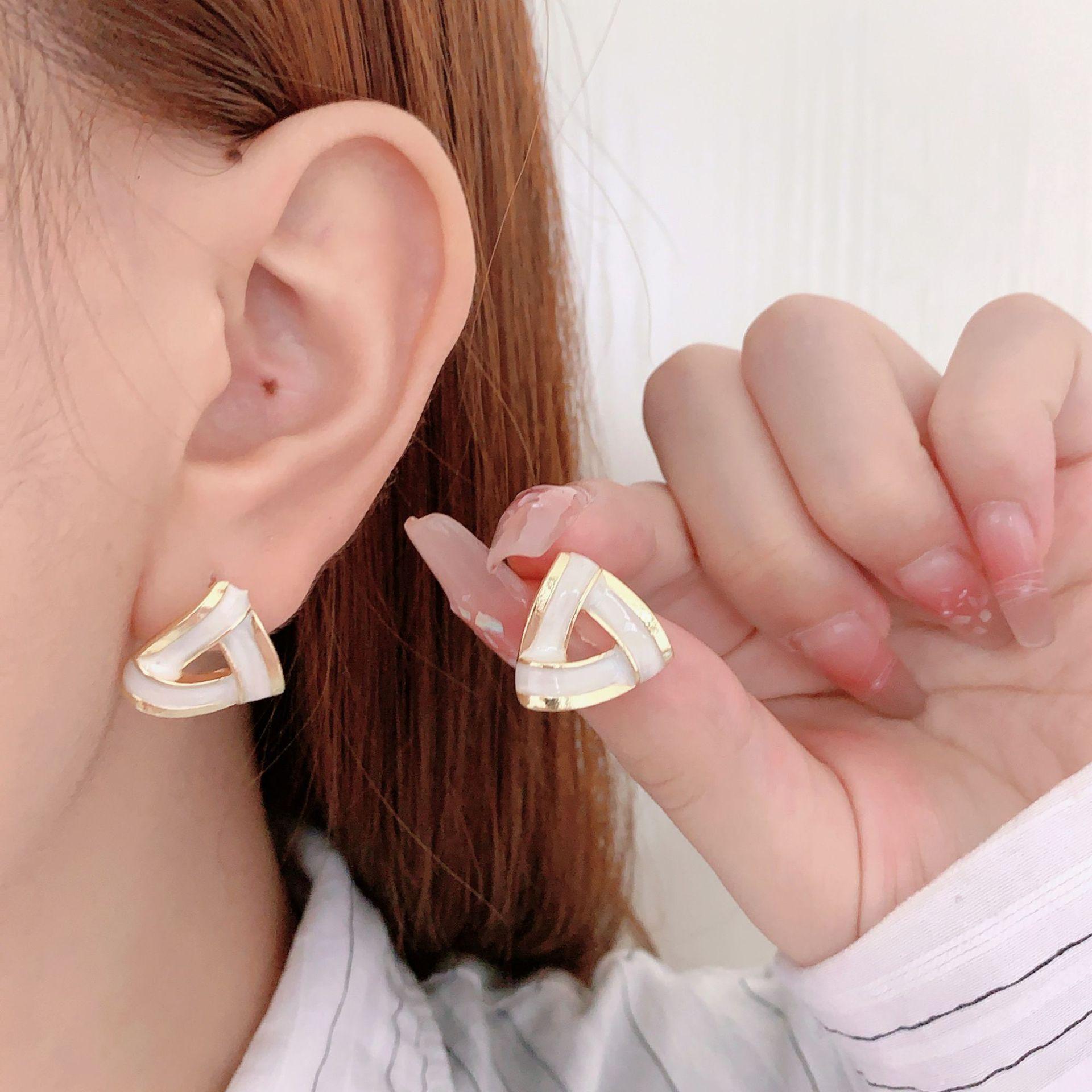 Aretes minimalistas geométricos de triángulo con gota de aceite estilo coreano, aretes de nicho a la moda, aretes populares de celebridad de internet